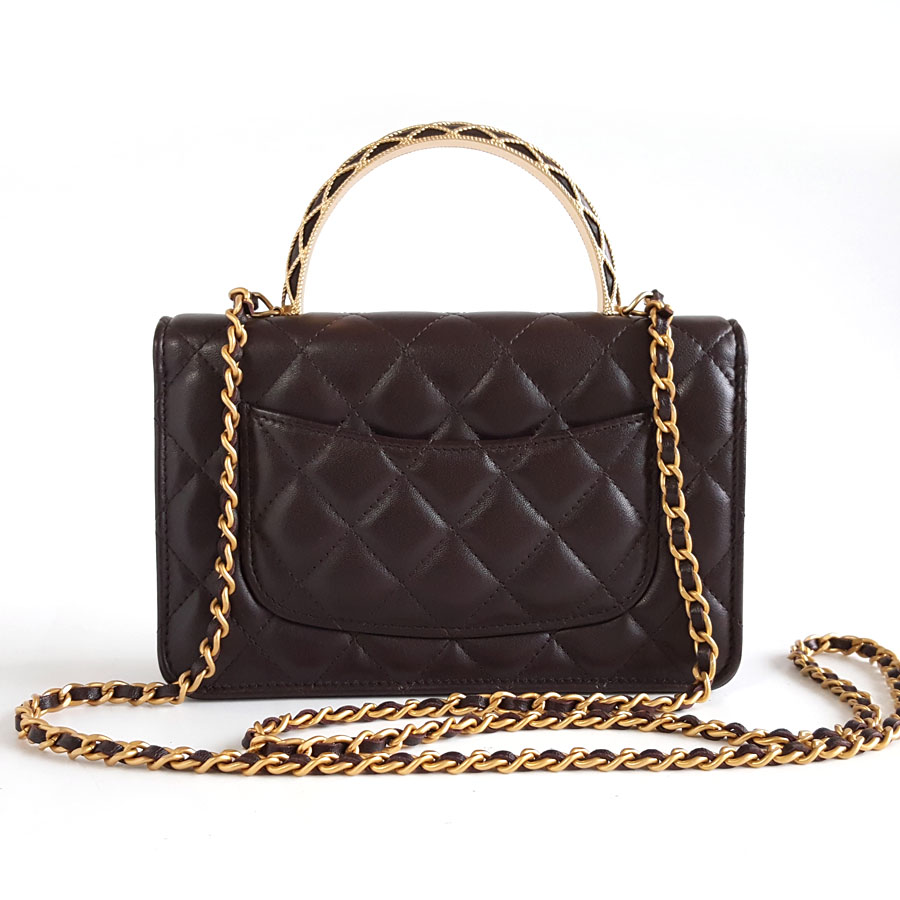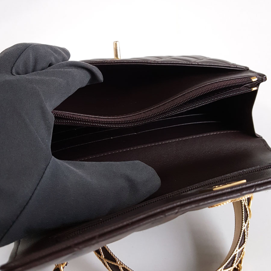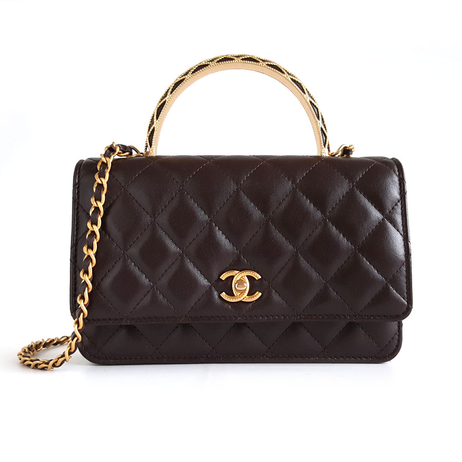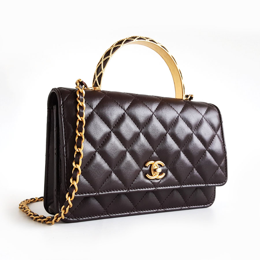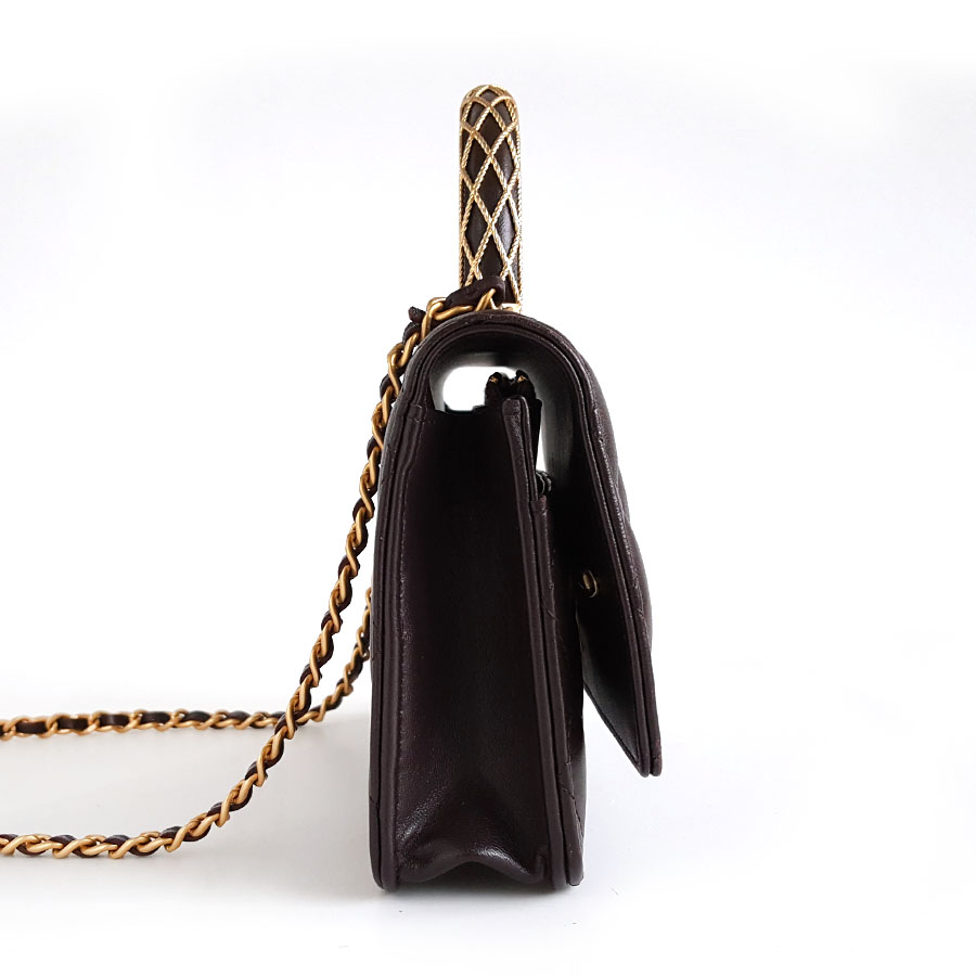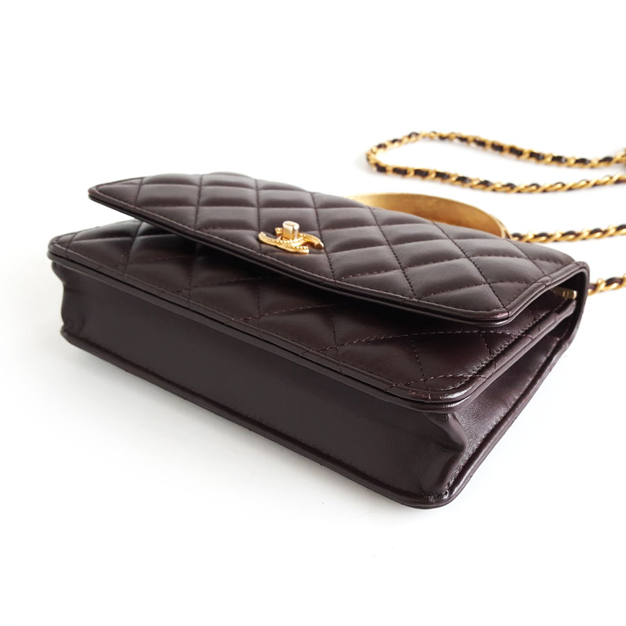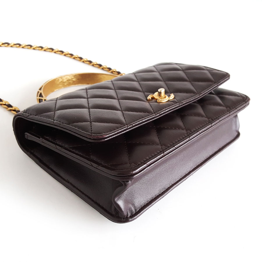【95新】CHANEL香奈儿AP3370 B12915 NO207 23A深紫色蕾丝浮雕手柄woc链条包单肩包女士040326NJ15