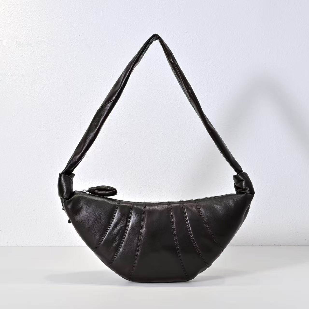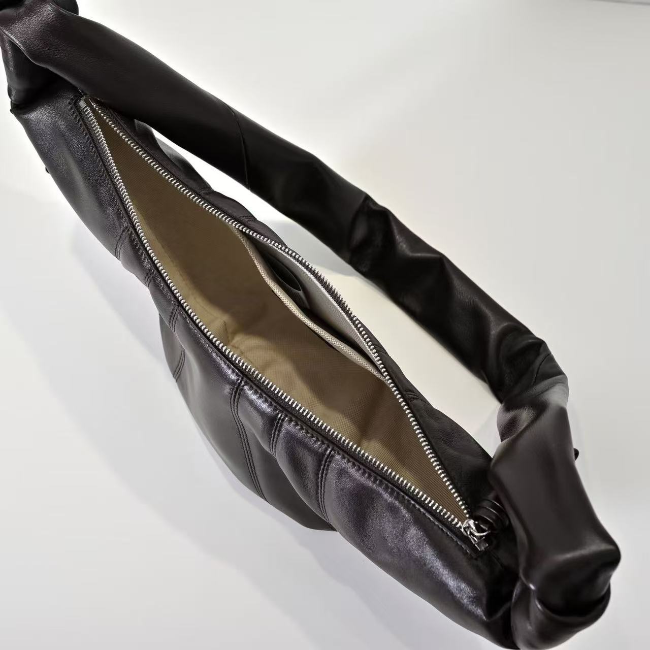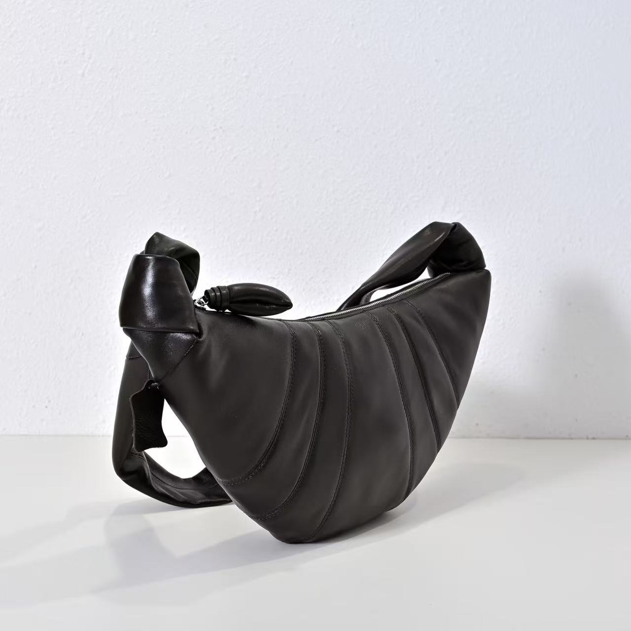 Croissant牛角包早已成为Lemaire最为经典的包款,酷似牛角包的外形也极具辨识度。优雅利落,清冷疏离的高级感!细腻的羊皮质感,软糯糯的好好rua,自重很轻适合通勤~亚麻织物的内里也很耐造不会担心被钥匙等物品刮花整体很好打理!