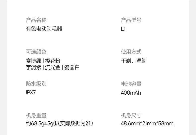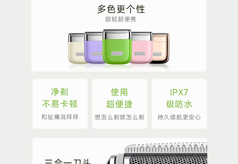 yoose有色NANO电动刮毛刀腋毛剃腿毛神器私密脱毛除手毛闺蜜礼物 拆封后不支持七天无理由
