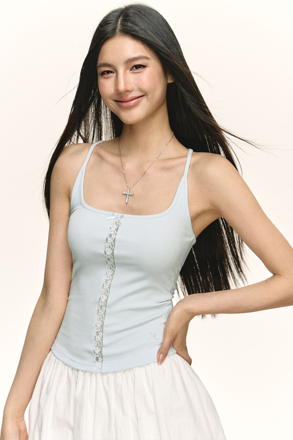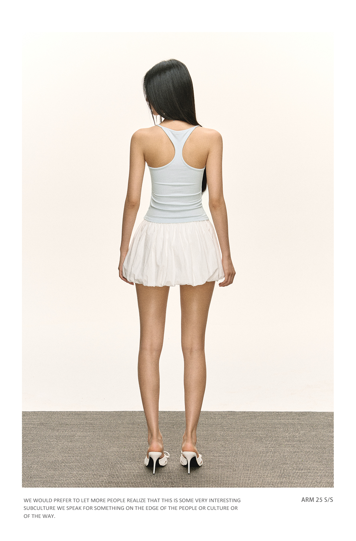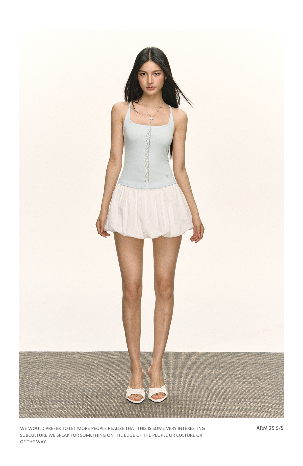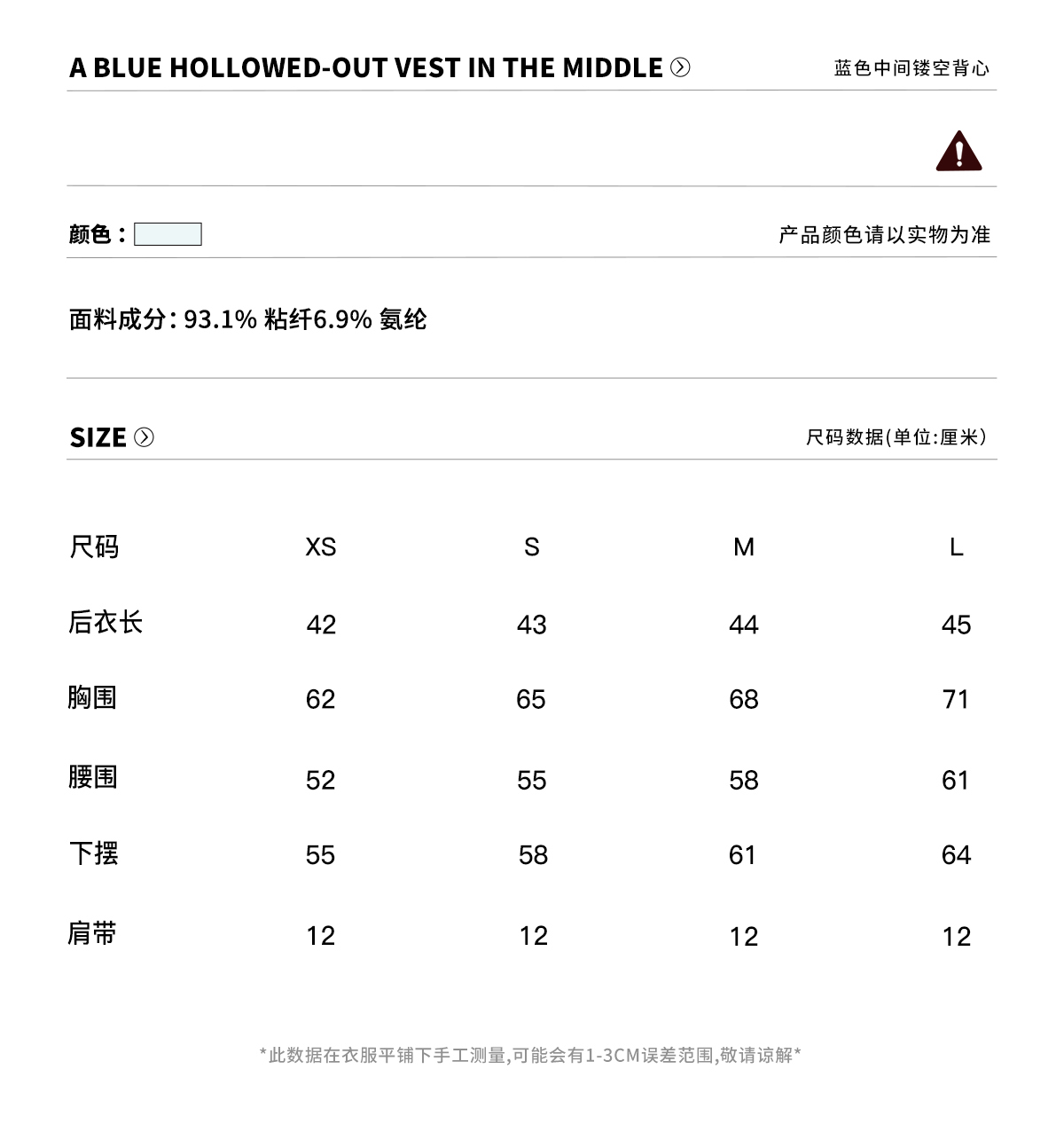 Ariseism 美式复古设计感浅蓝色中间镂空背心女夏季新款上衣