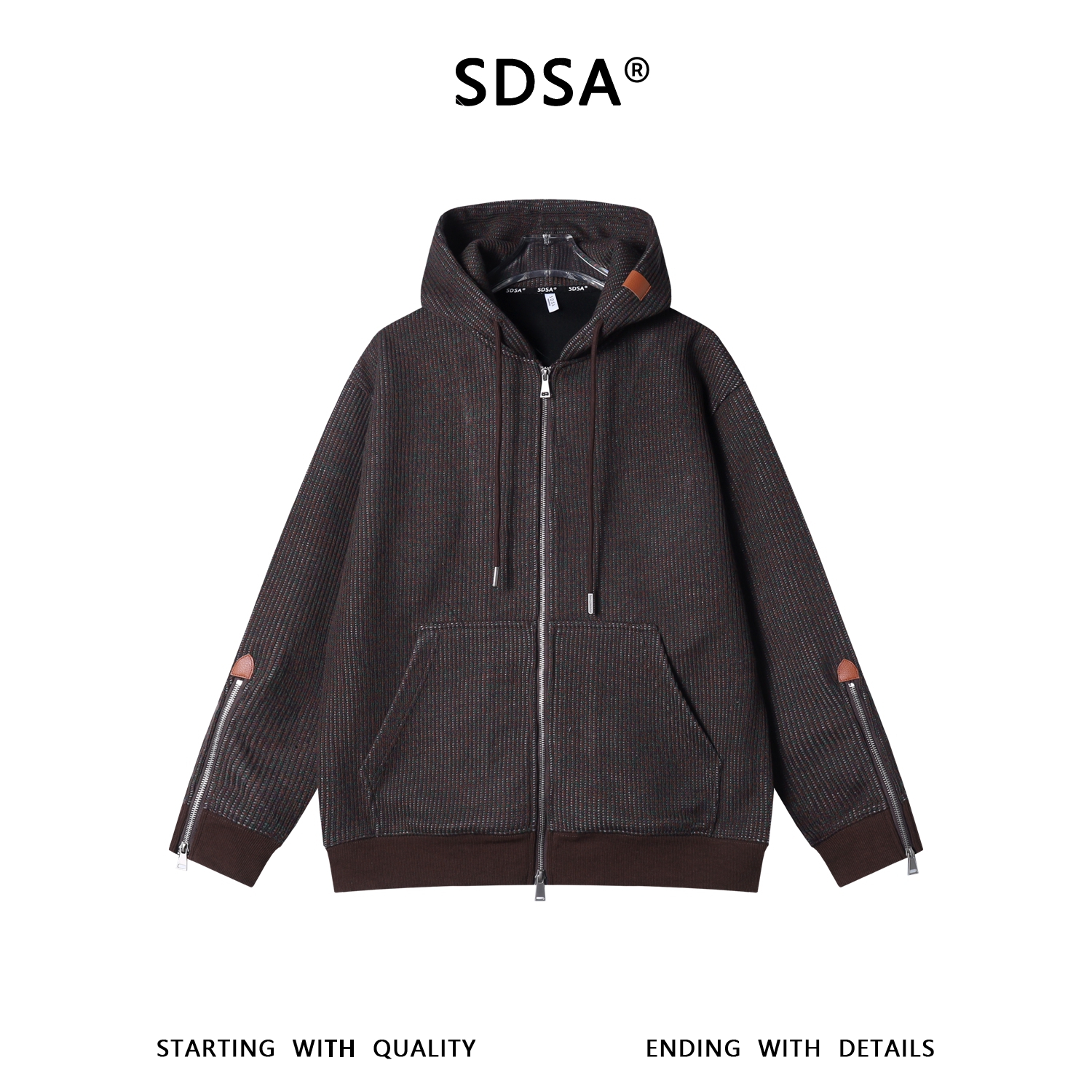 SDSA秋冬新款痞帅男装美式高街拉链设计开衫连帽针织卫衣百搭休闲