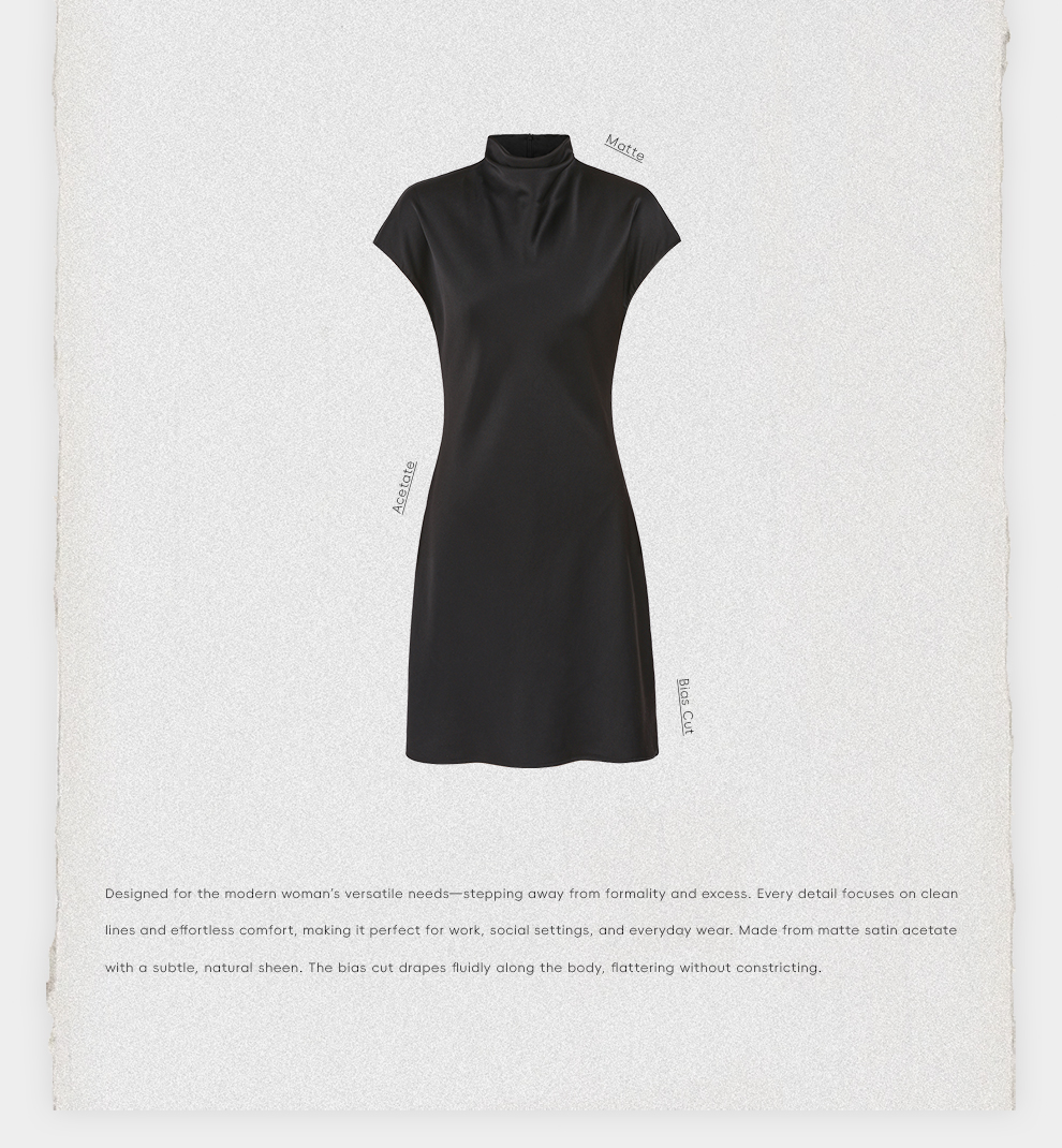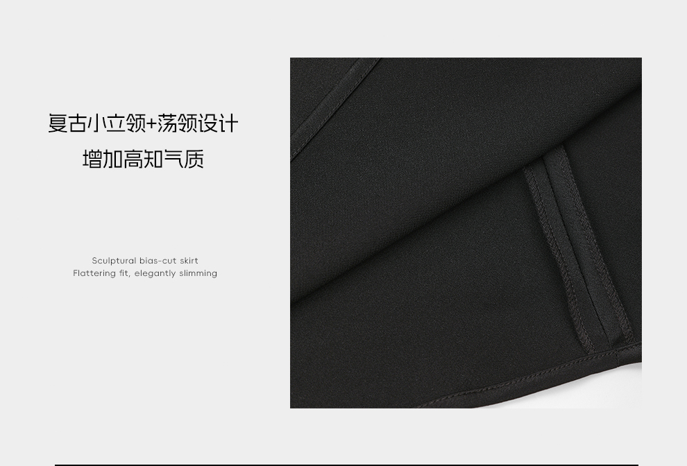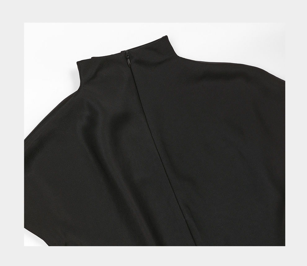 ROMI STUDIO“晚宴”缎面哑光醋酸极简小立领无袖连衣裙RWDSLY2395