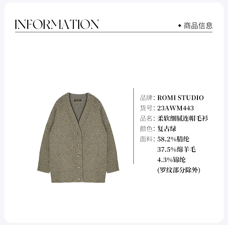 ROMI STUDIO“棕标系列” 羊毛混纺腔调穿搭绿针织开衫23AWM443