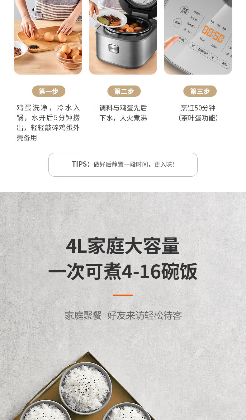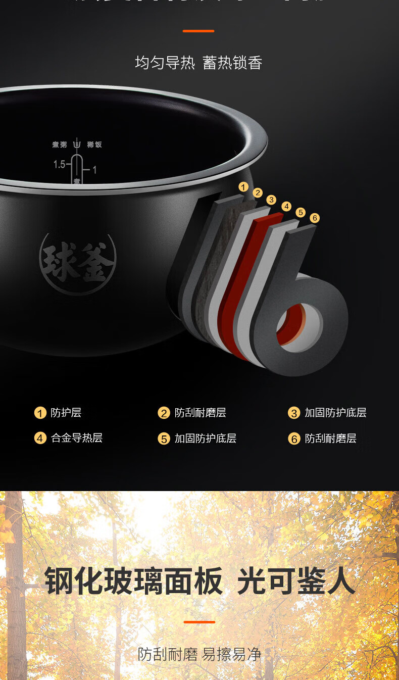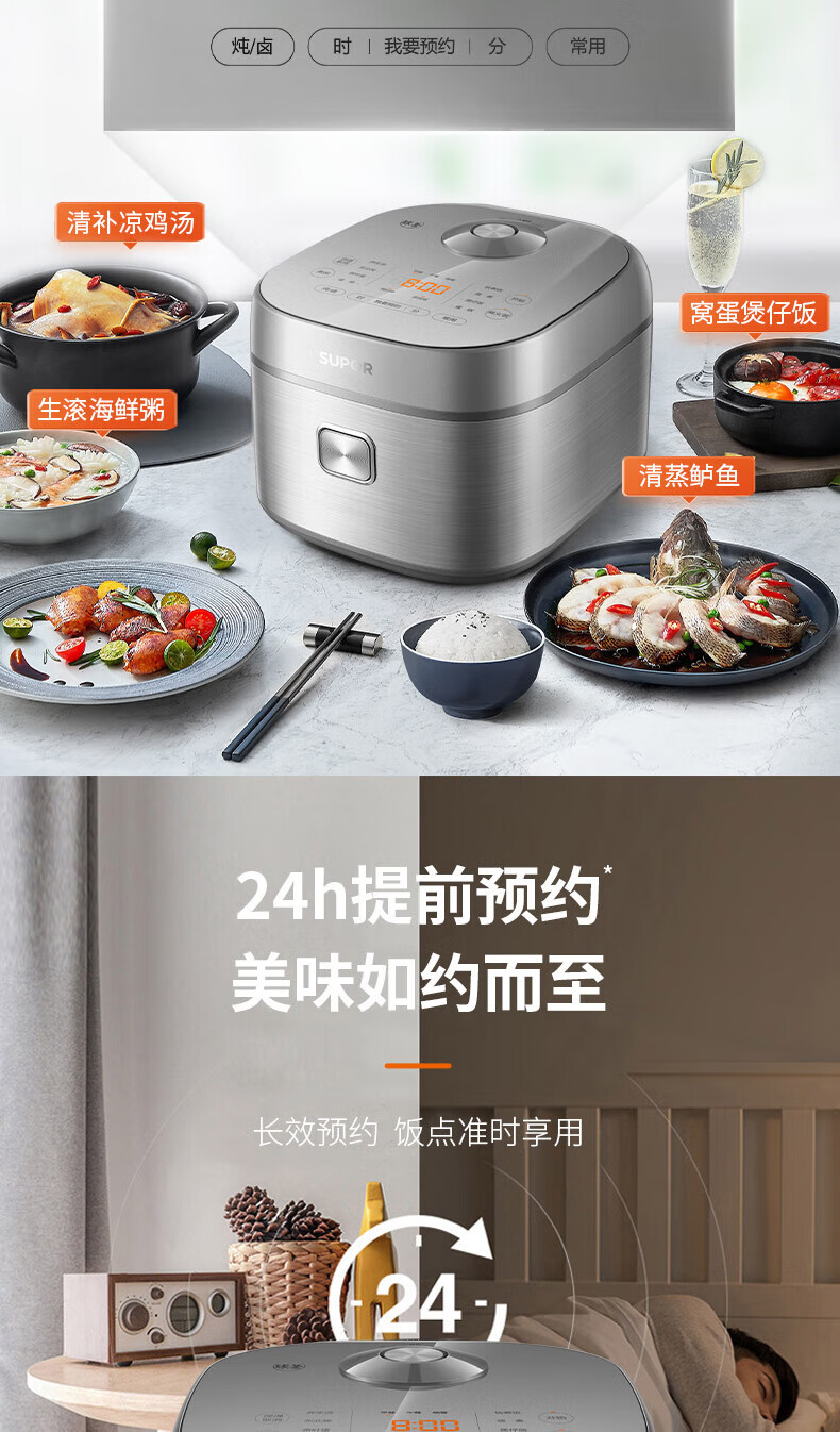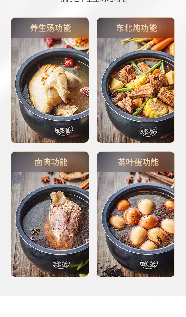 苏泊尔(SUPOR)电饭煲4L家用球型厚釜多功能智能预约2-8人大容量柴火饭煮饭锅 SF40FC99