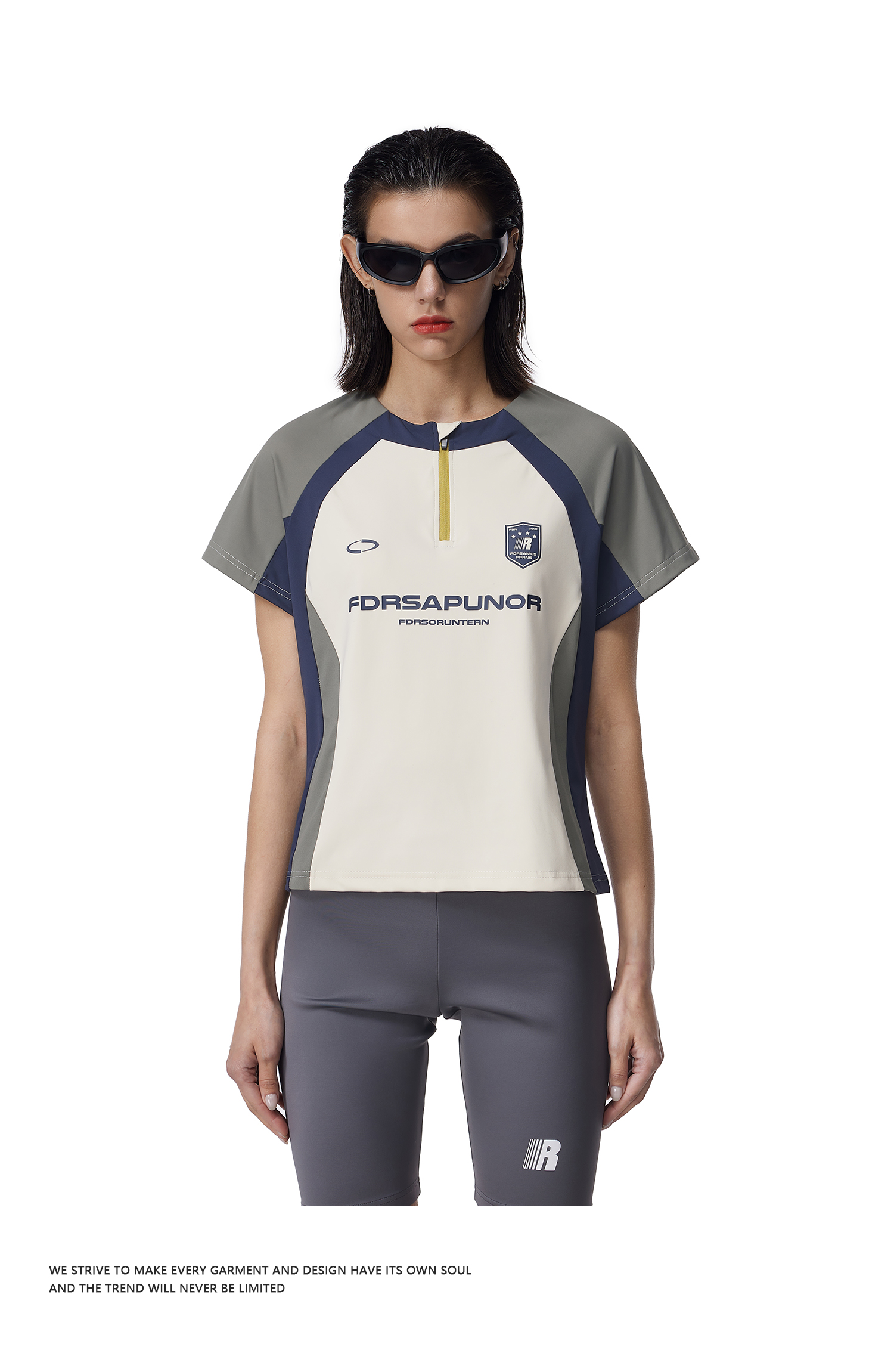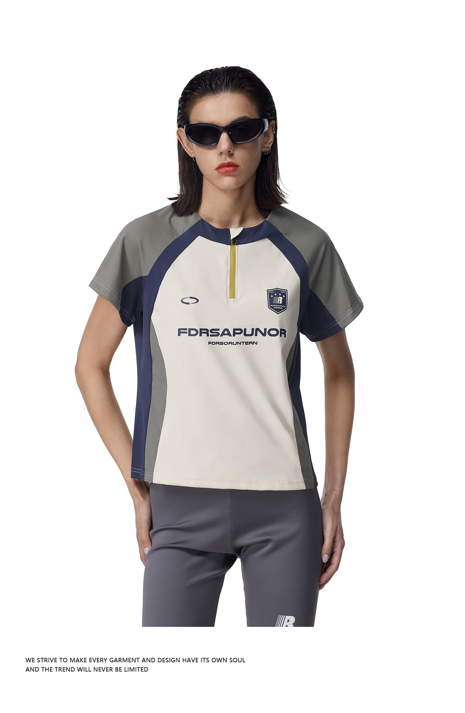 FDR官方店 辣妹拼接拉链短袖t恤女夏季短款速干料先锋户外运动T恤