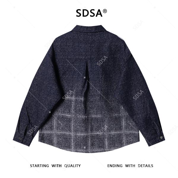 SDSA男士秋冬新款痞帅男装韩版渐变格纹设计长袖衬衫百搭气质衬衣