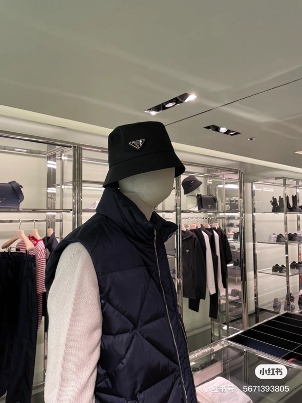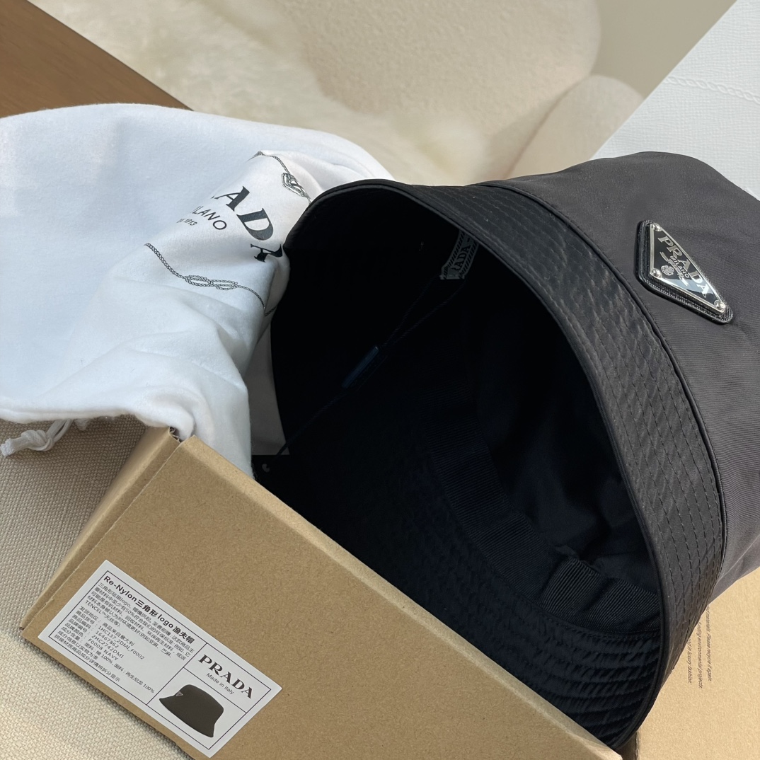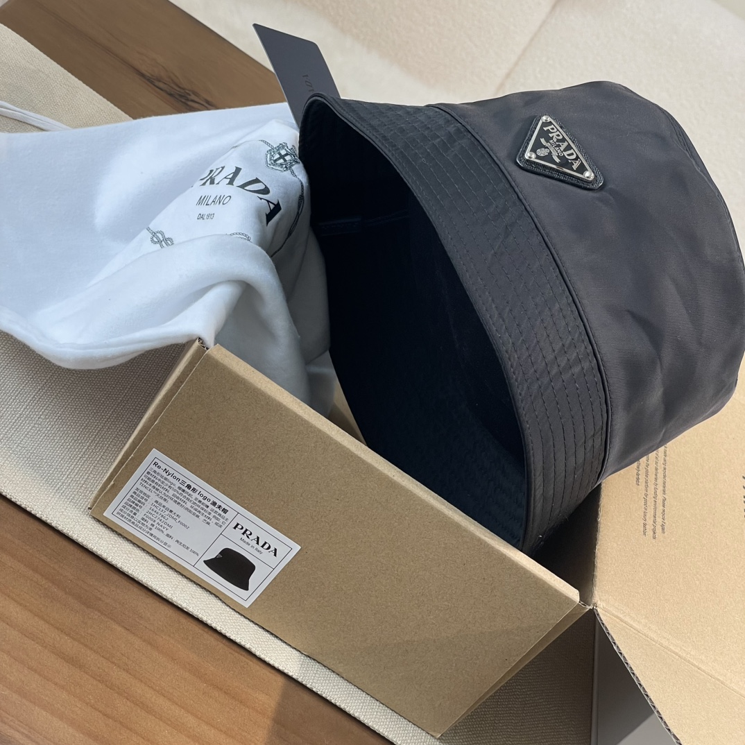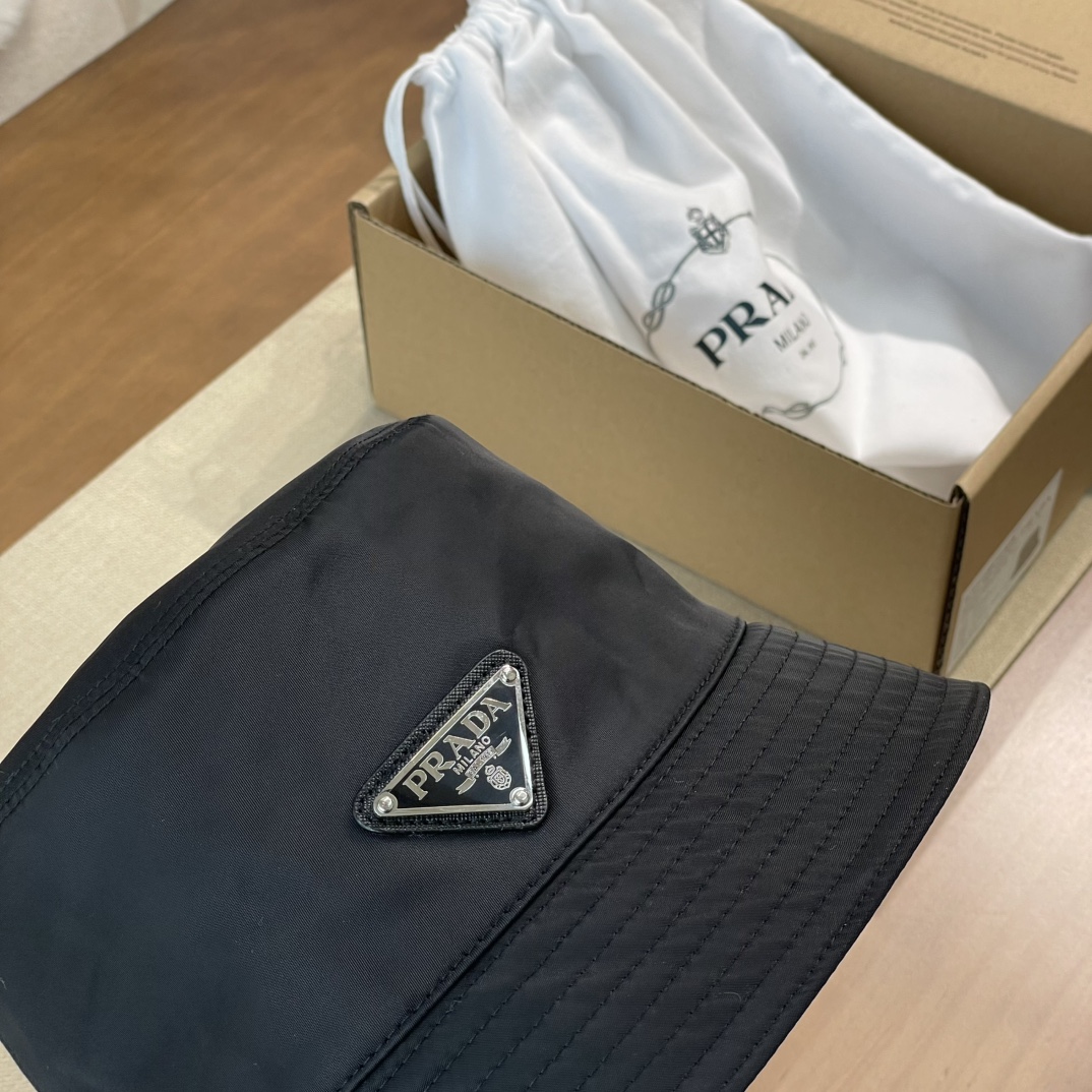 普拉达 珐琅黑色三角标 渔夫帽(CO)
