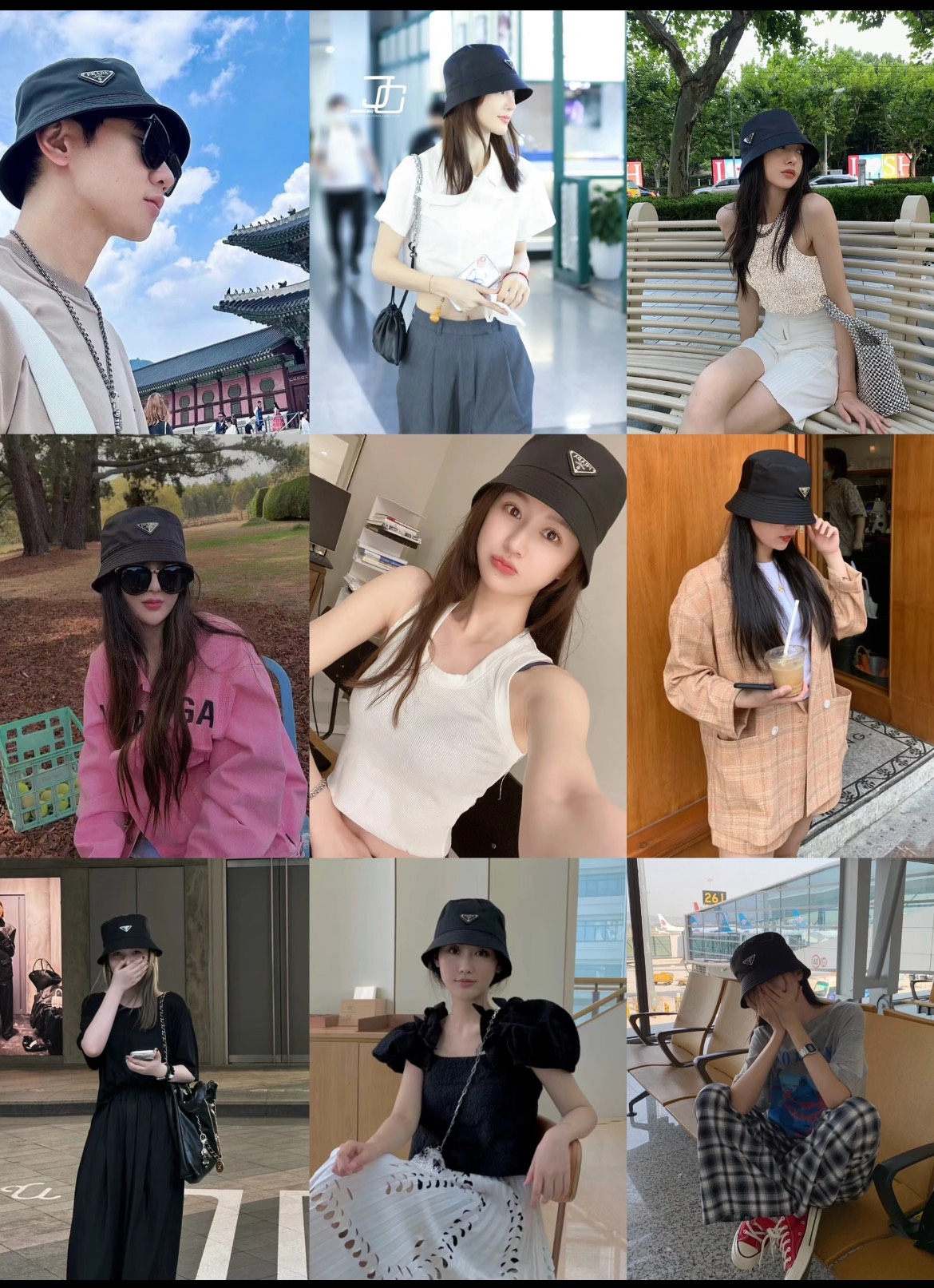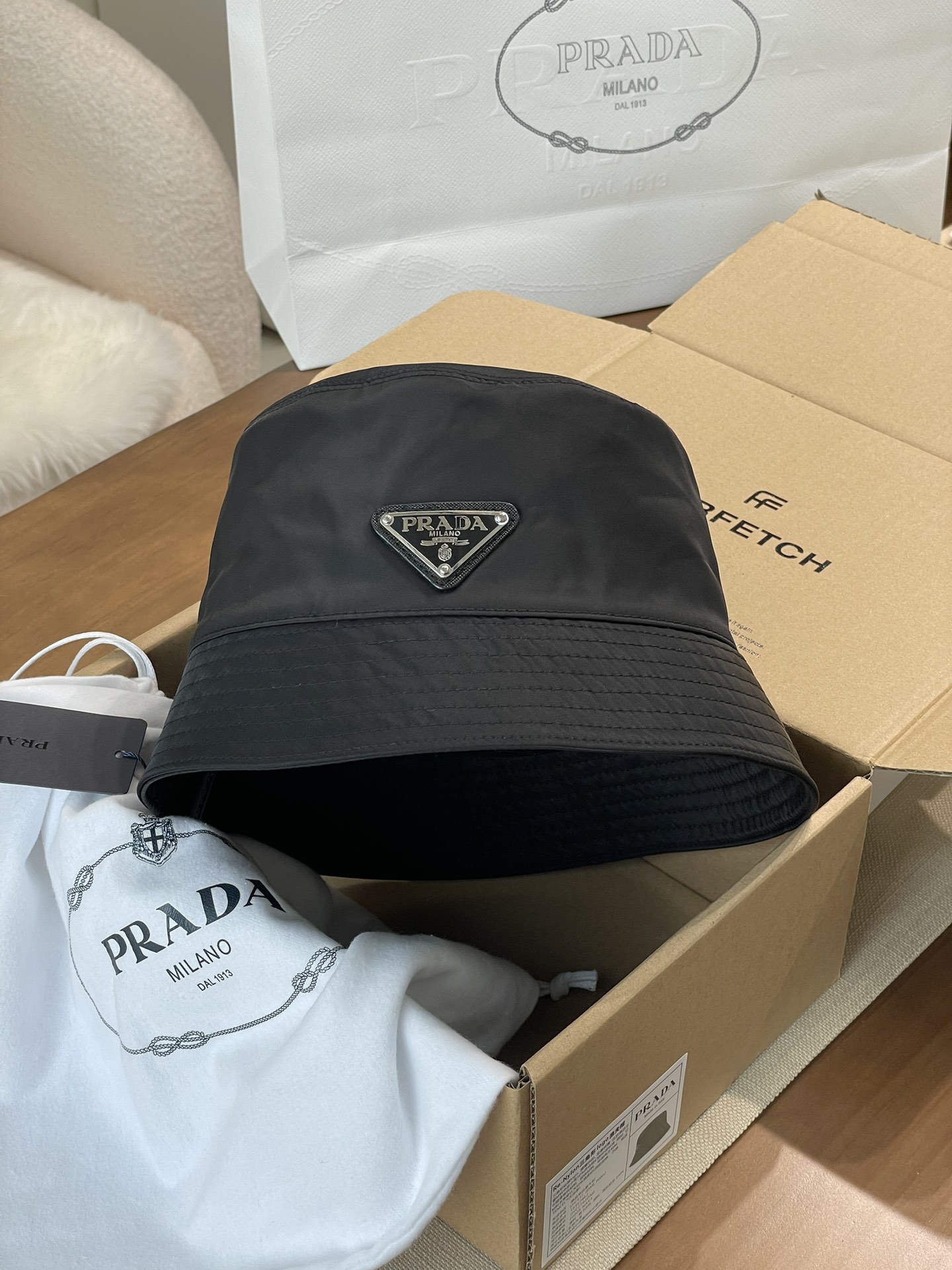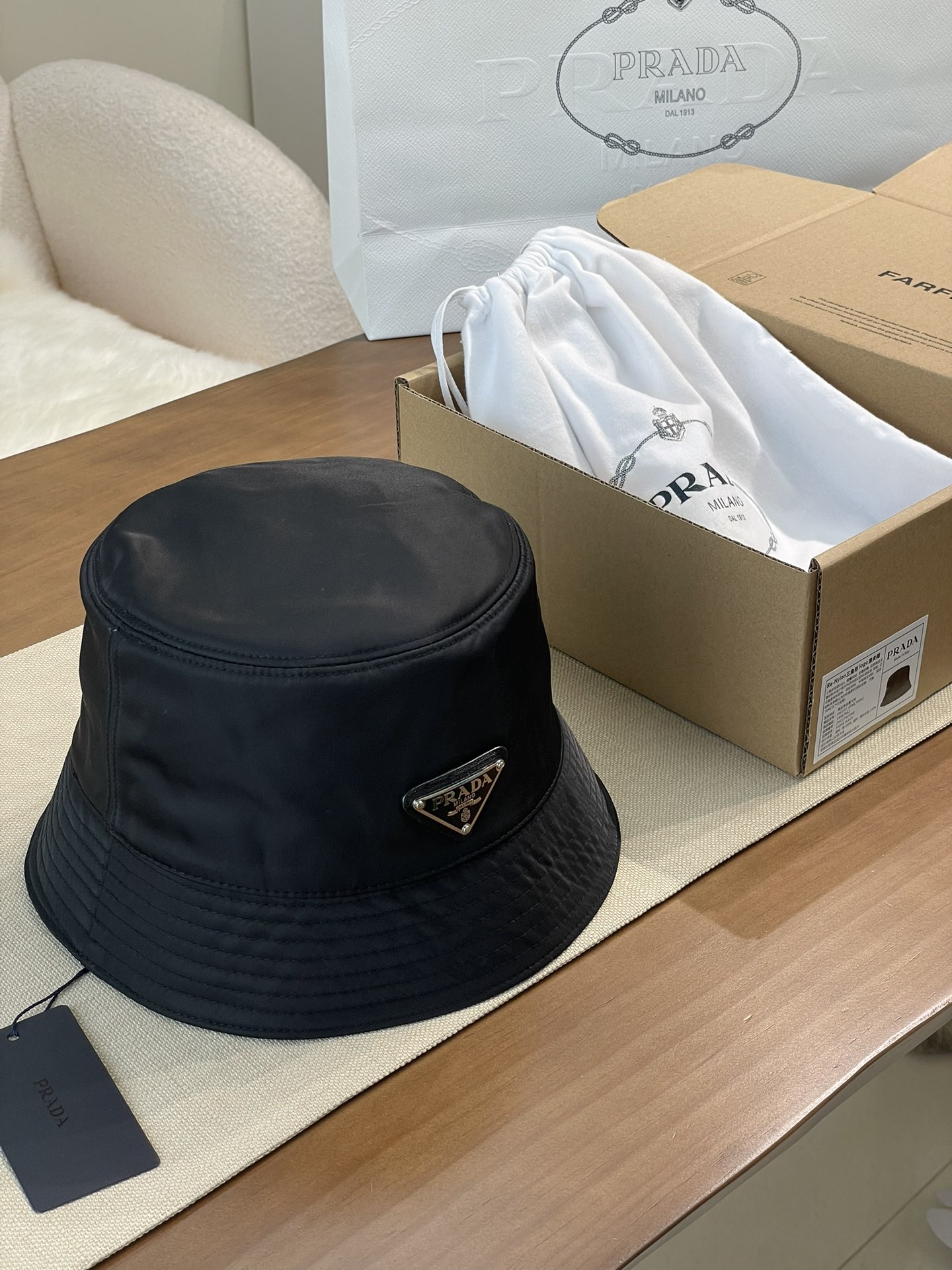 普拉达 珐琅黑色三角标 渔夫帽(CO)