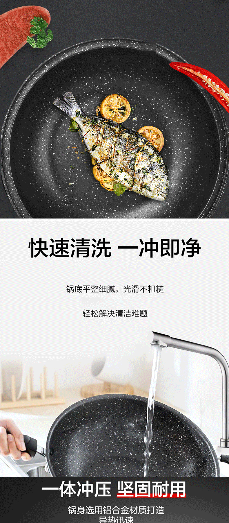 Macaiiroos炒锅麦饭石色不粘锅家用炒菜锅平底深煎锅电磁炉燃气通用迈卡罗 MC-C30L7(白)