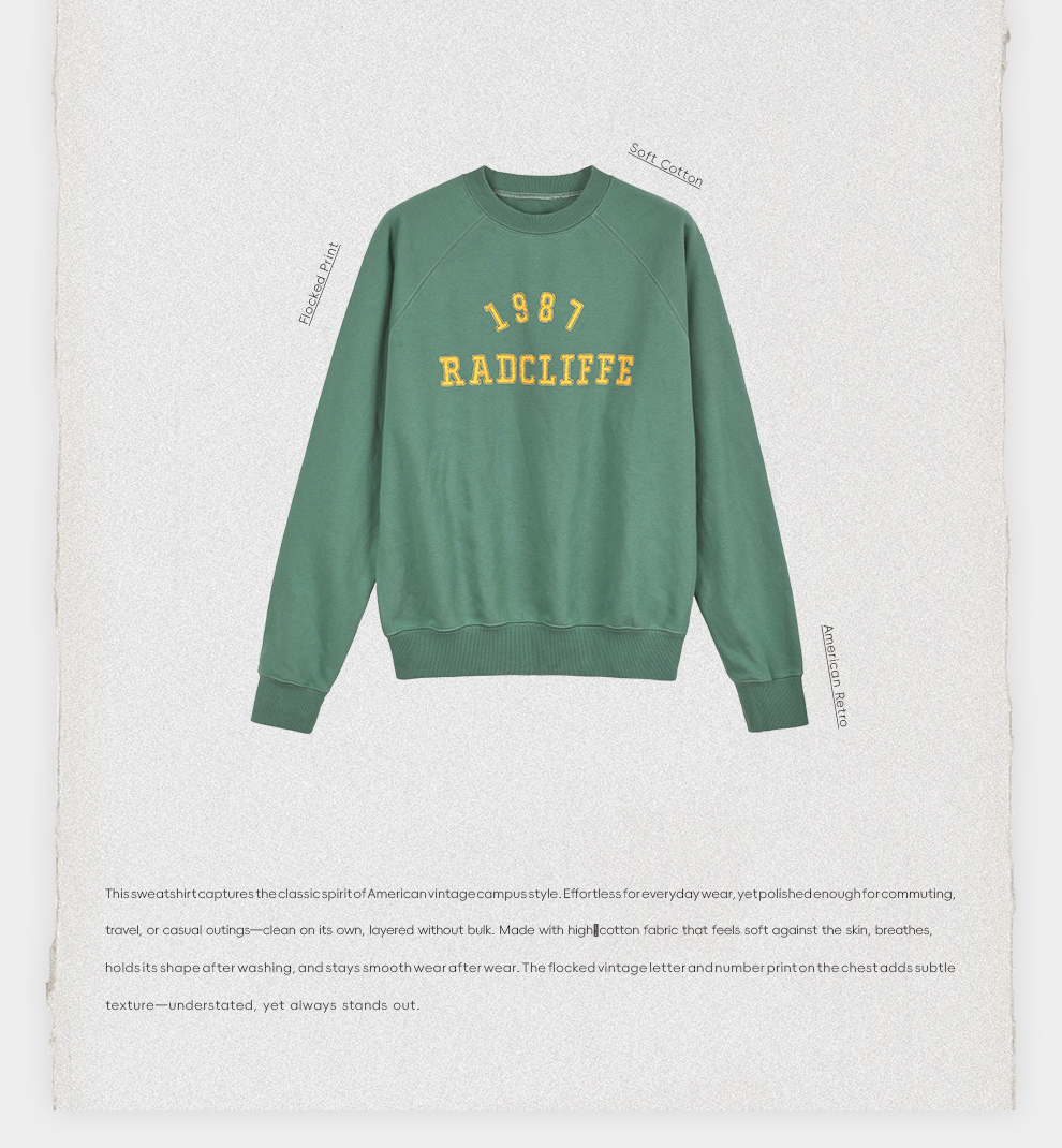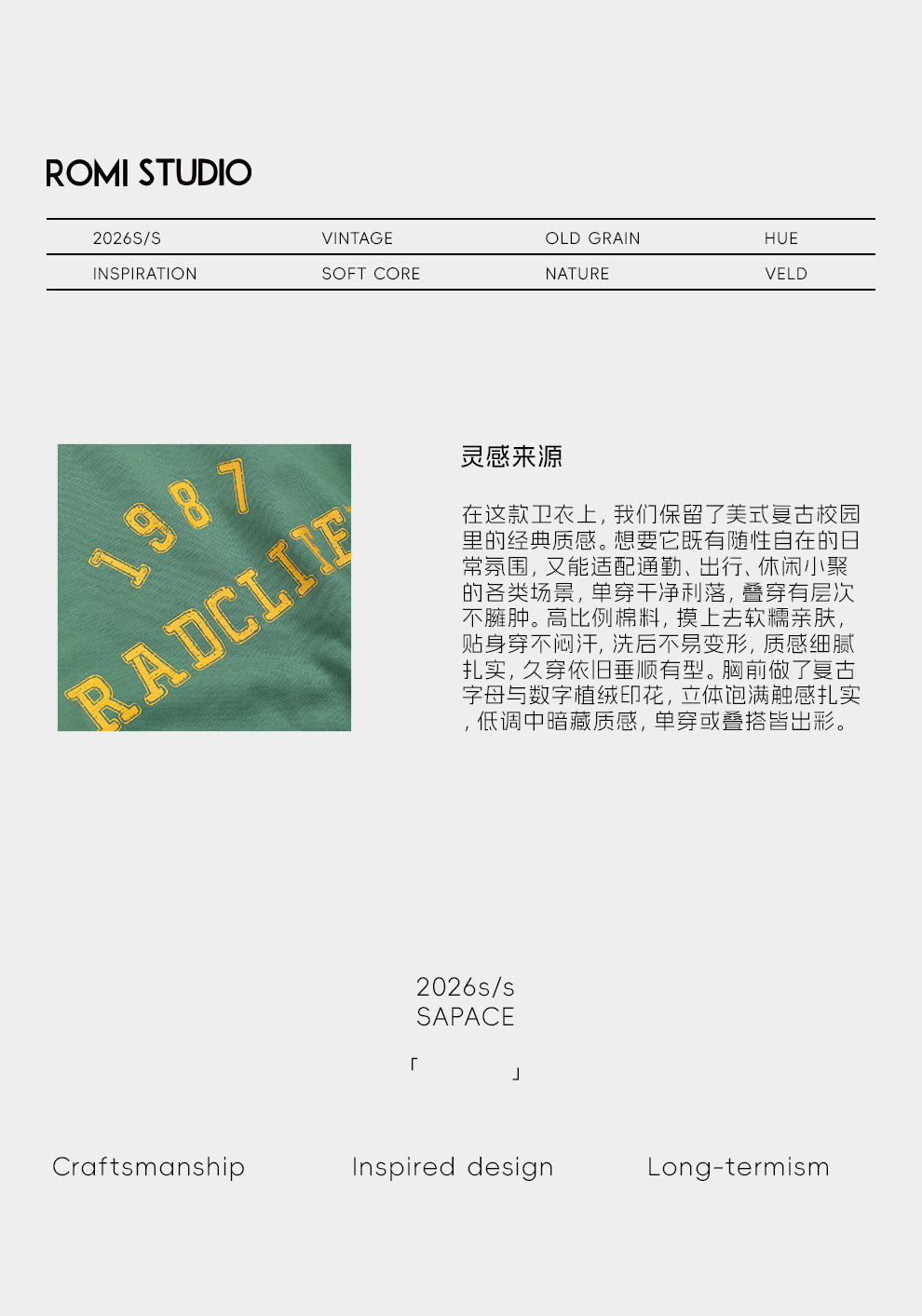 ROMI STUDIO“美式复古”纯棉印花插肩袖宽松套头卫衣RWDSS62574