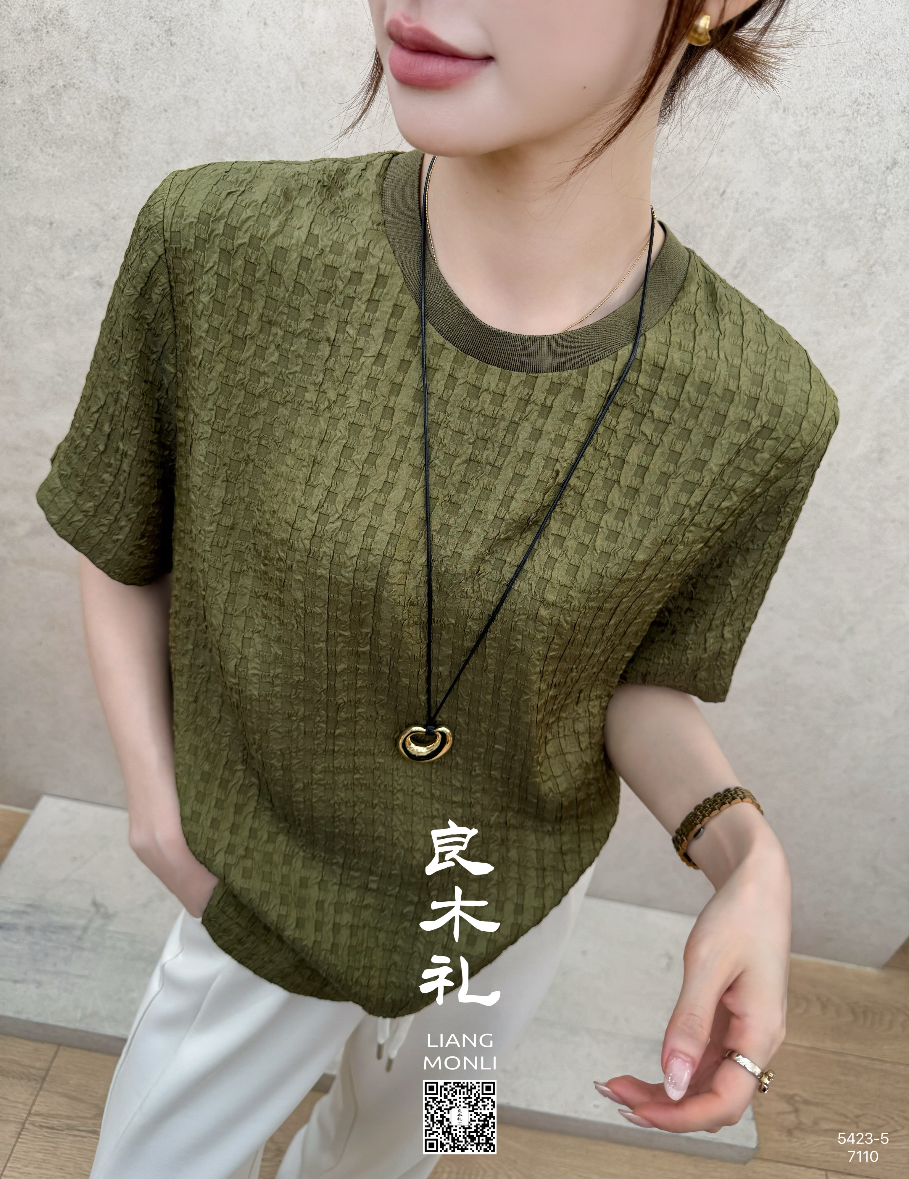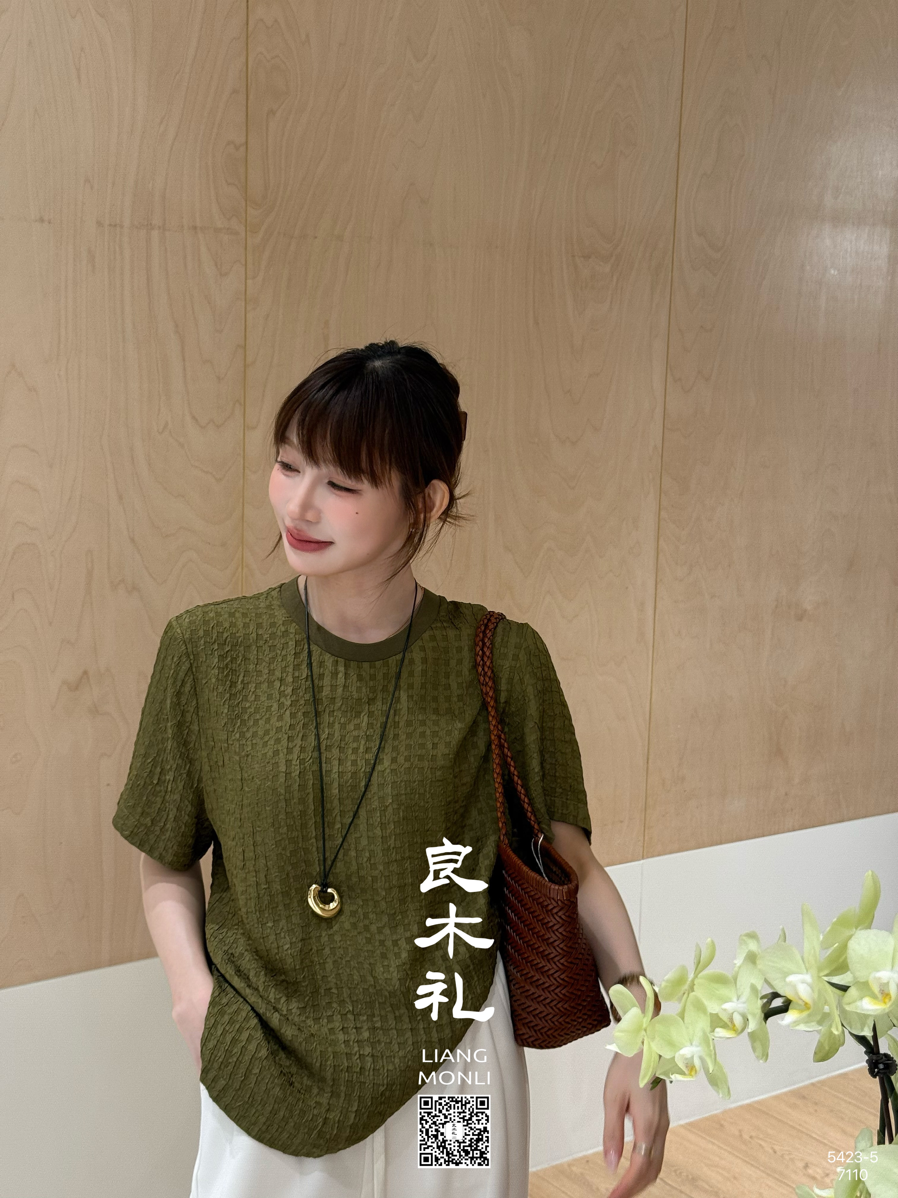 【预售7天】良木礼丝绸绉格短袖(5423-5)