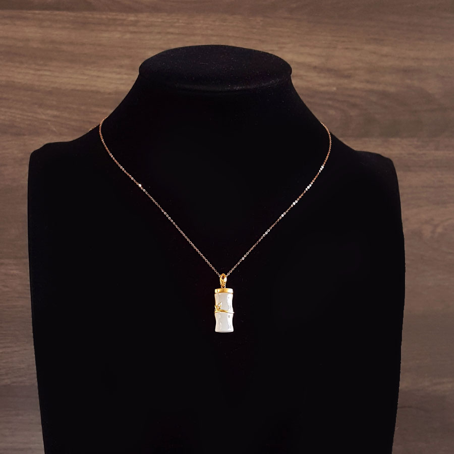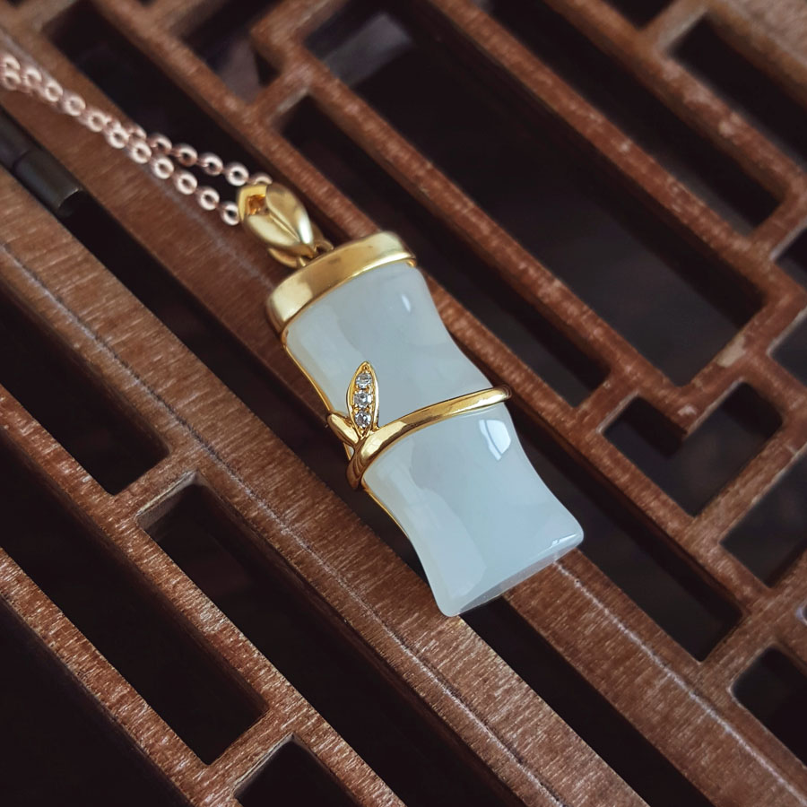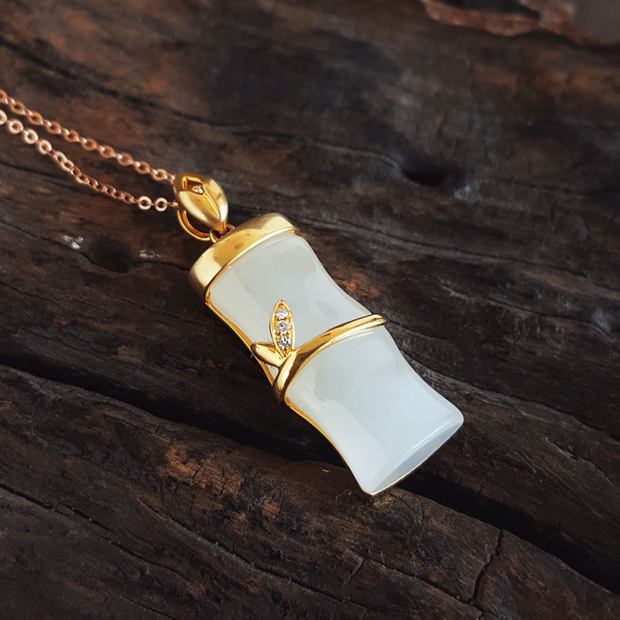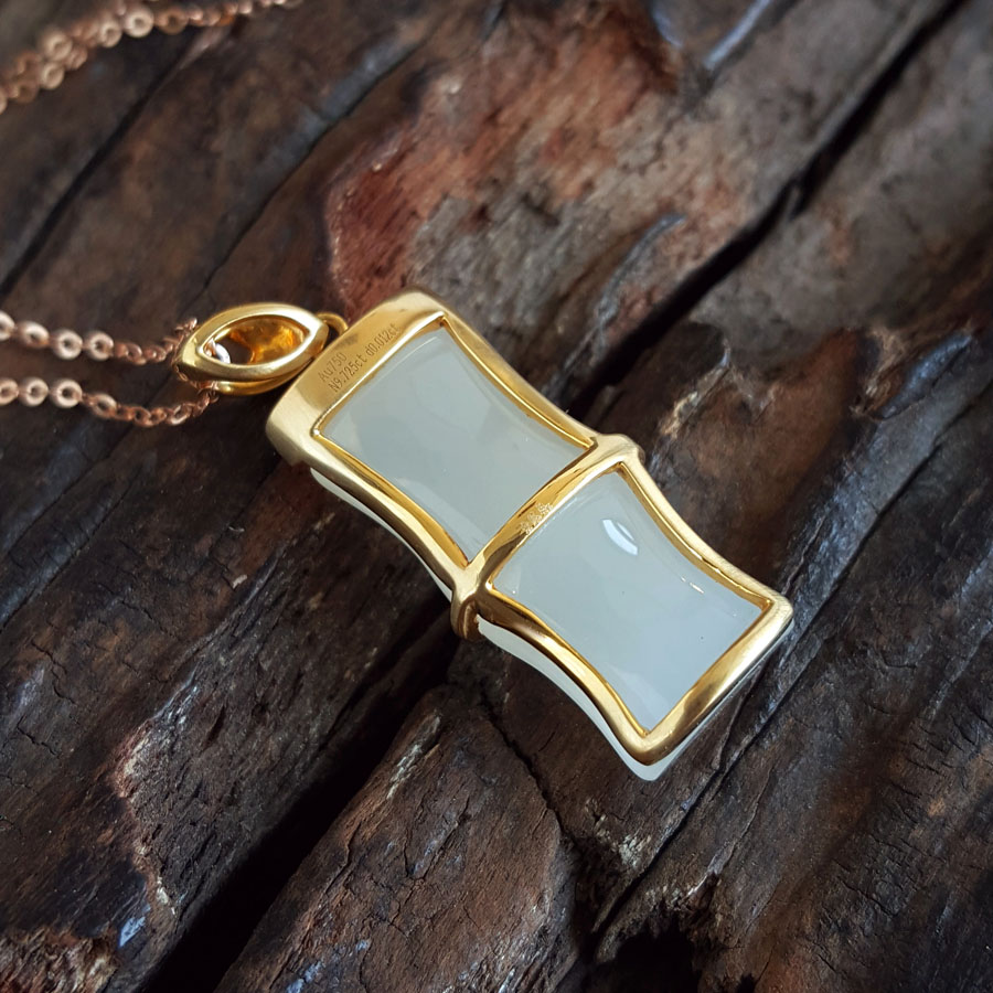 名称 | 老凤祥AU750黄金镶钻镶天然青海料细腻竹节造型和田玉吊坠项链 |