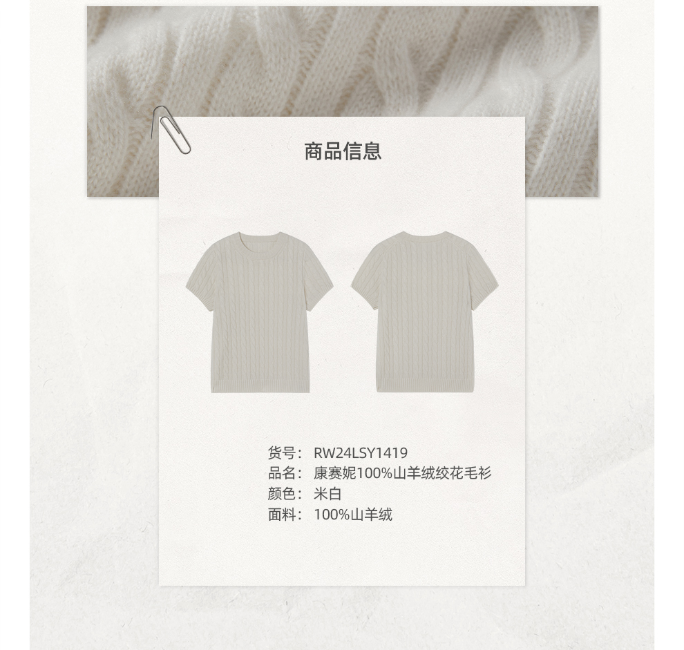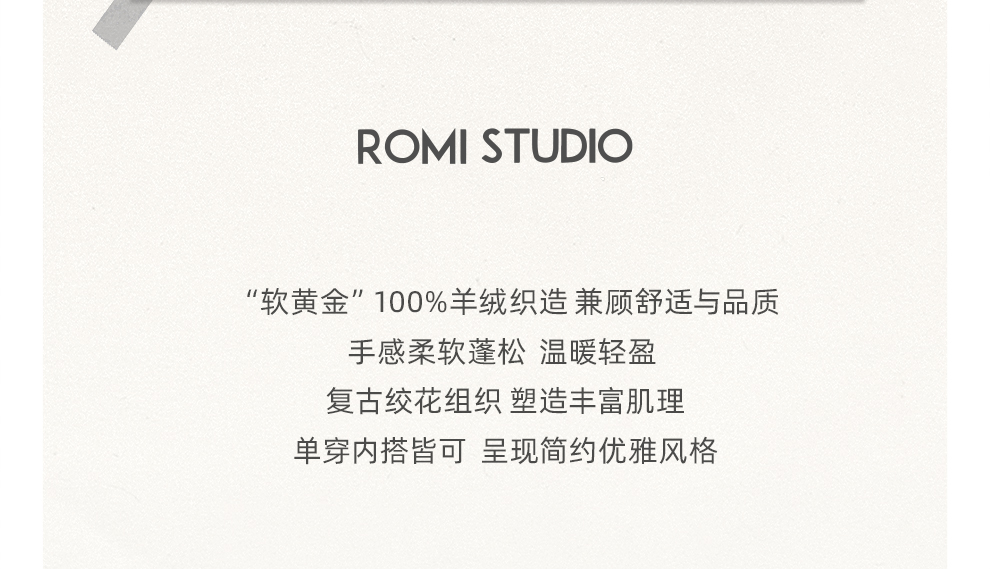 ROMI STUDIO“经典优雅”康赛妮100%山羊绒绞花套头毛衫RW24LSY1419