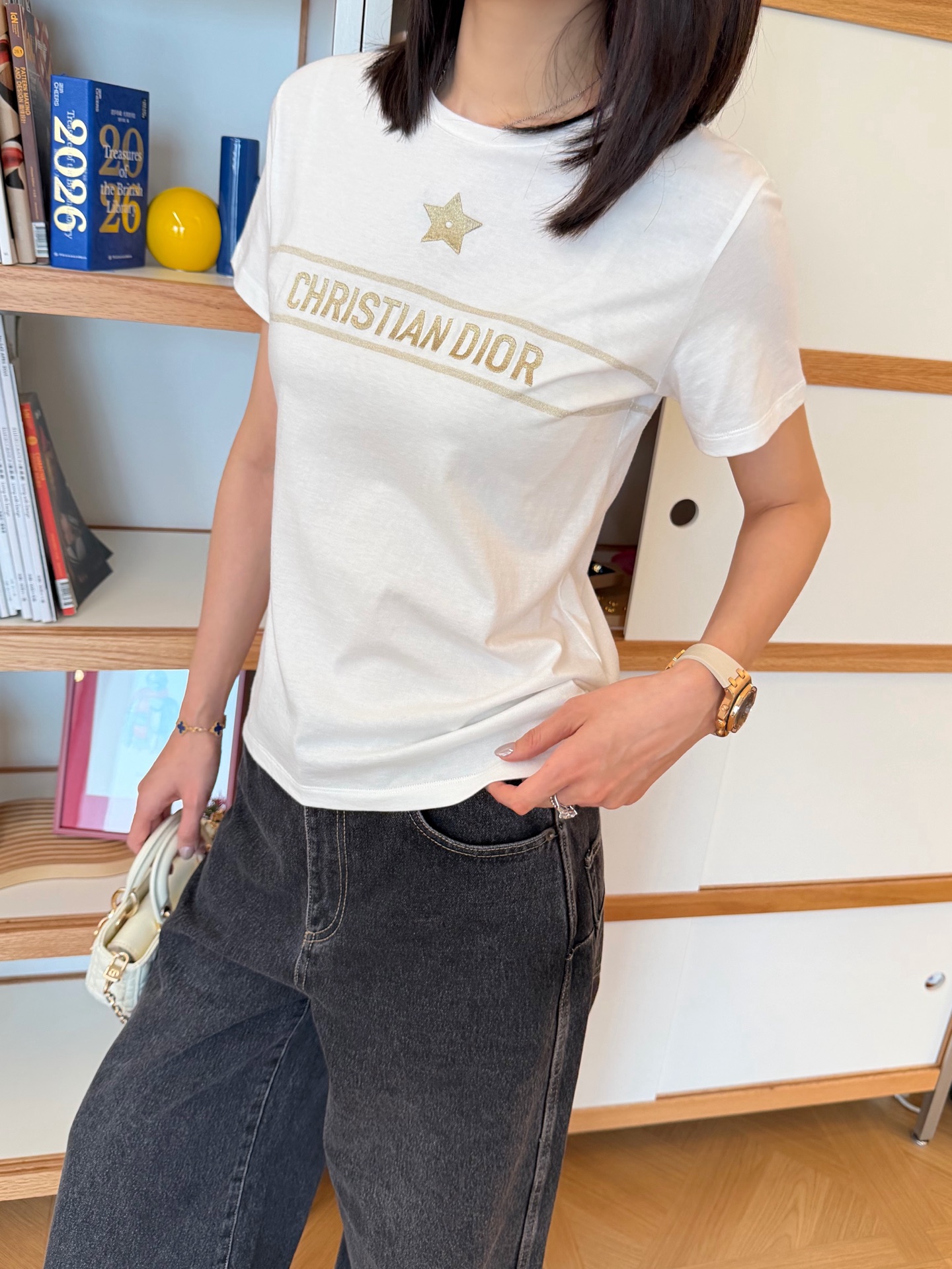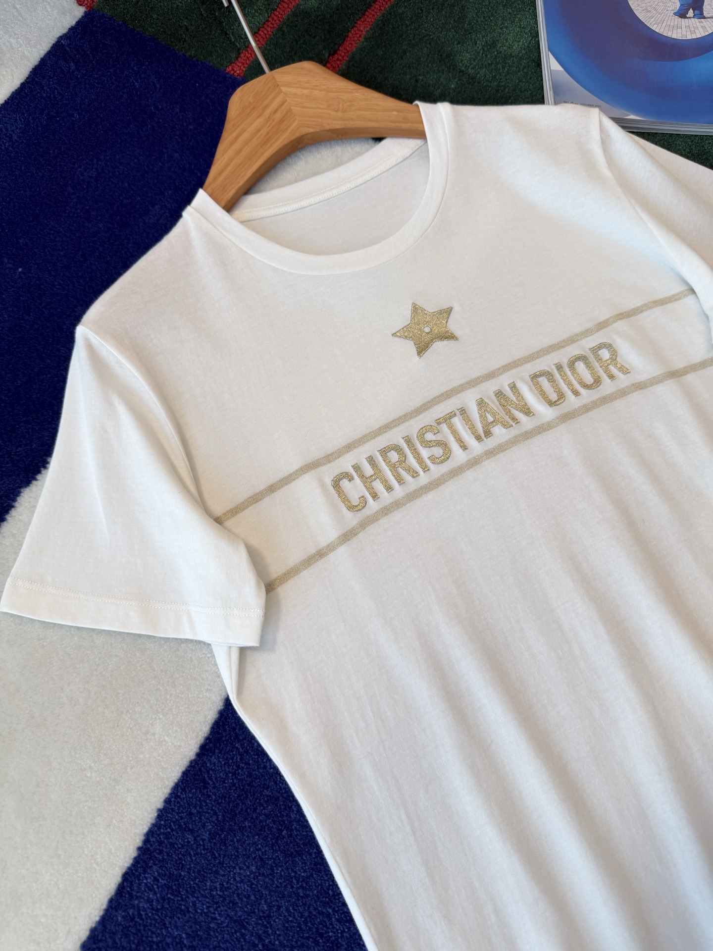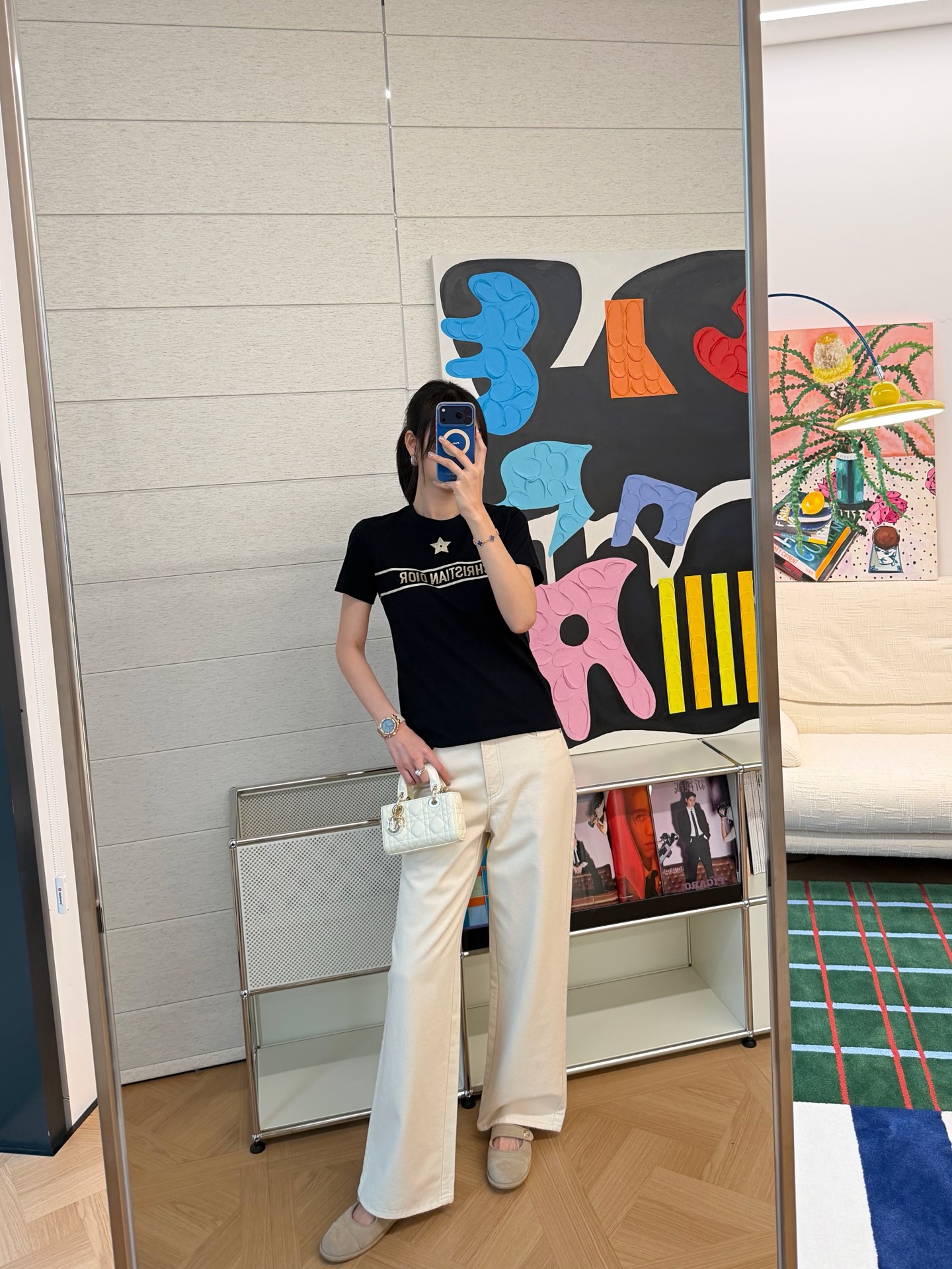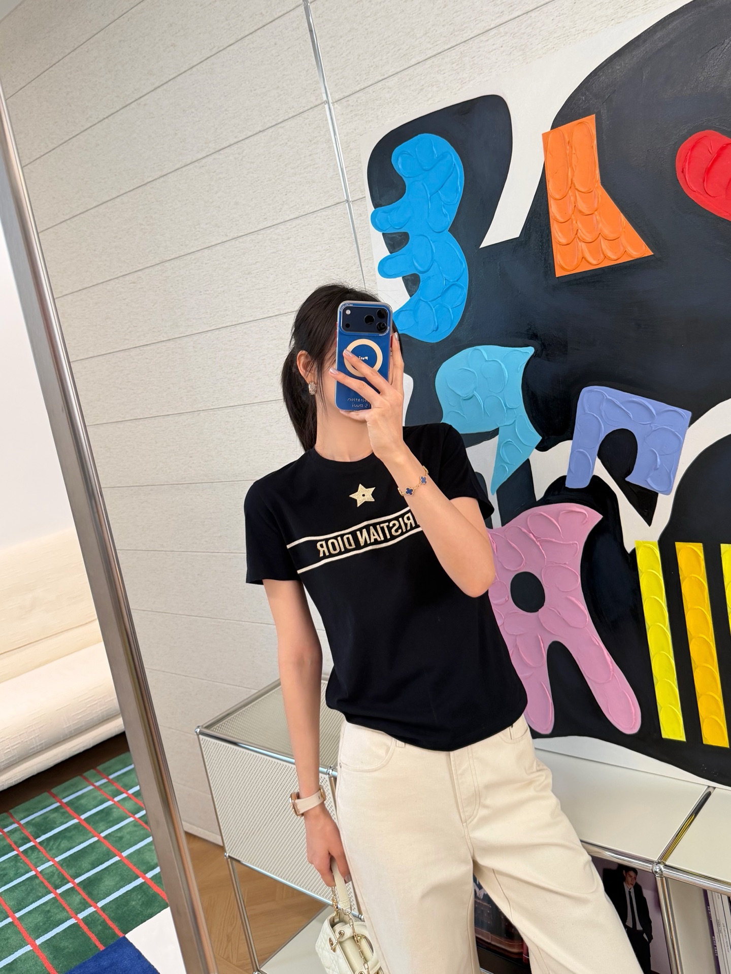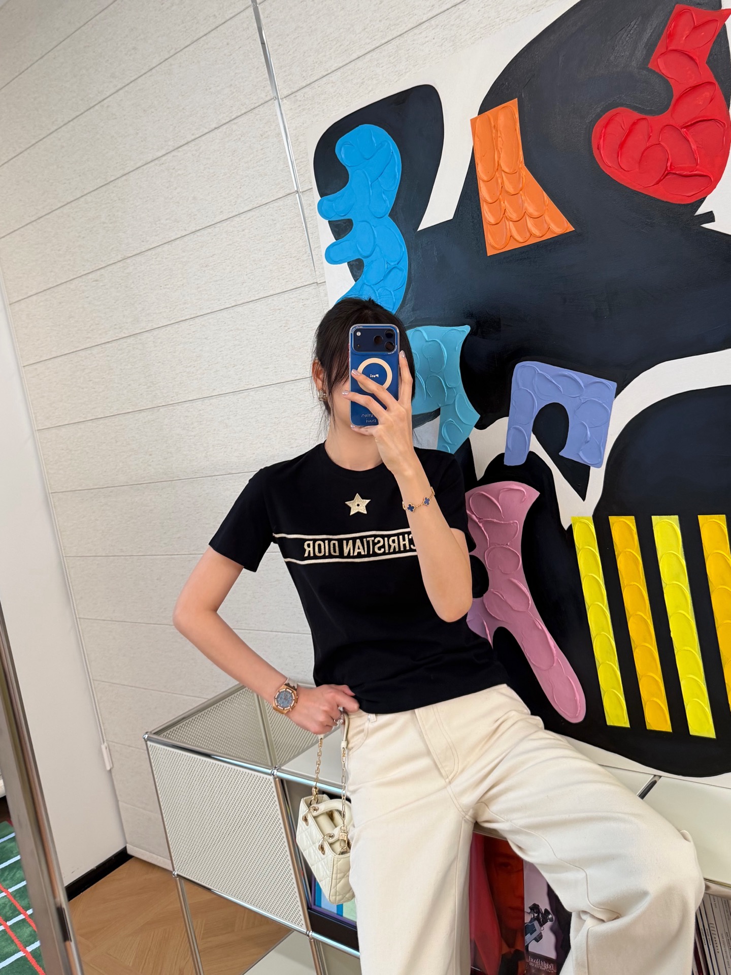 【新款上线】新款🆕幸运星🌟T恤✨ 简直美到犯规🥰低调的奢华感☺️采用棉质平纹面料精心制作,面料超舒服🔜软软糯糯💫正面饰以经典的金色调星星和LOGO标志刺绣,针脚细密到像“长”在衣服上😜成为了衣柜中不可或缺的一款单品☑️ 基础常规的版型🤩无论是喜欢休闲风格的你,还是追求简约高级设计的你,都能在这款T恤中找到属于你的那份风格💗上身绝美🎶随意搭配都可以封神😜黑/白两个色,码数SML