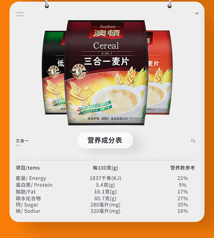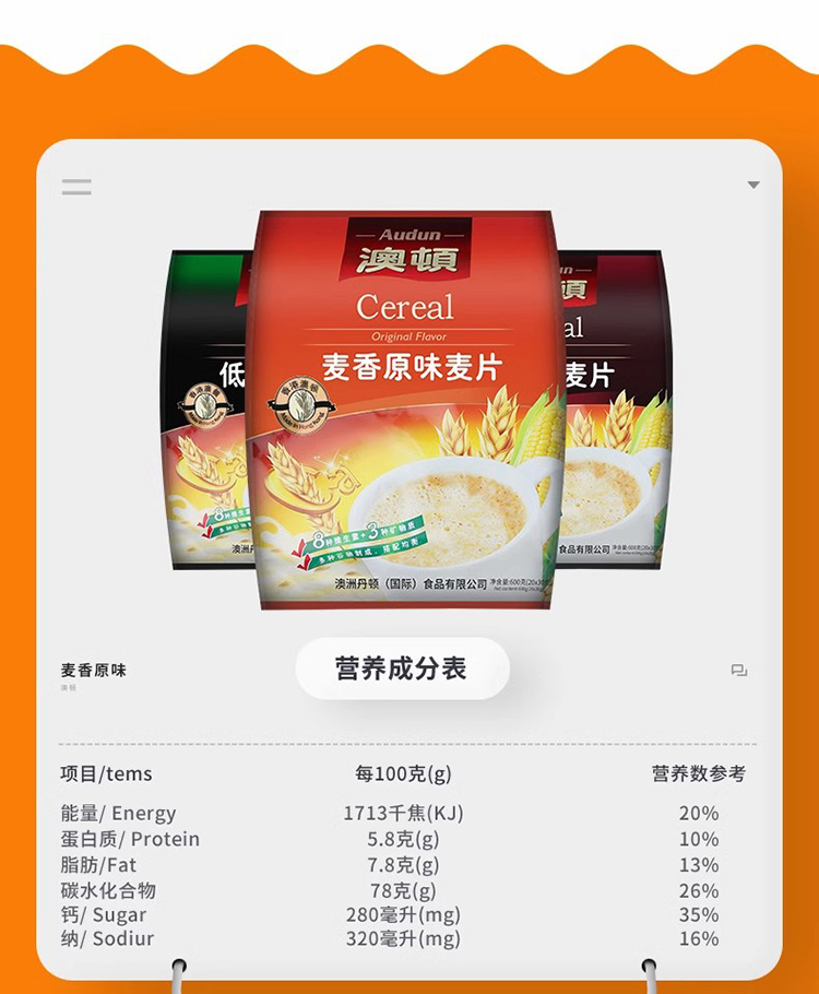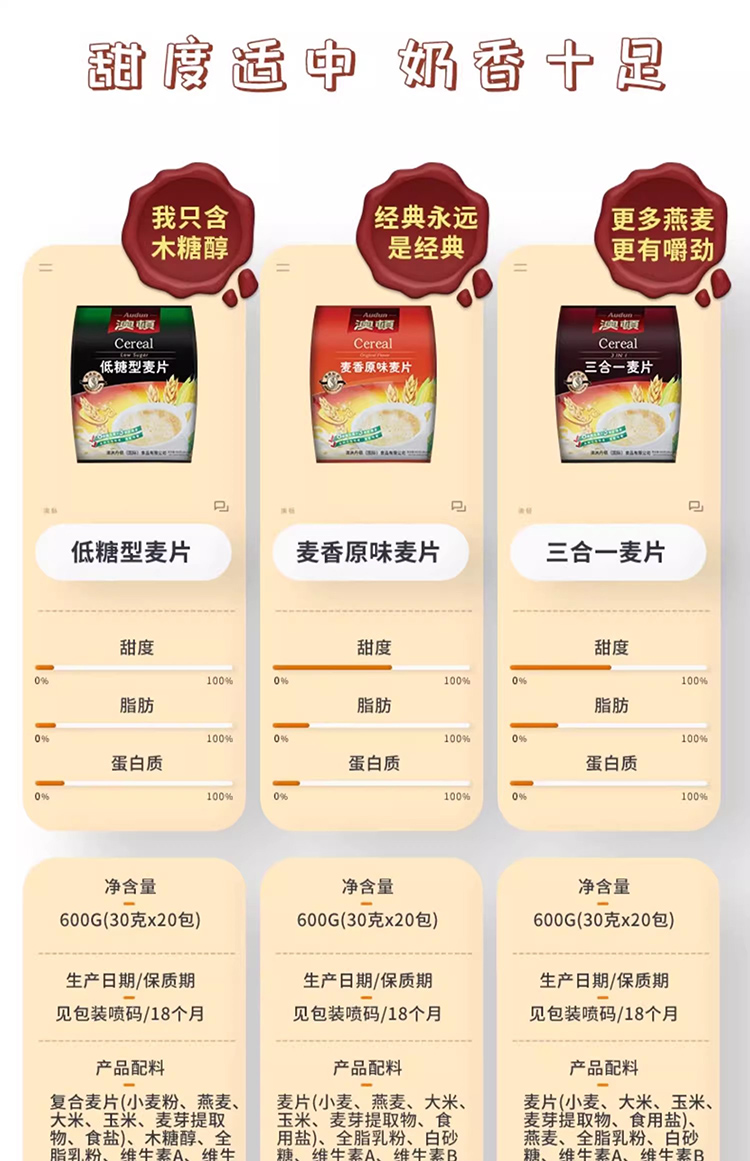 广东潮州澳顿麦片袋装600g/袋(不同口味可选)