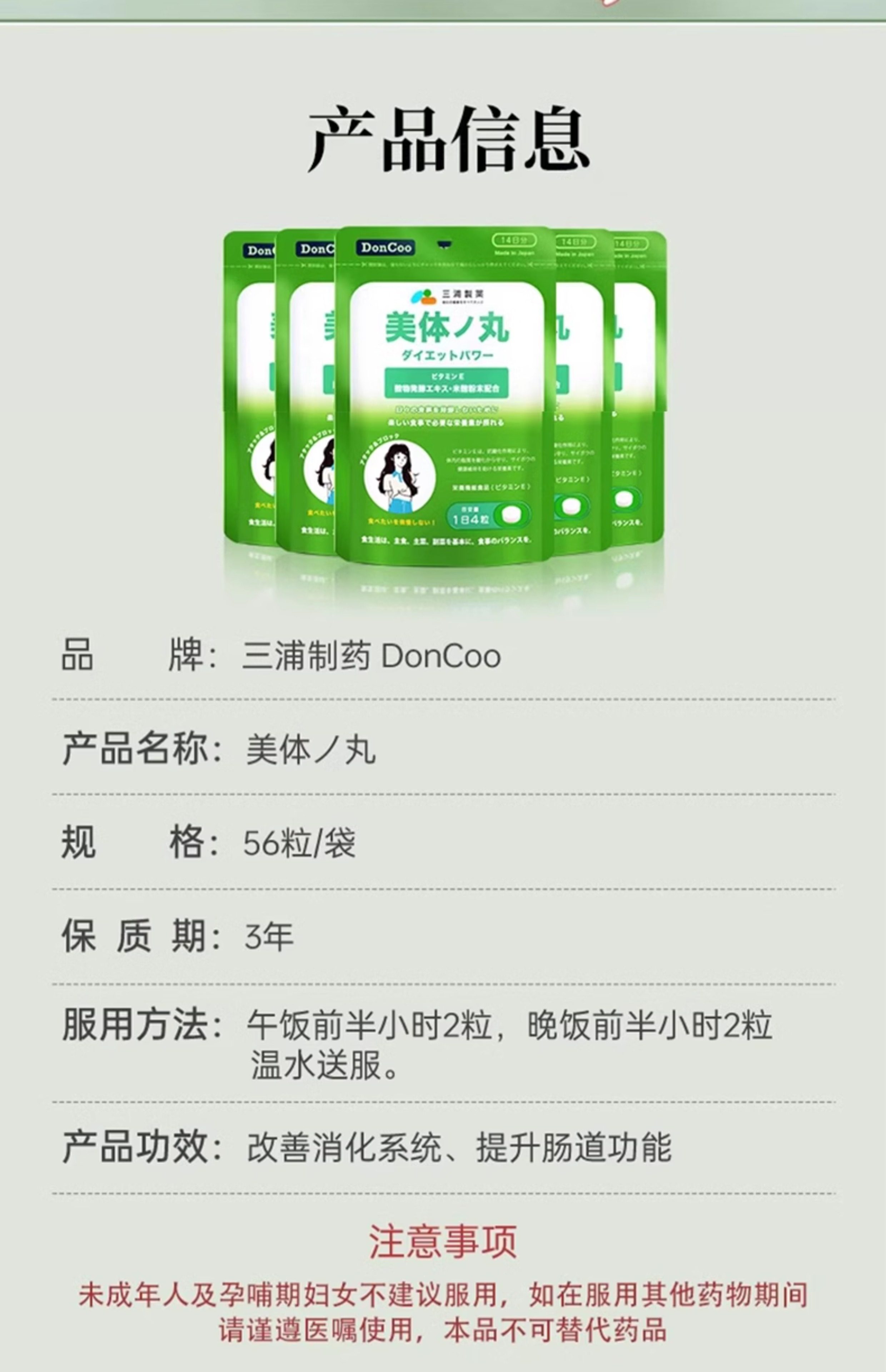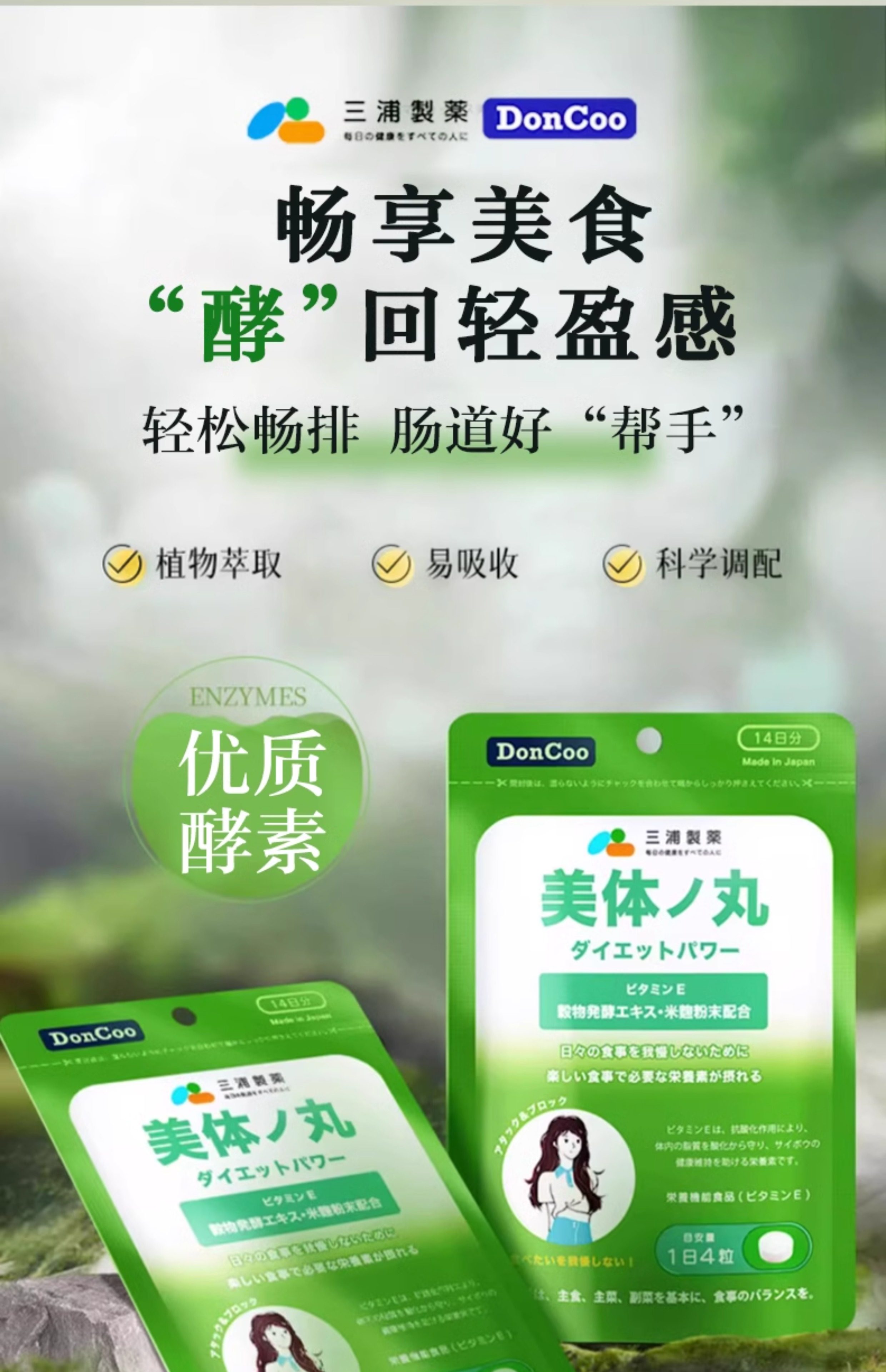 三浦制药DonCoo日本进口美体丸夜间植物酵素纤体清肠保养品4包H