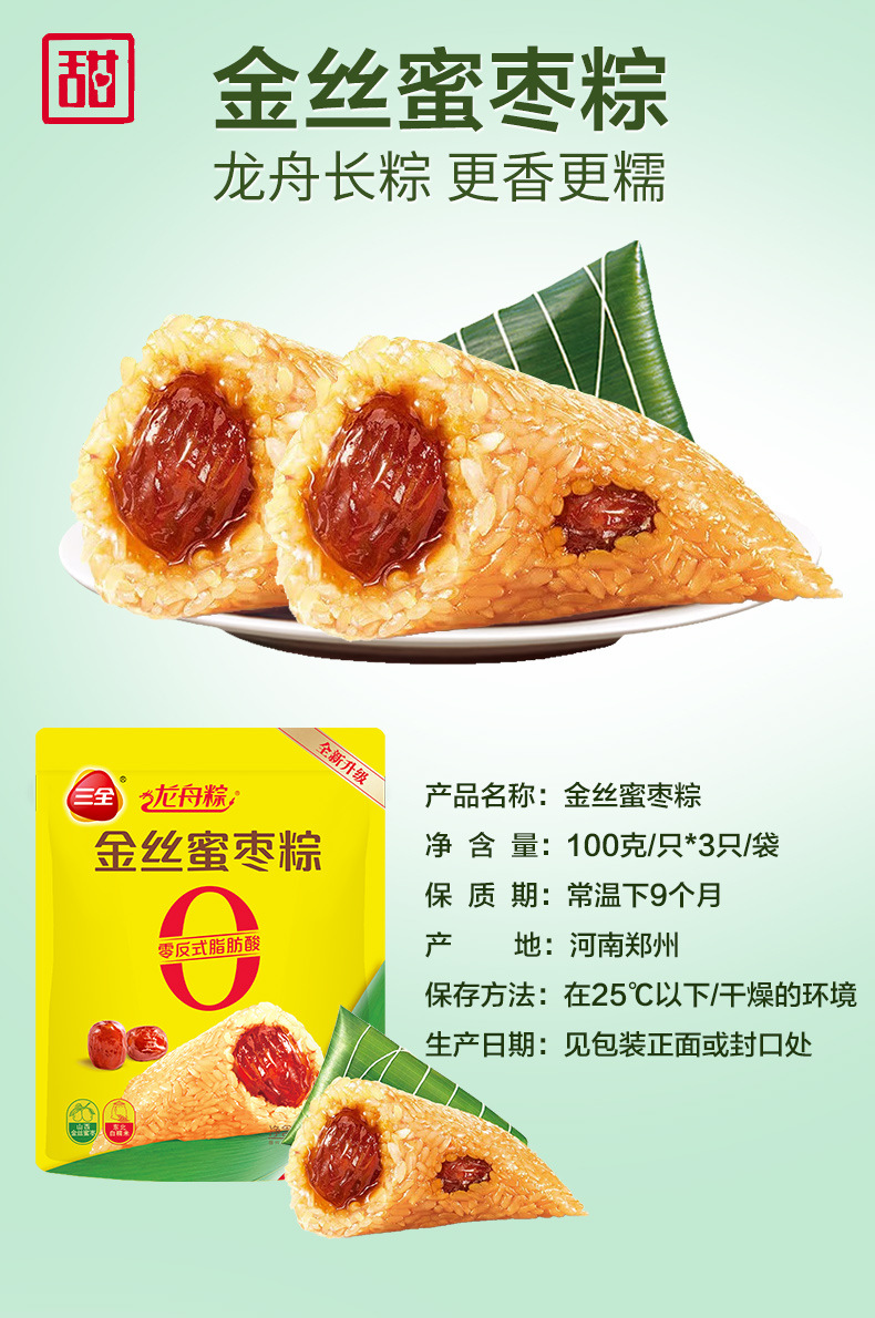 【粽享端午,寄情龙舟~】三全粽子 鲜肉粽蜜枣豆沙甜粽子 板栗猪肉粽子 素粽端午礼品团购送礼-QQ