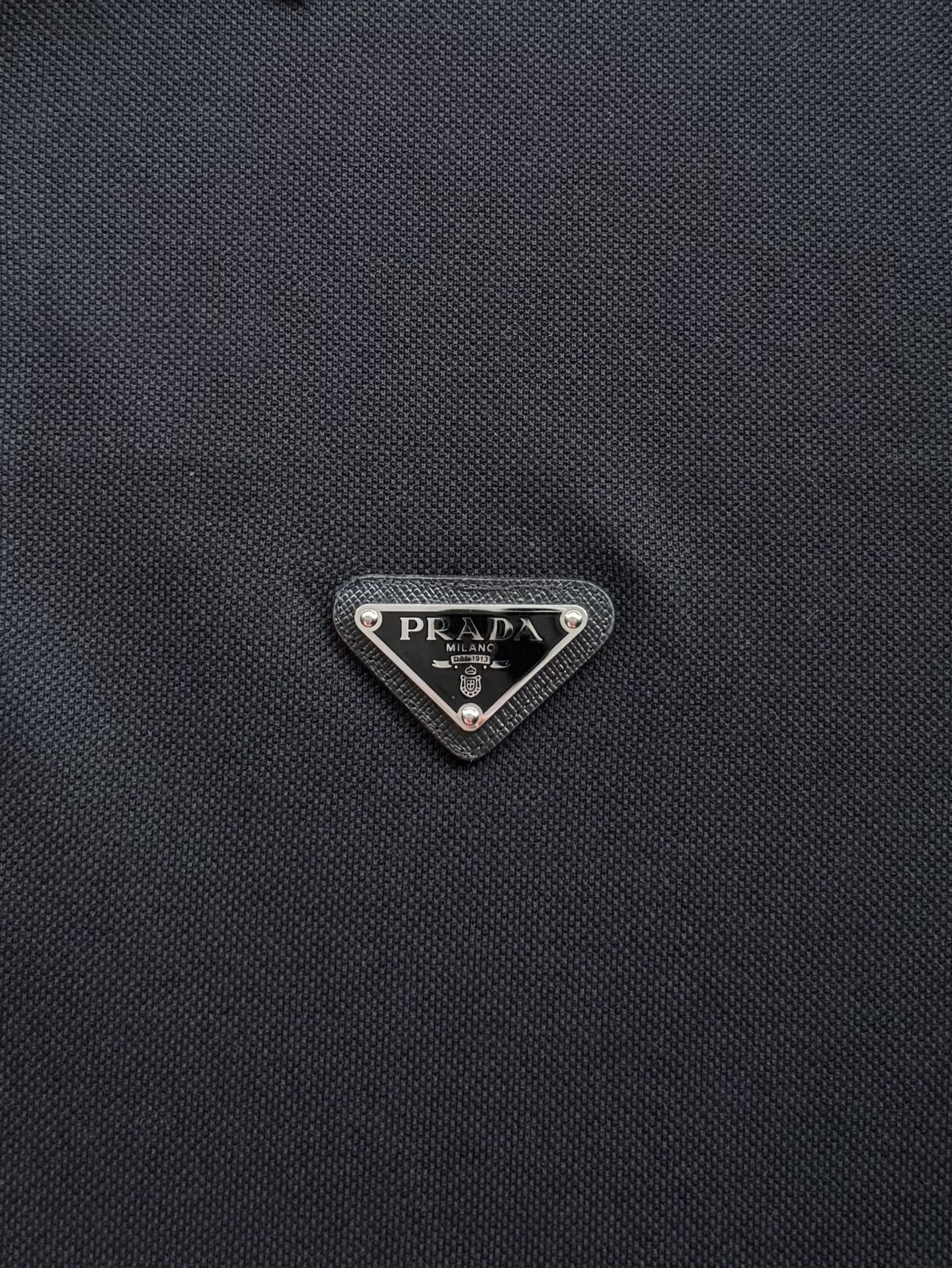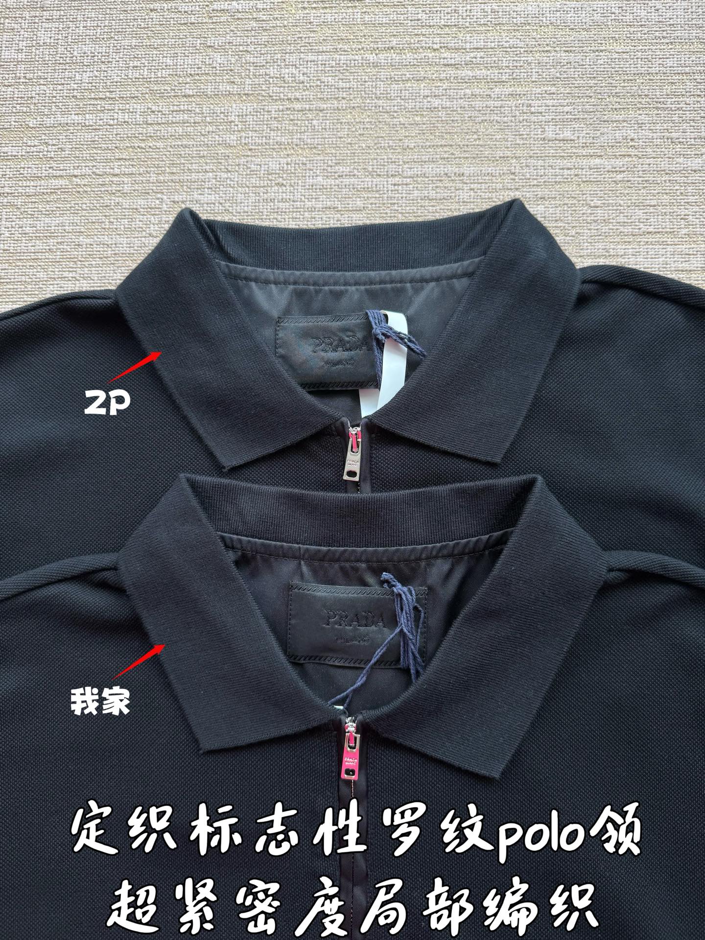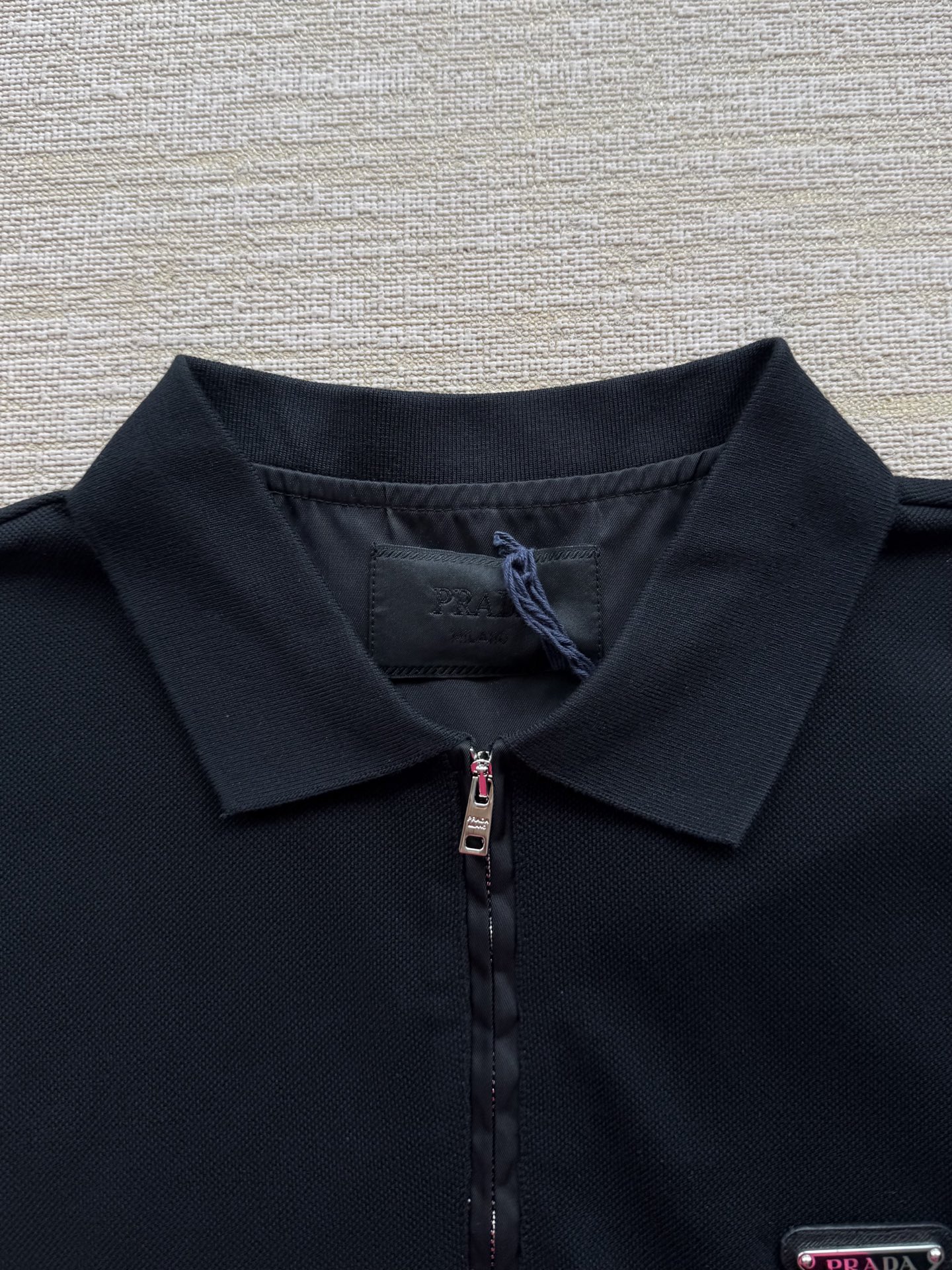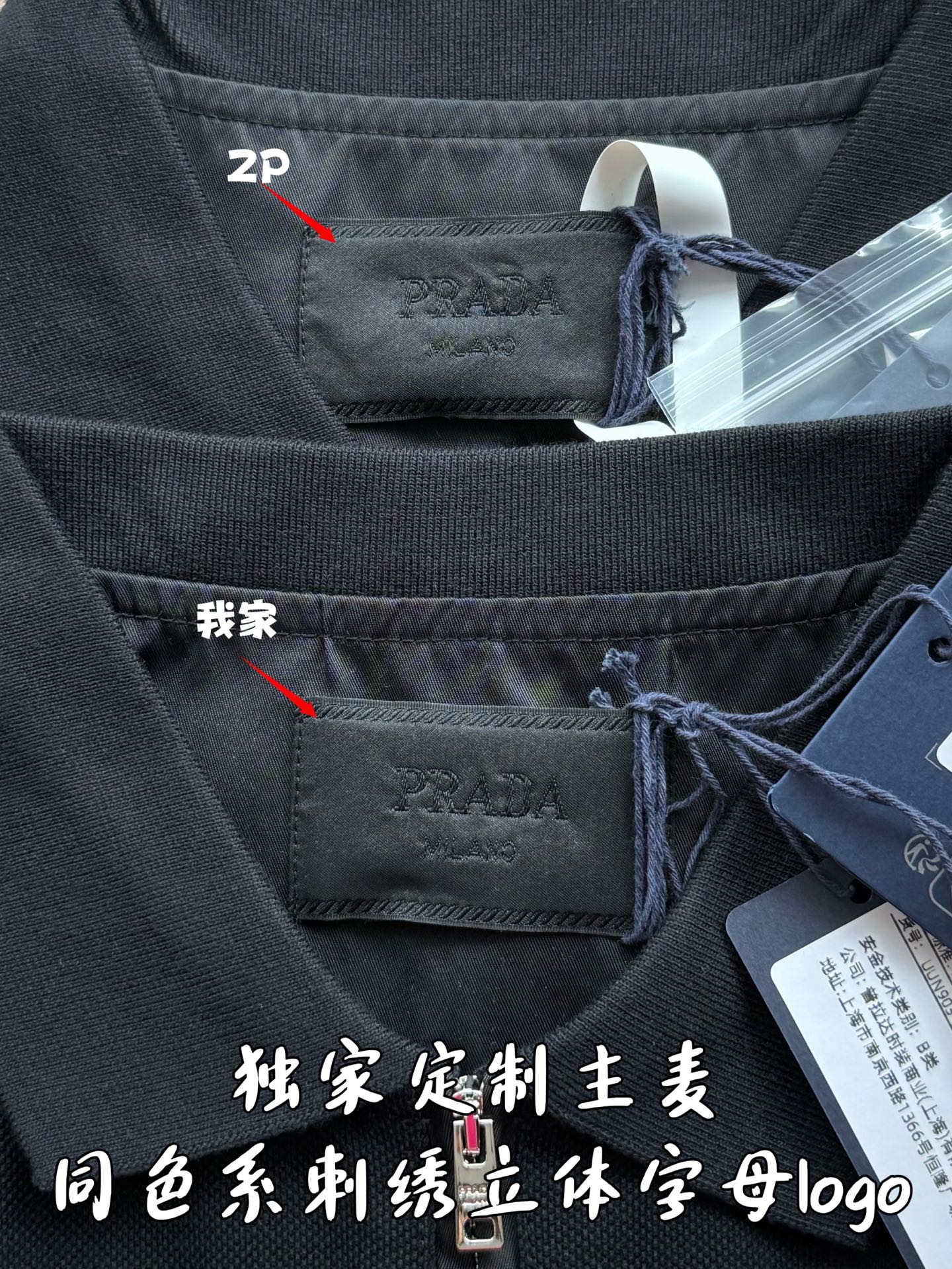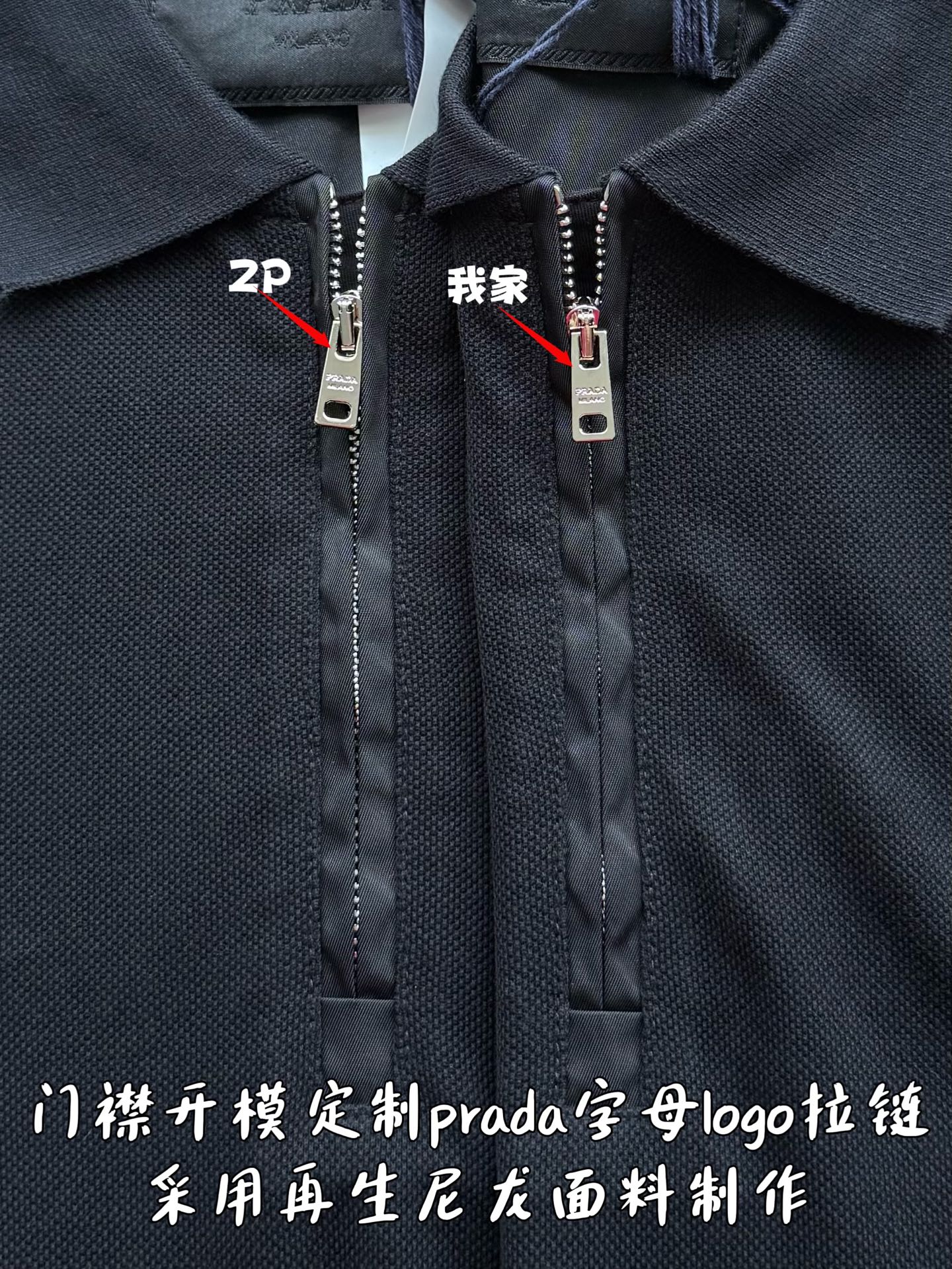 PRADA半拉链三角标polo衫‼️整件衣服7600购买ZP拆解打造,定制黑色珠地棉面料,做到100%全棉进口纱线,定制标志性罗纹polo领, 袖口 下摆双层高密度走线,开模定制字母logo拉链,拉链处采用再生尼龙面料,胸前开模定制最新三角标,真正做到1:1copy 闭眼入 码数:S M L XL
