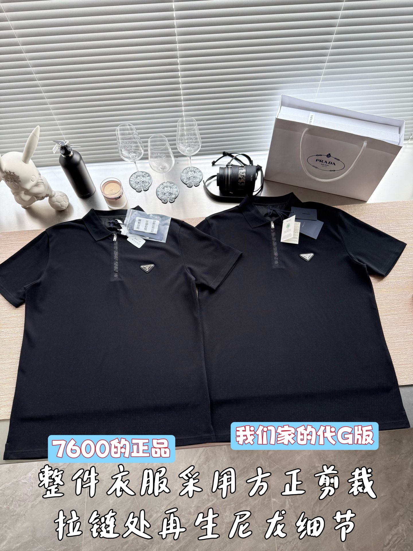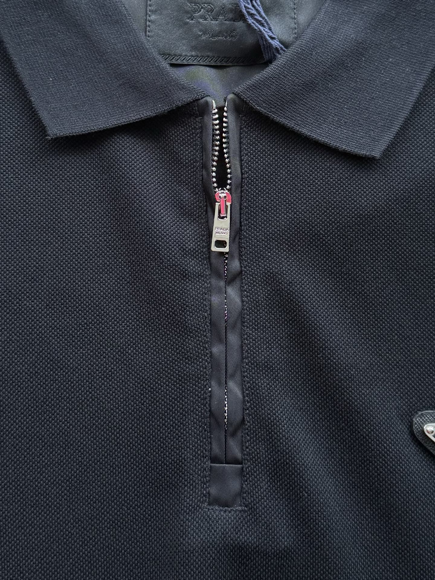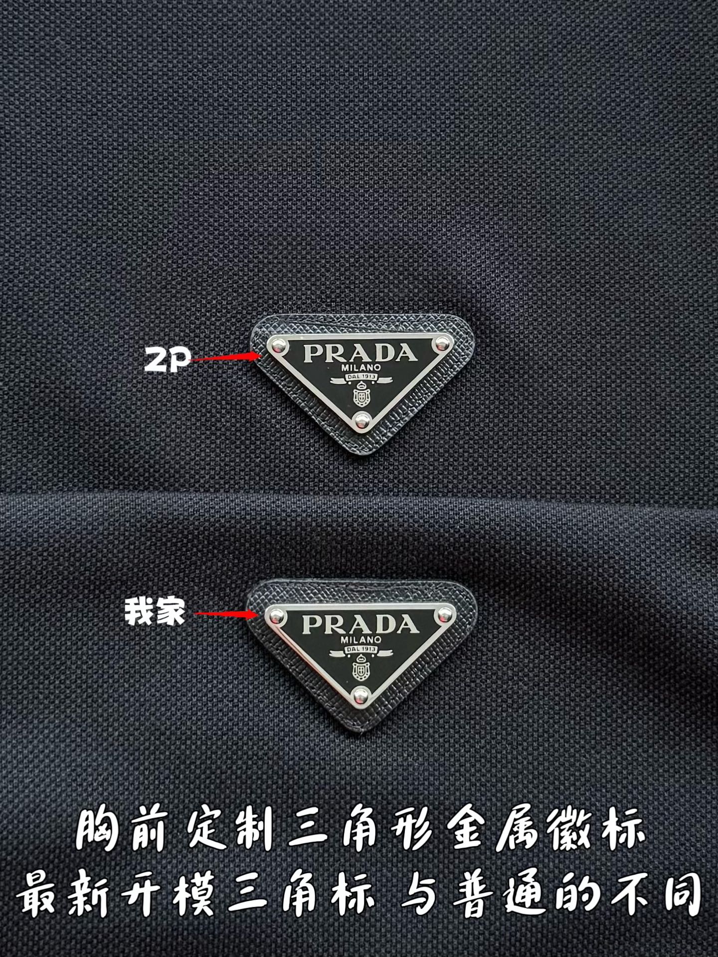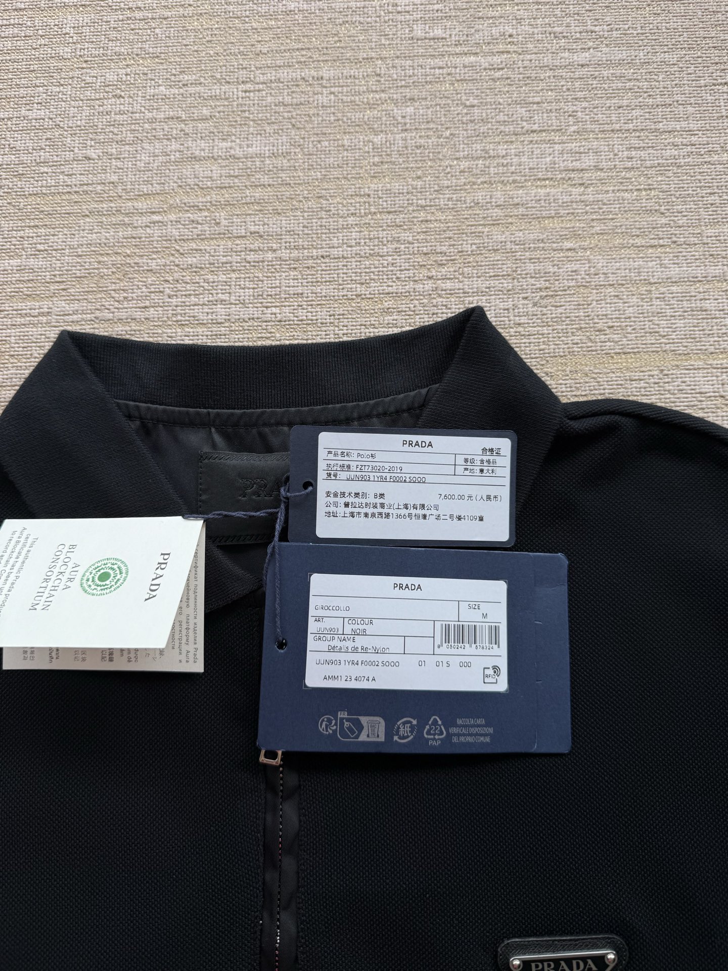 PRADA半拉链三角标polo衫‼️整件衣服7600购买ZP拆解打造,定制黑色珠地棉面料,做到100%全棉进口纱线,定制标志性罗纹polo领, 袖口 下摆双层高密度走线,开模定制字母logo拉链,拉链处采用再生尼龙面料,胸前开模定制最新三角标,真正做到1:1copy 闭眼入 码数:S M L XL