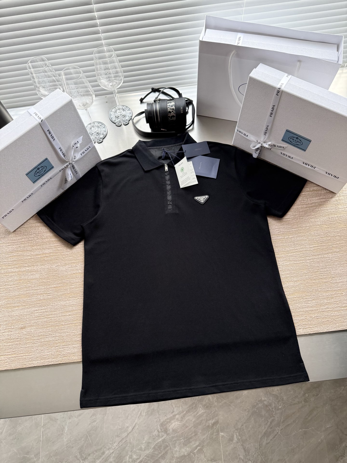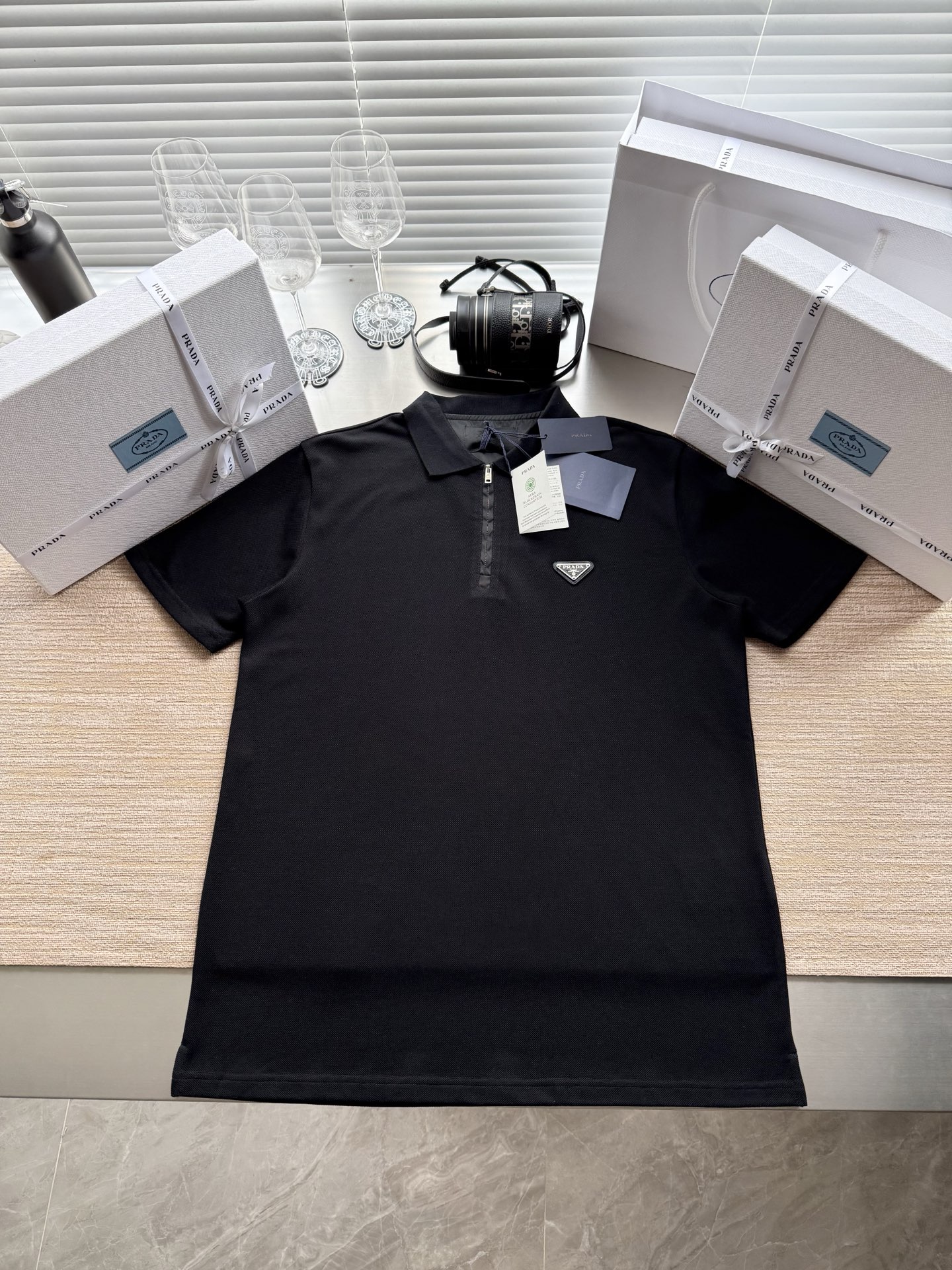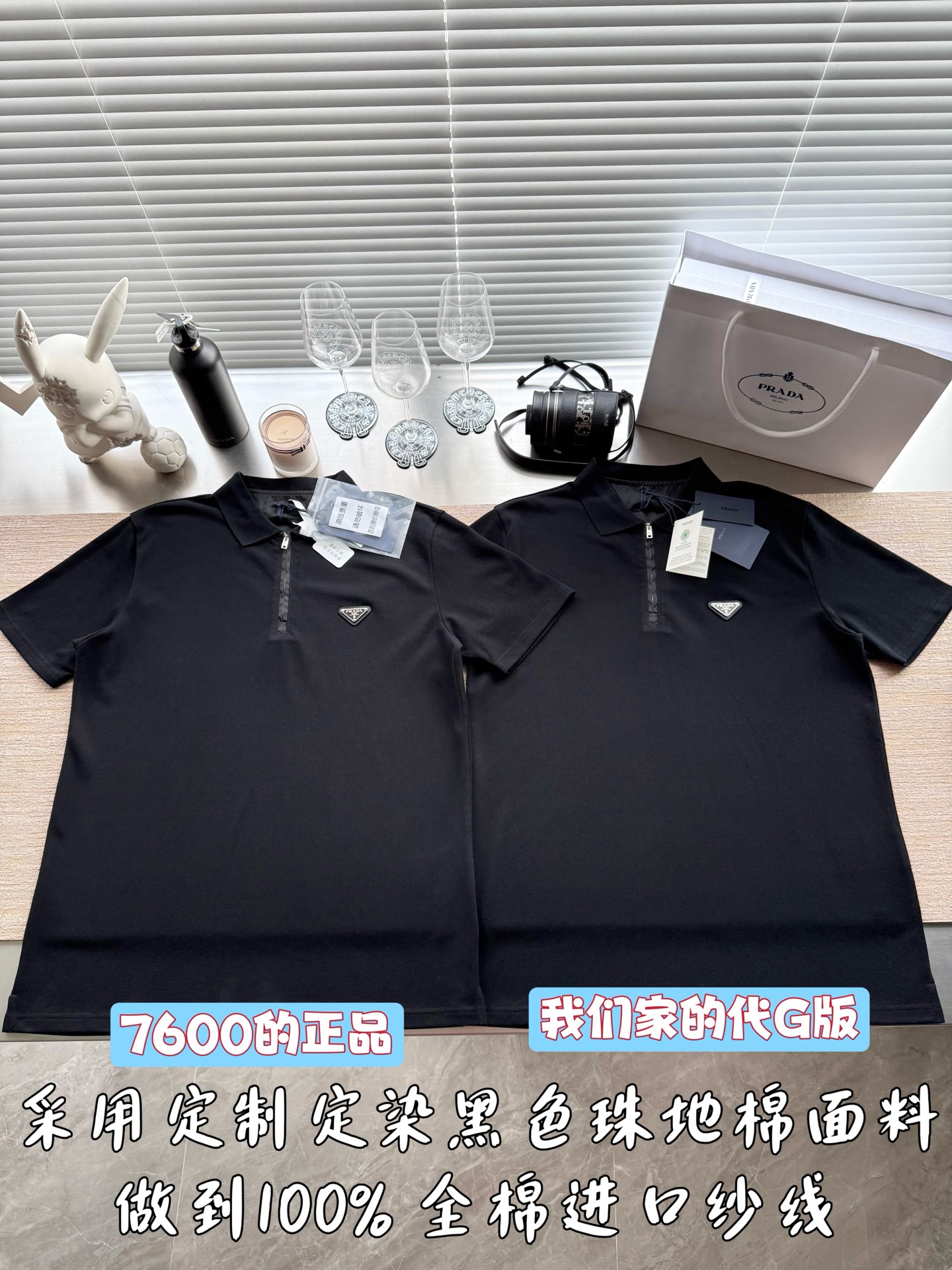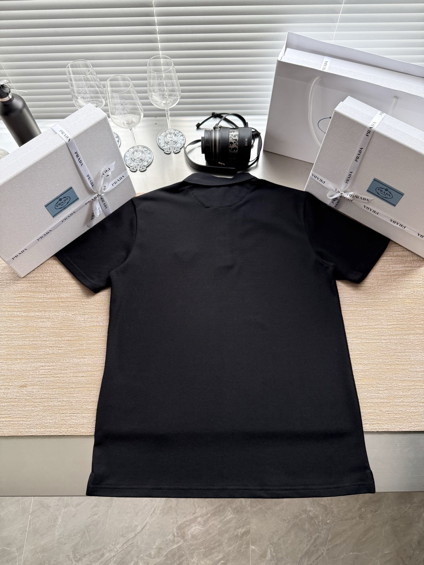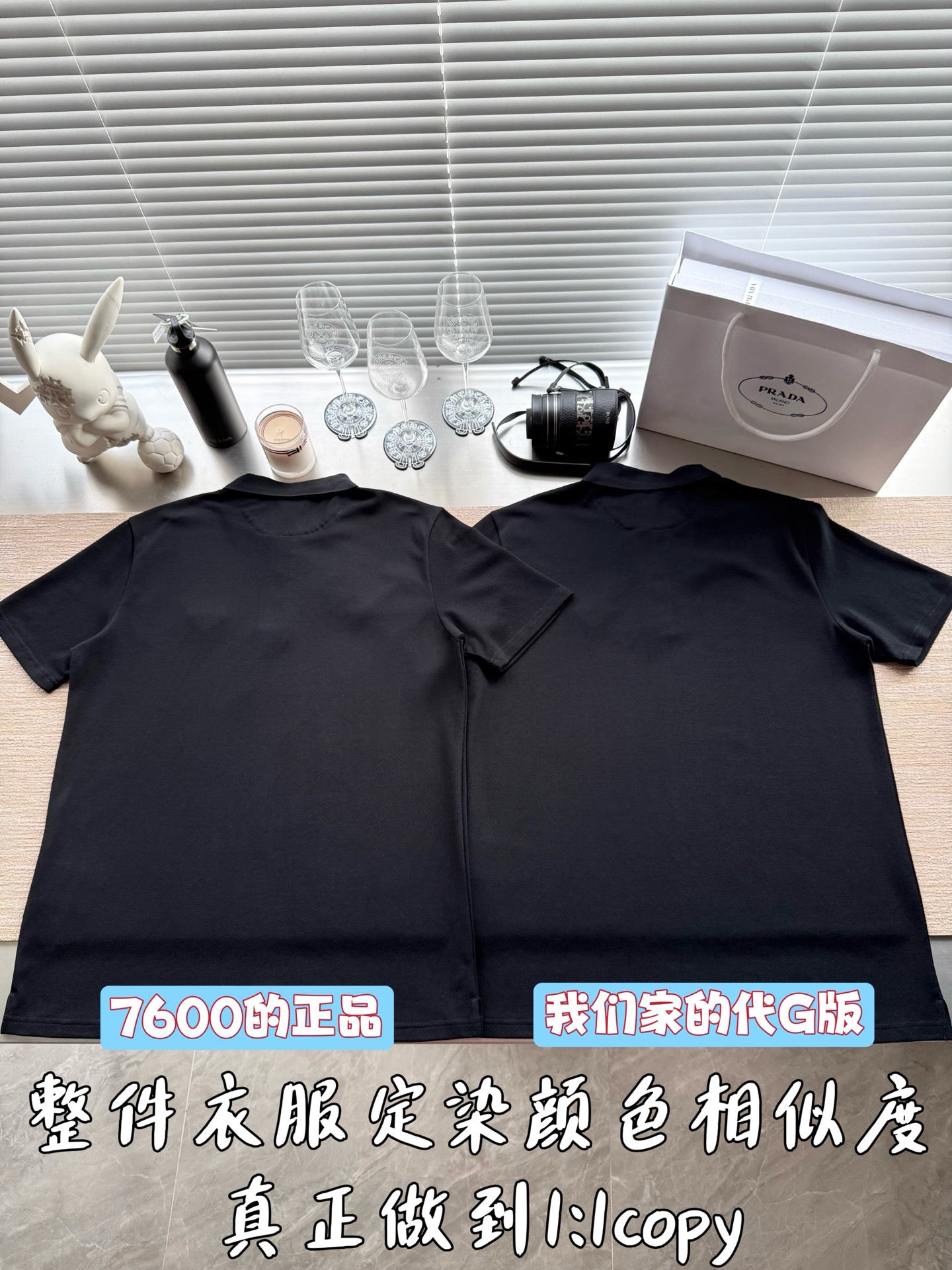 PRADA半拉链三角标polo衫‼️整件衣服7600购买ZP拆解打造,定制黑色珠地棉面料,做到100%全棉进口纱线,定制标志性罗纹polo领, 袖口 下摆双层高密度走线,开模定制字母logo拉链,拉链处采用再生尼龙面料,胸前开模定制最新三角标,真正做到1:1copy 闭眼入 码数:S M L XL