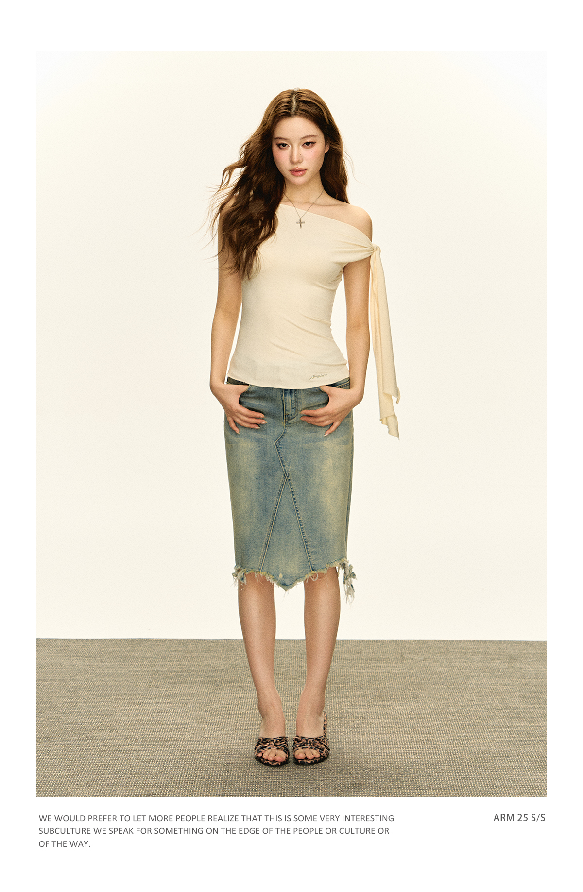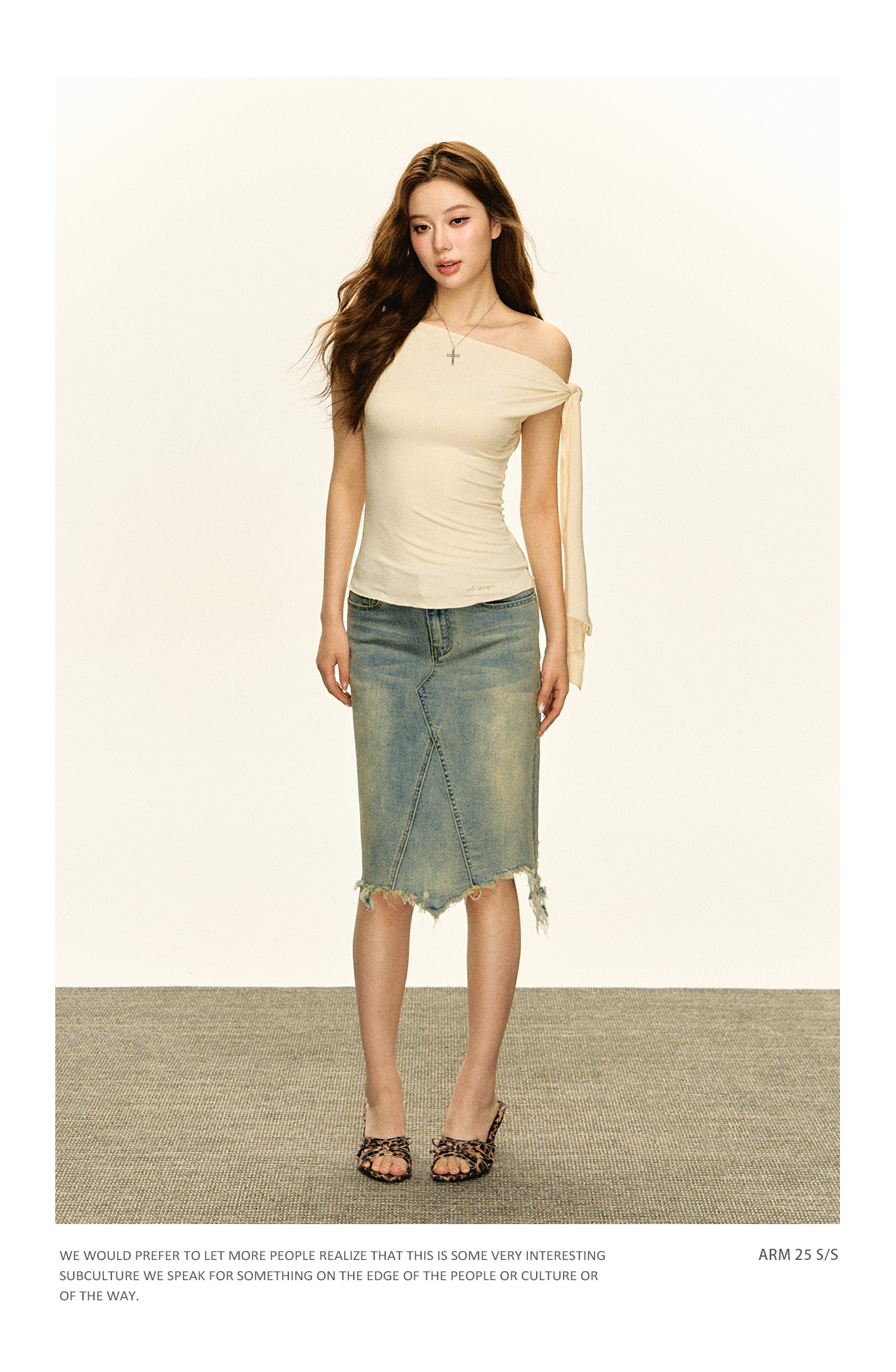 Ariseism 美式复古辣妹设计感露肩短袖T恤女2025夏季新款修身上衣