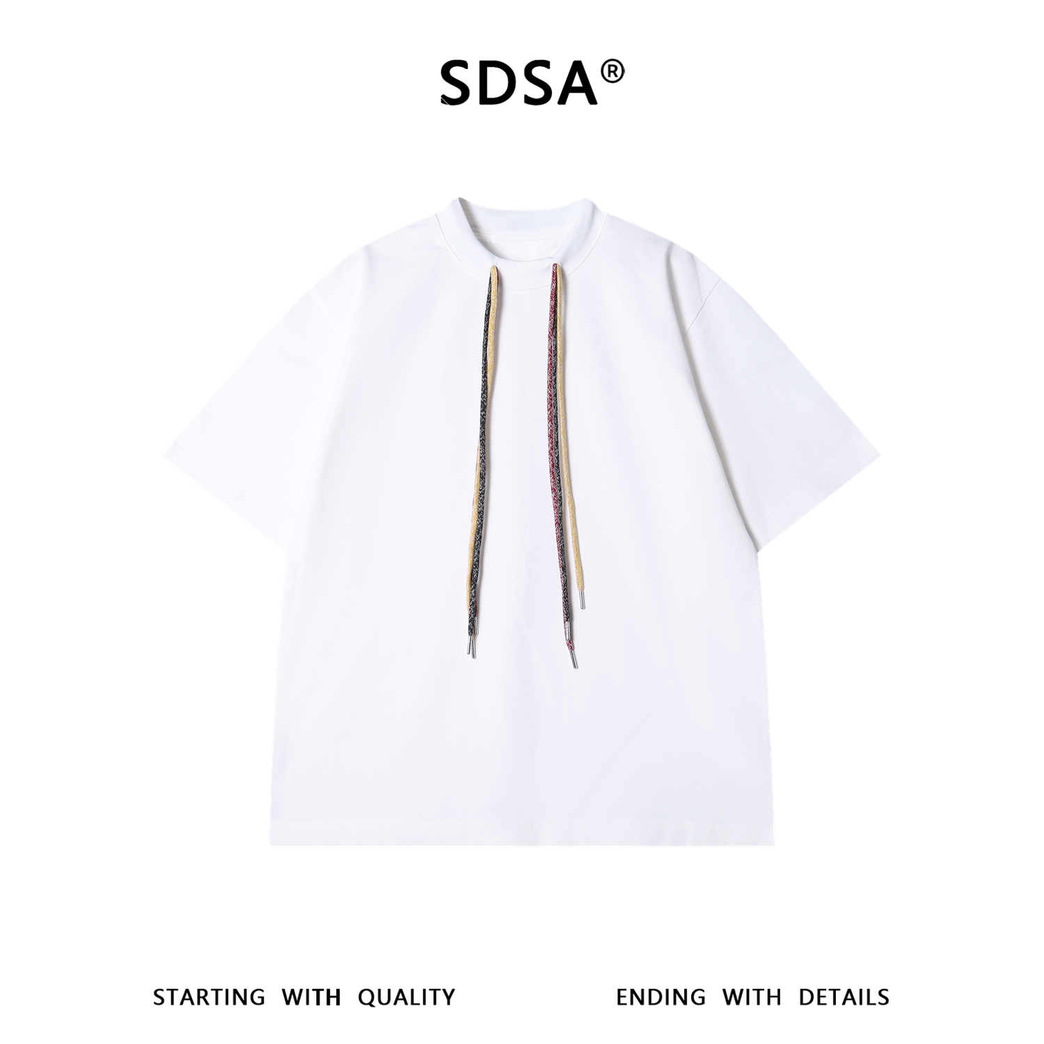 SDSA男装2026新款轻奢潮牌简约领口彩色编织抽绳圆领短袖T恤百搭