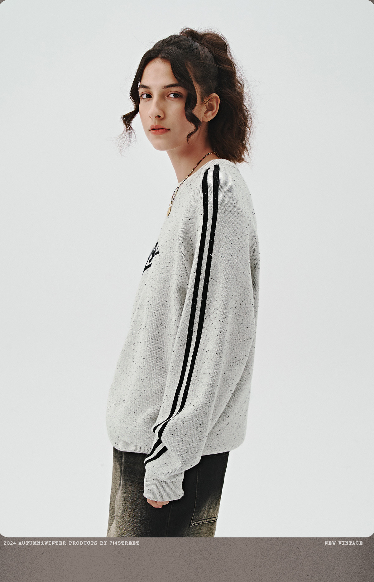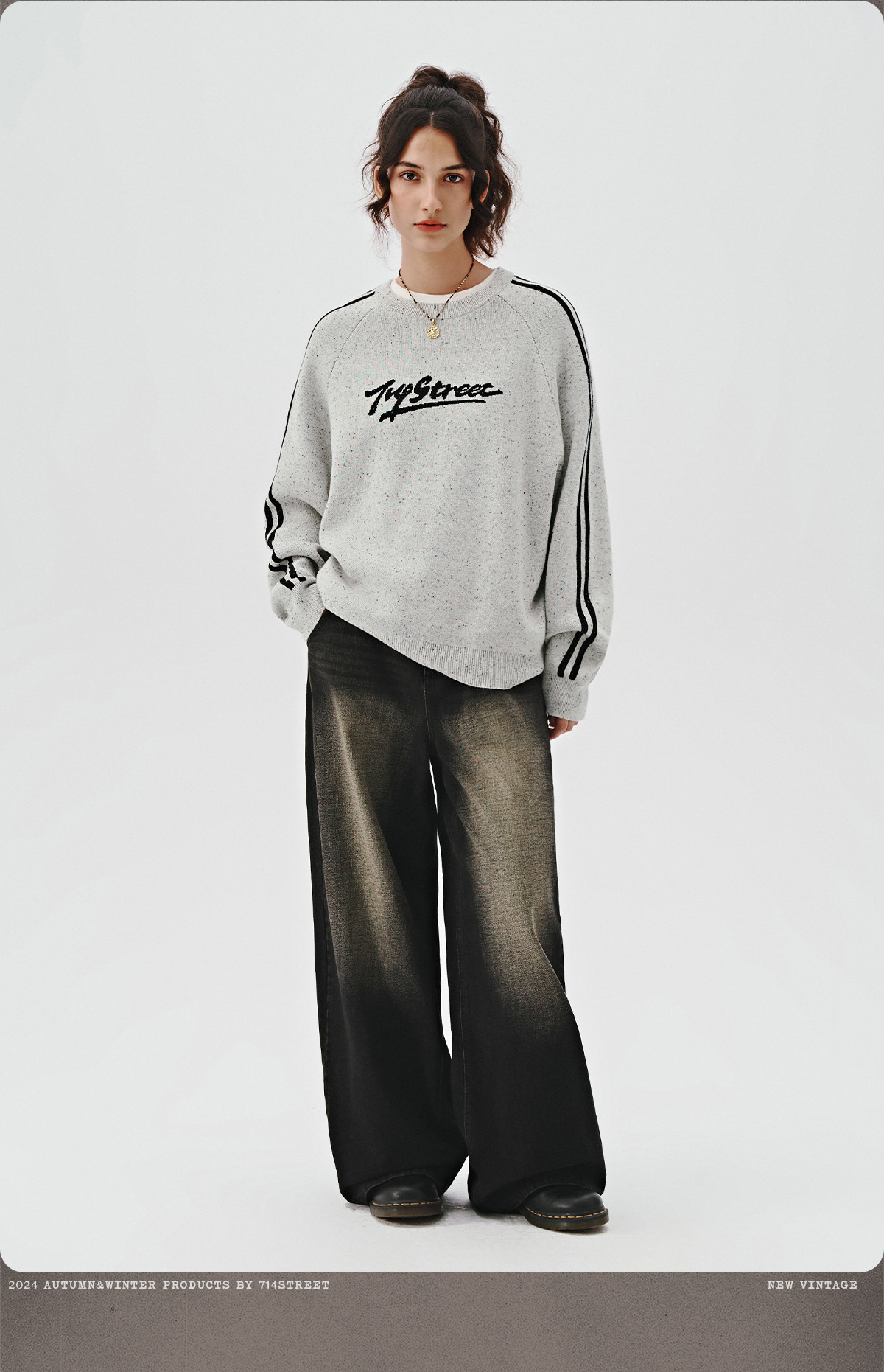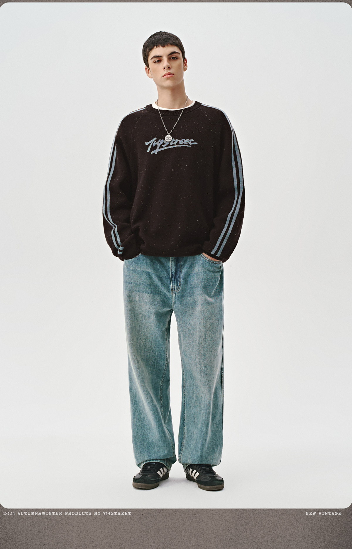 714street休闲logo提花套头毛衣男女秋冬新款情侣装宽松圆领卫衣