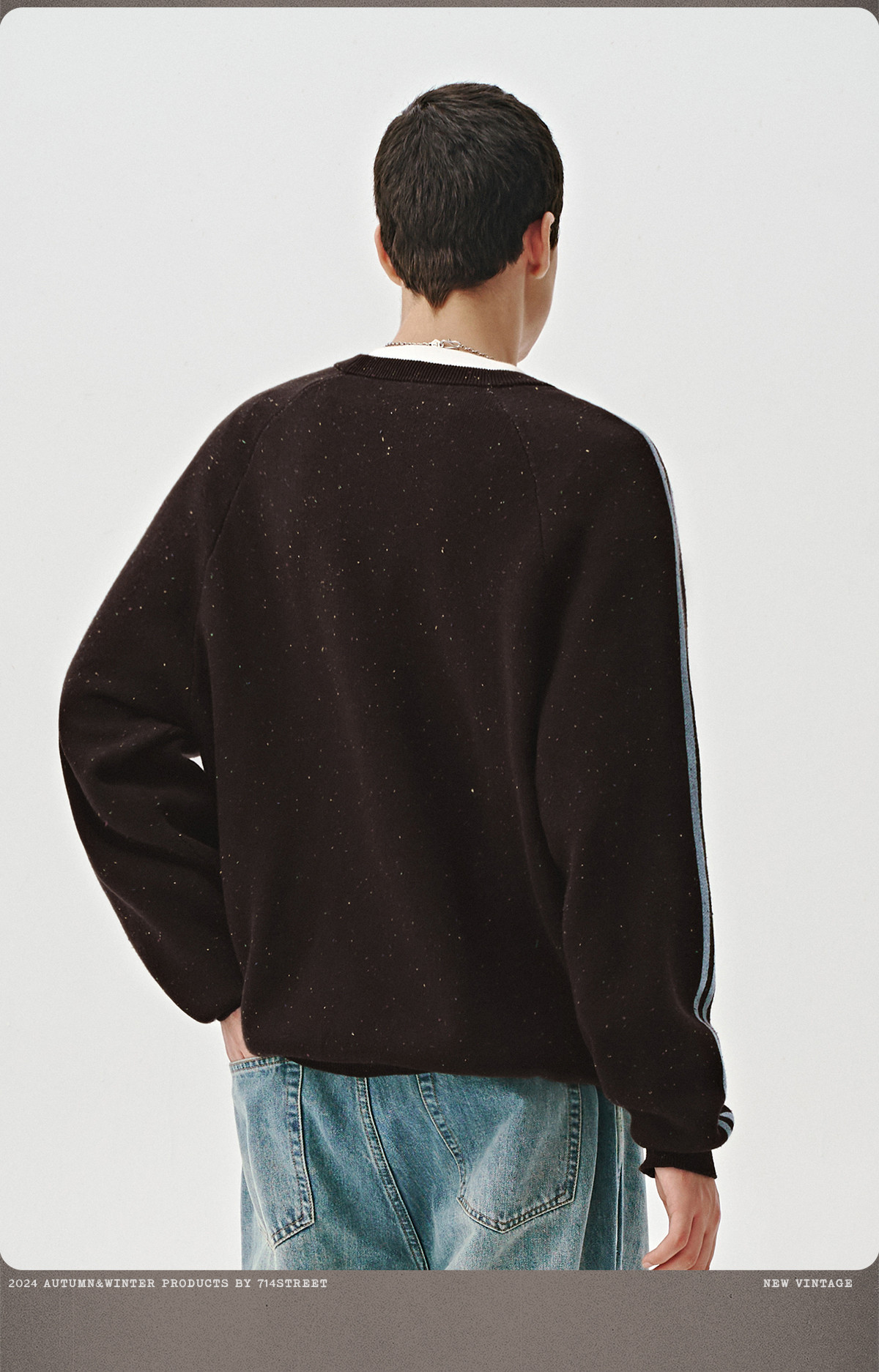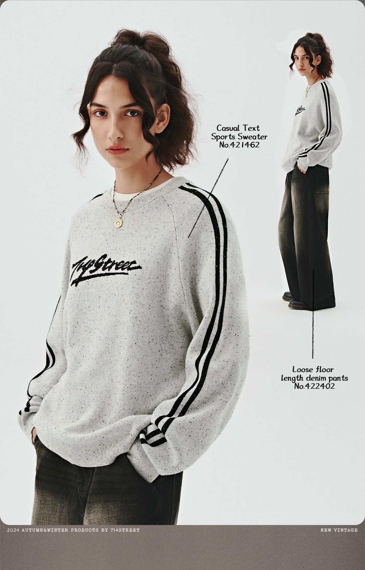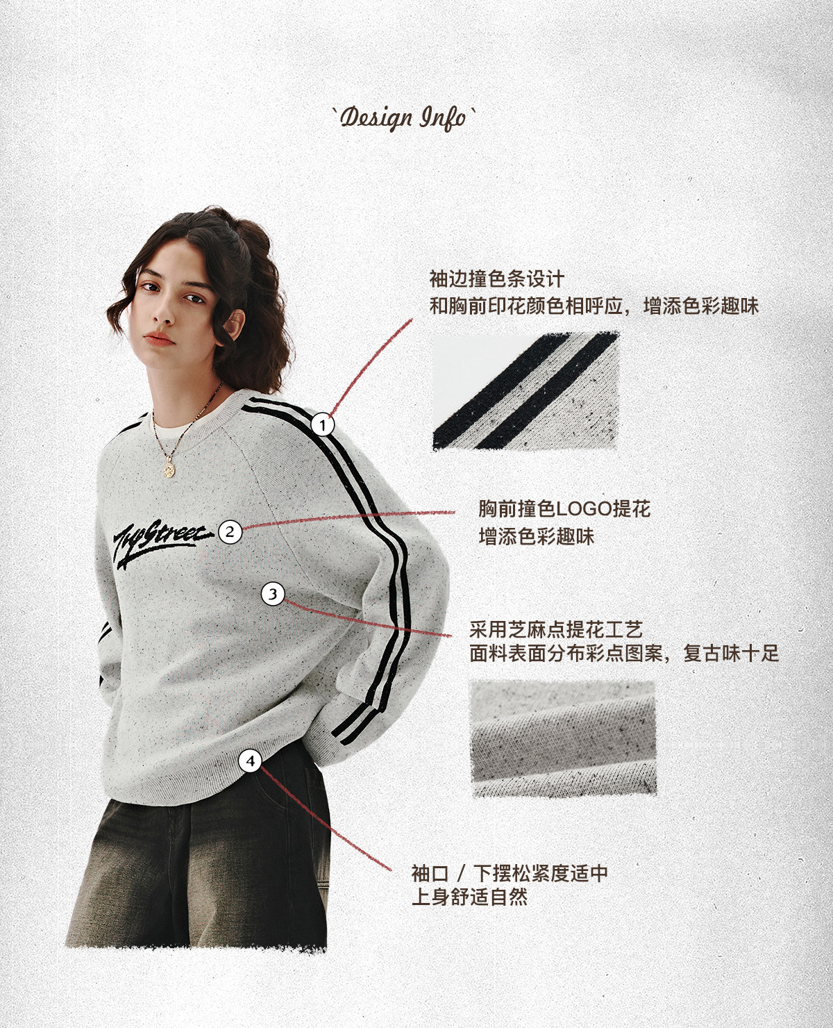 714street休闲logo提花套头毛衣男女秋冬新款情侣装宽松圆领卫衣