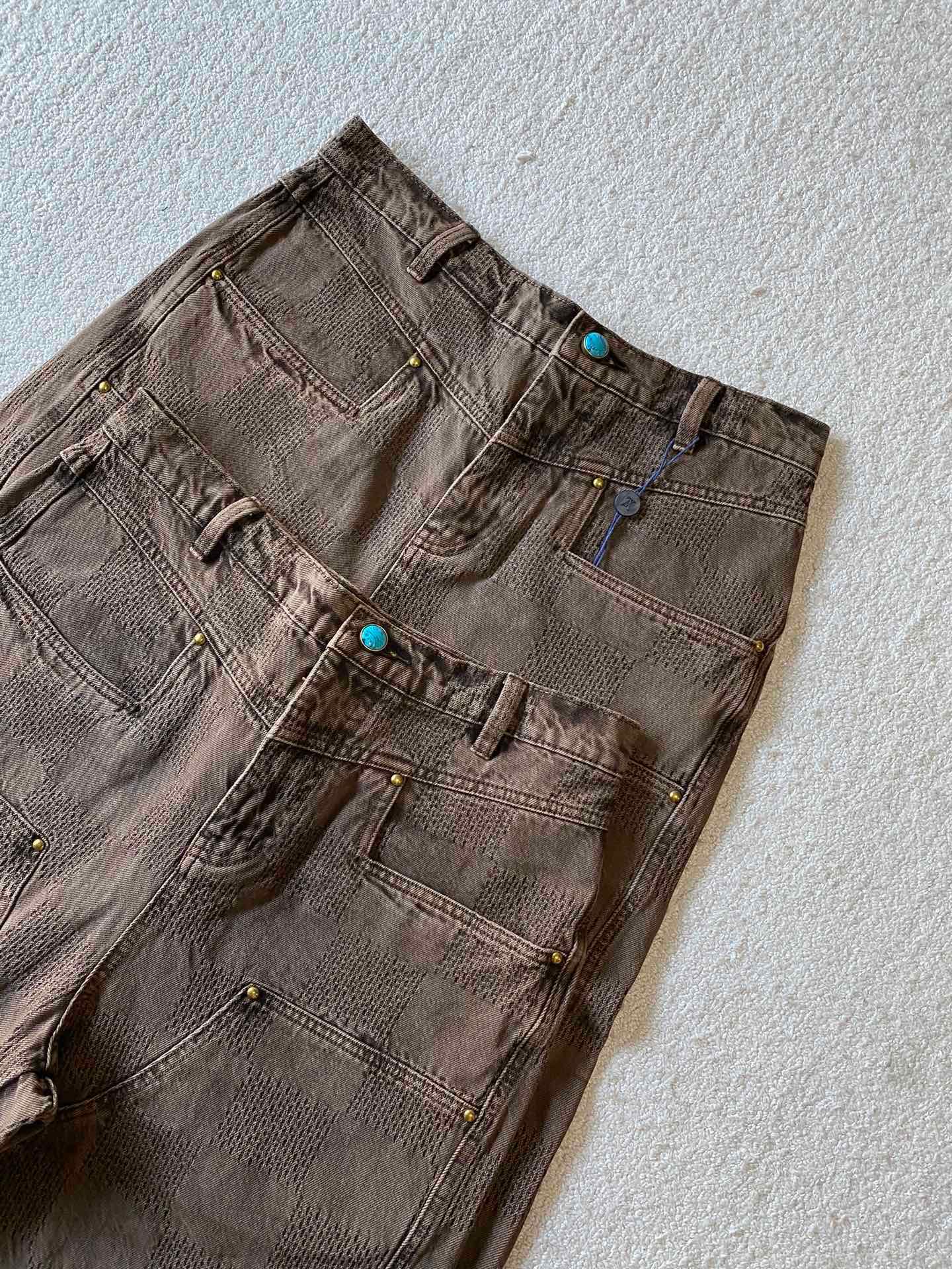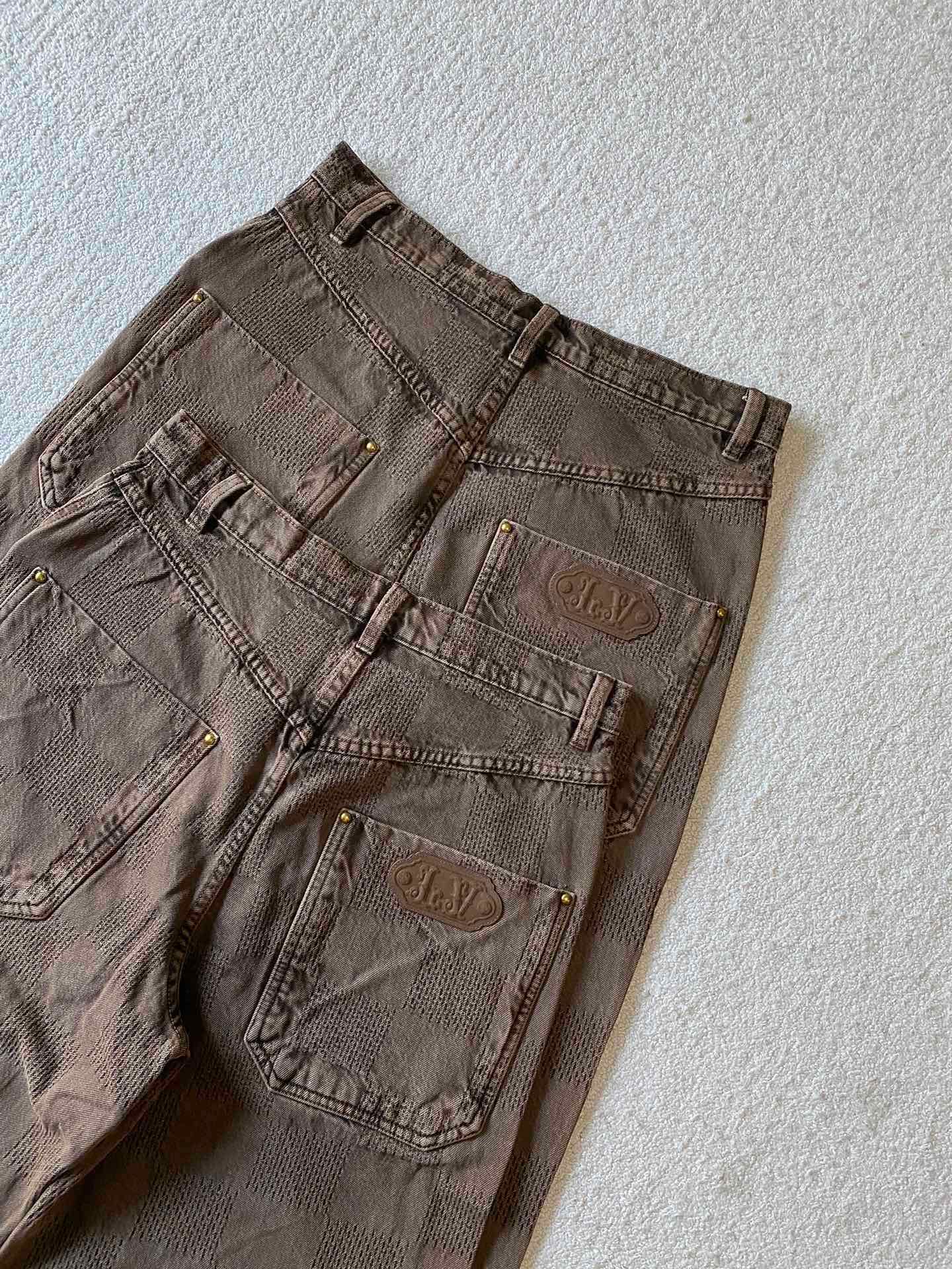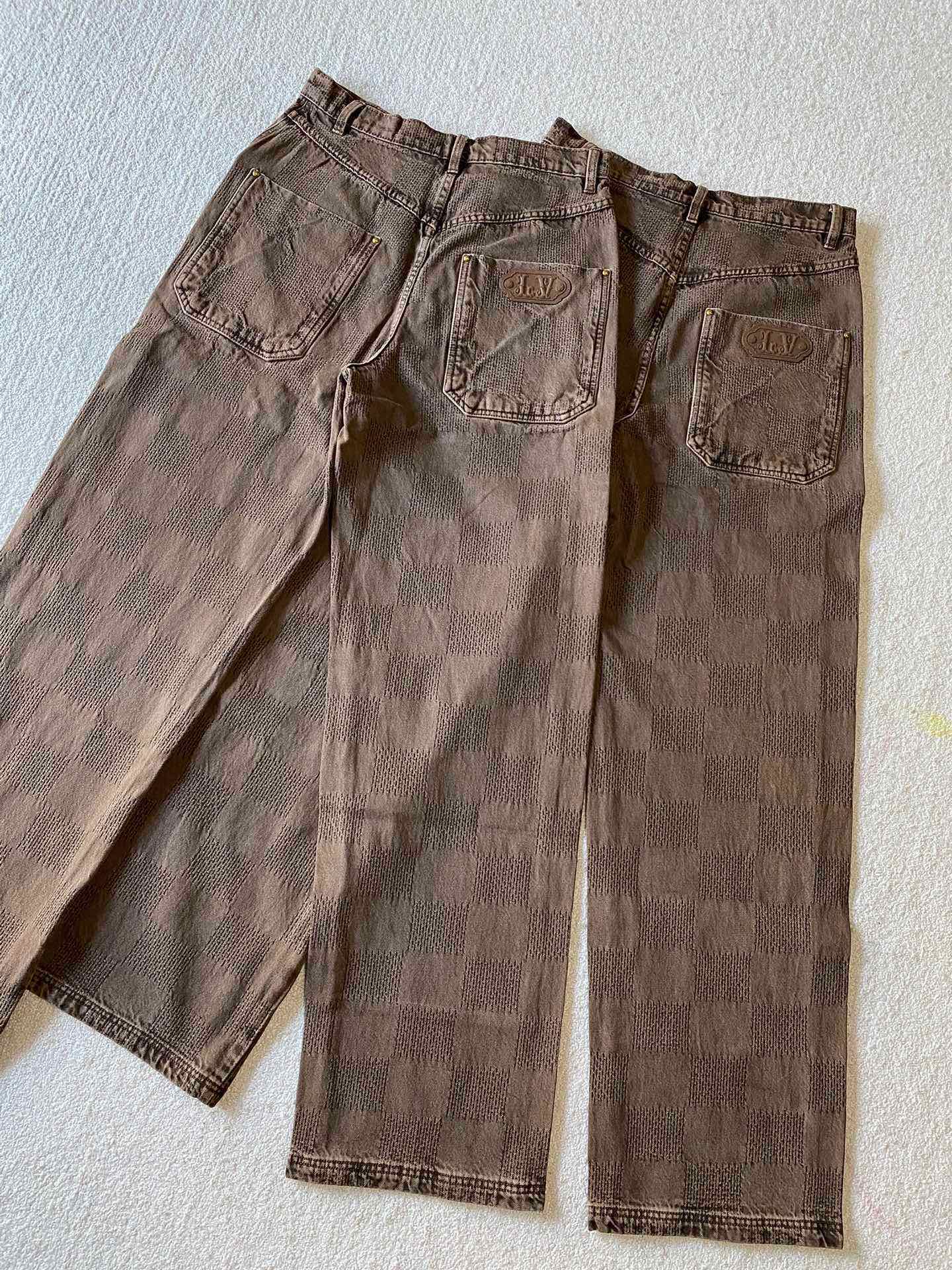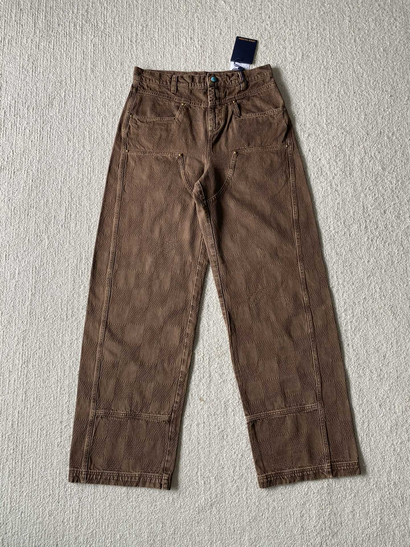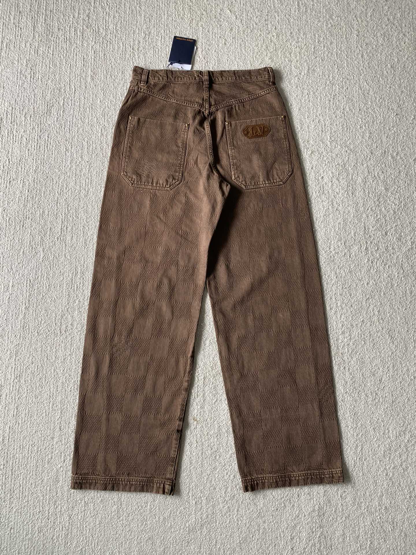 驴家 棕棋盘牛仔直筒长裤(JN)