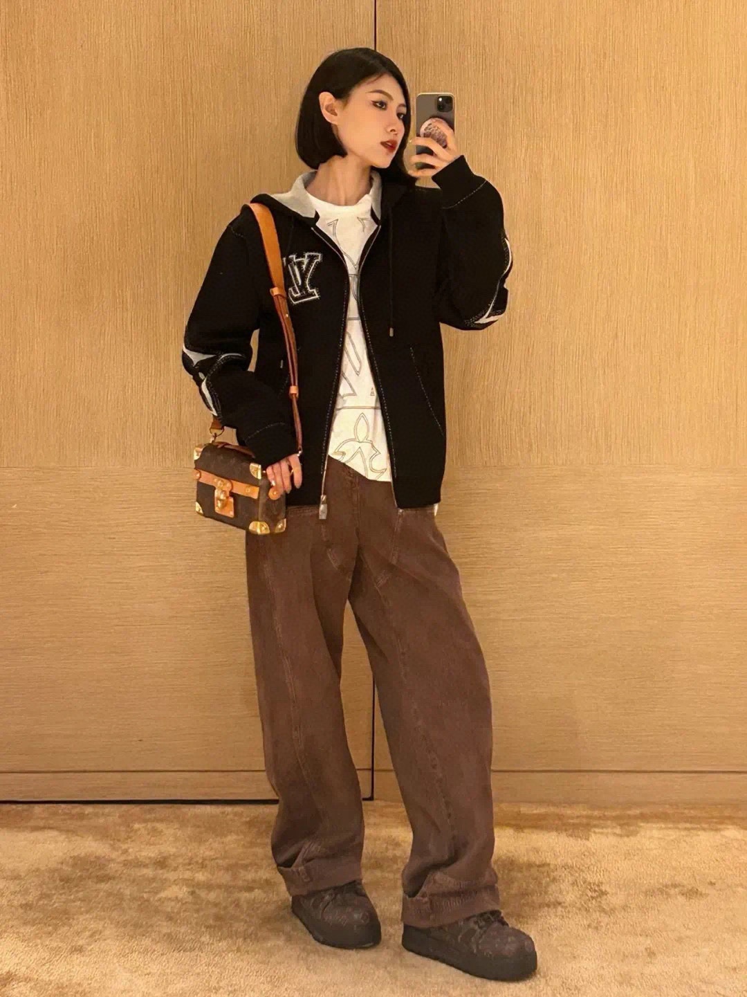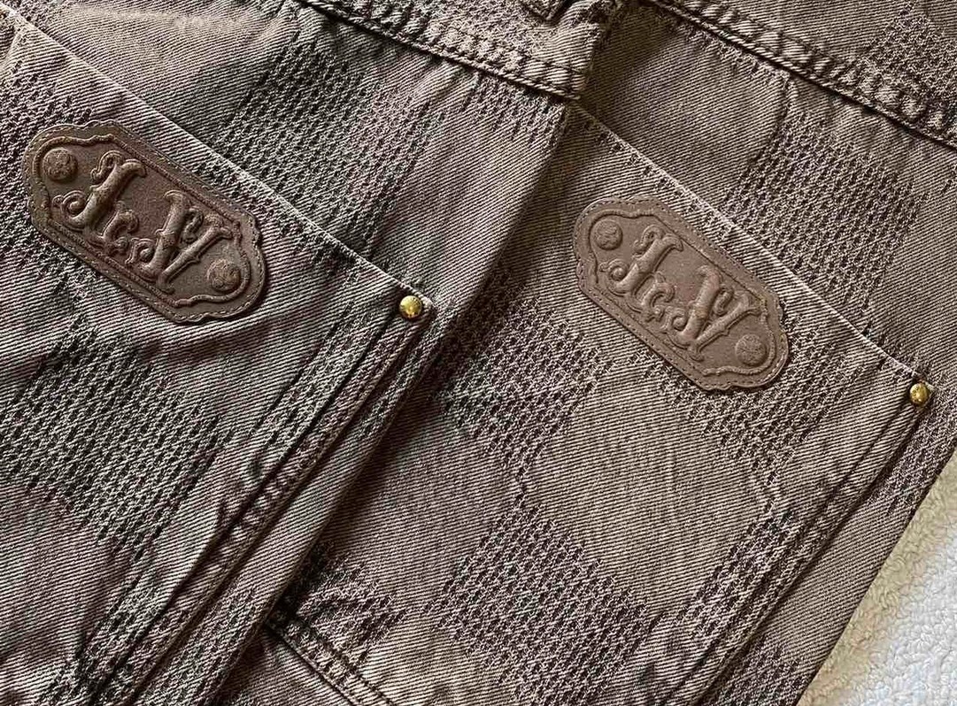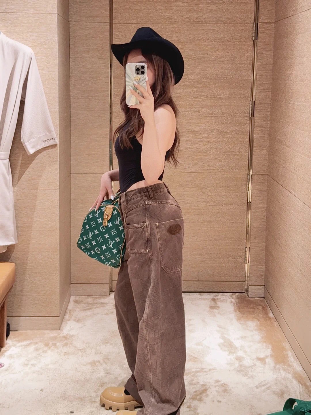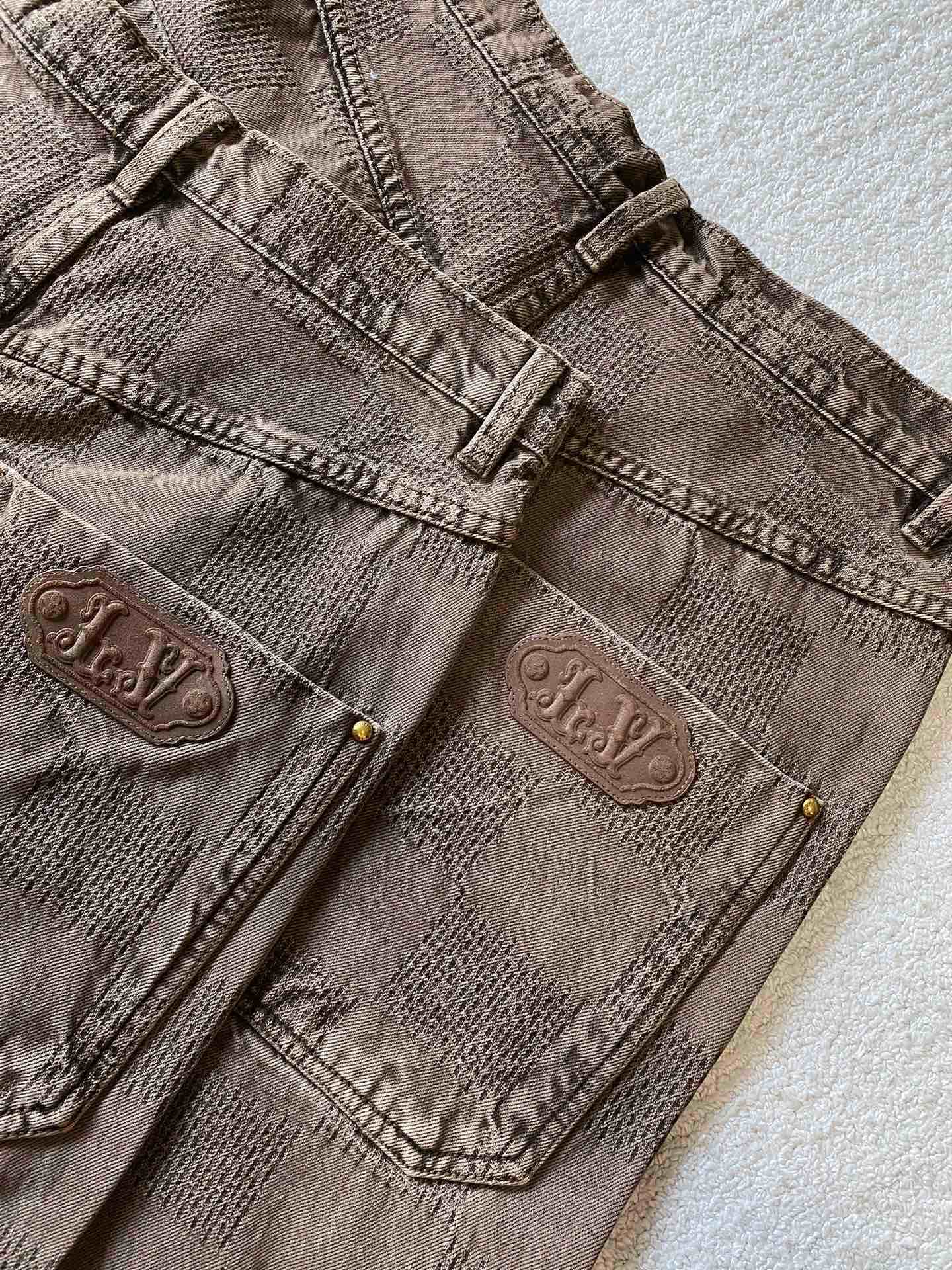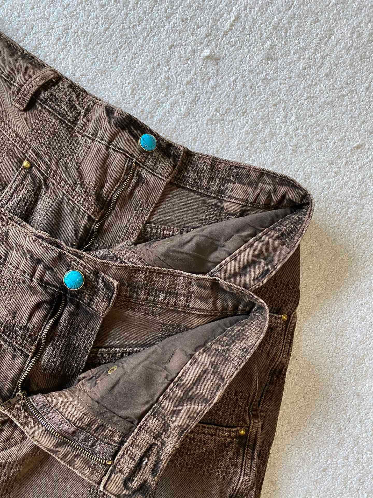 驴家 棕棋盘牛仔直筒长裤(JN)