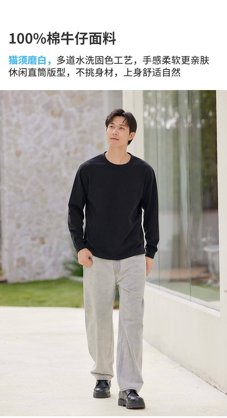 【门店同款】马恩MAXNEW2025秋新款复古水洗牛仔裤男弹力直筒长裤