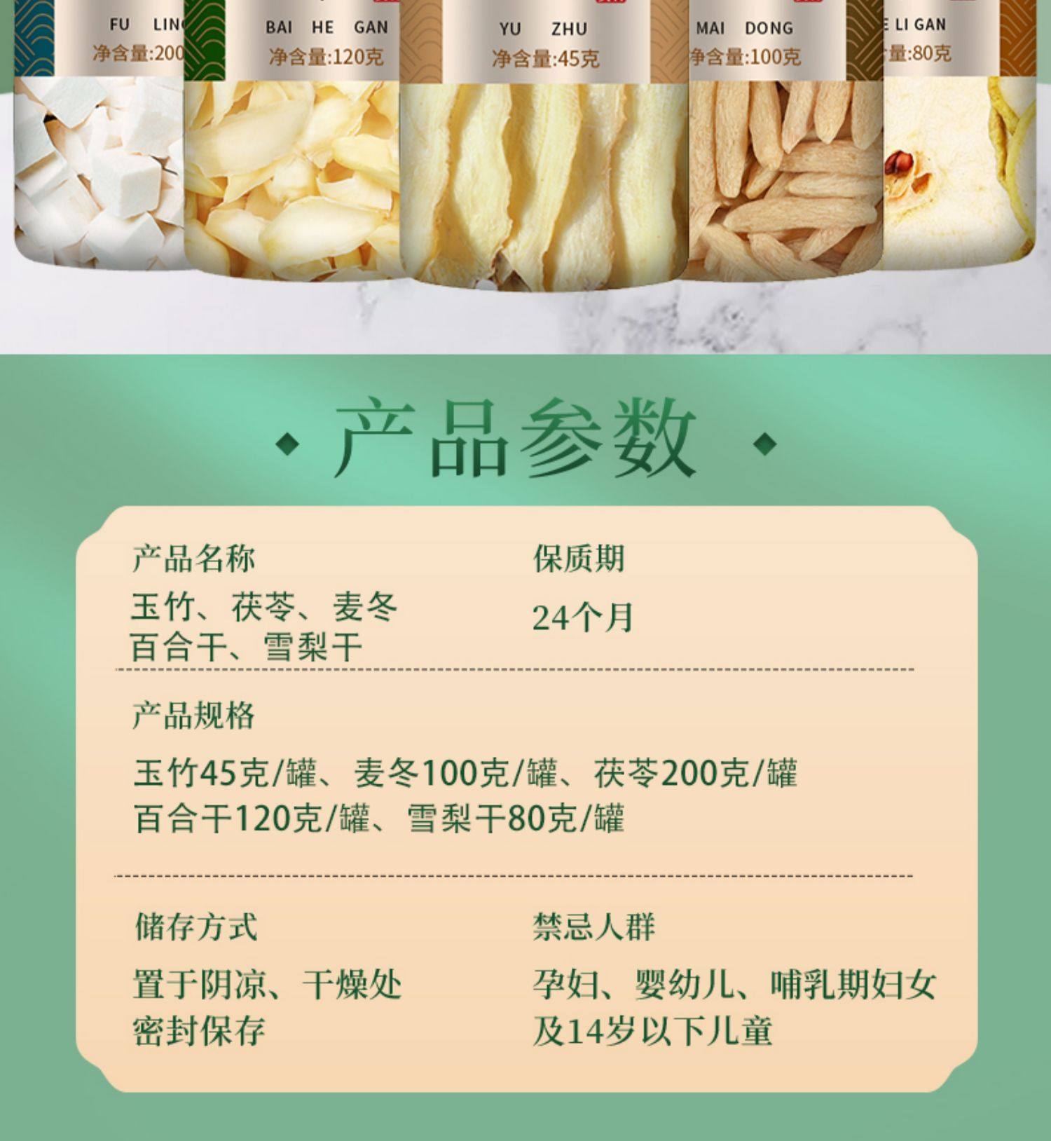 玉竹麦冬百合茯苓雪梨水中药材正品官方旗舰店干货500g特级泡水喝