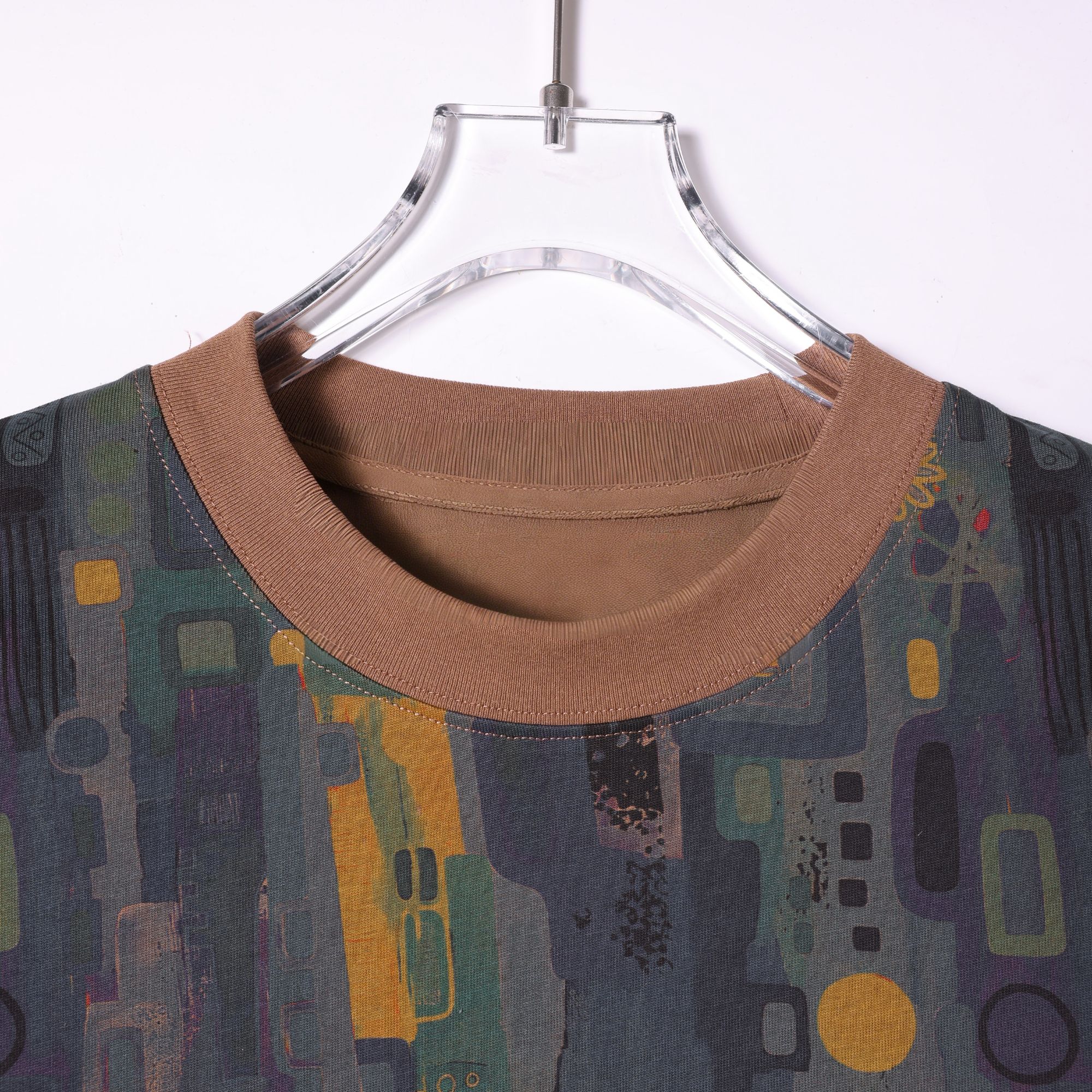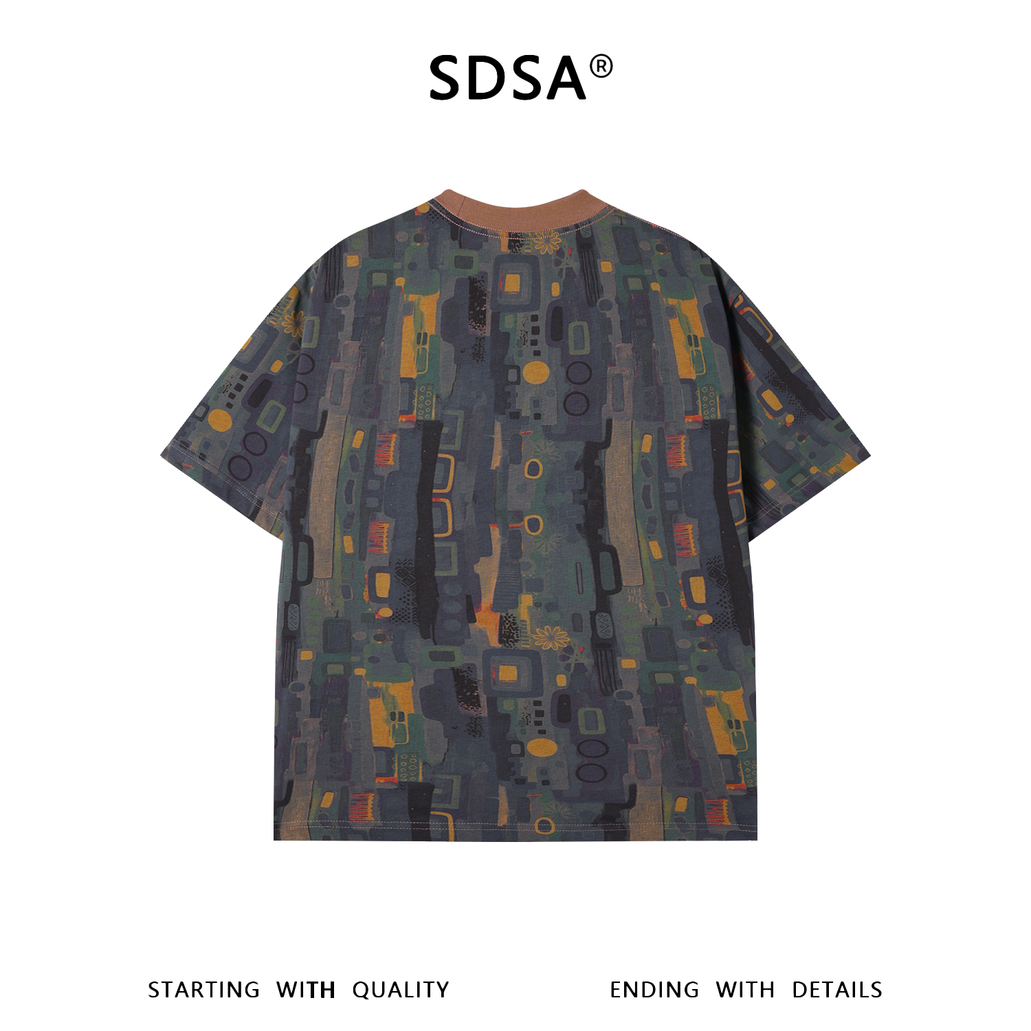 SDSA男装2026新款高贵轻奢抽象几何满印撞色圆领宽松短袖T恤百搭
