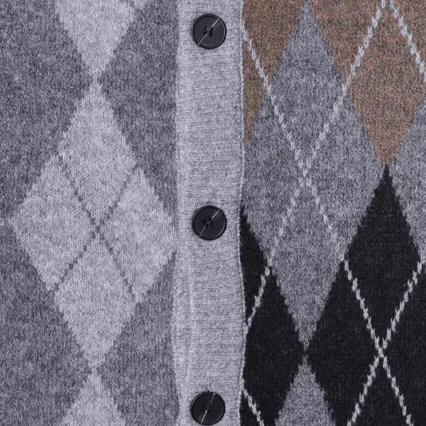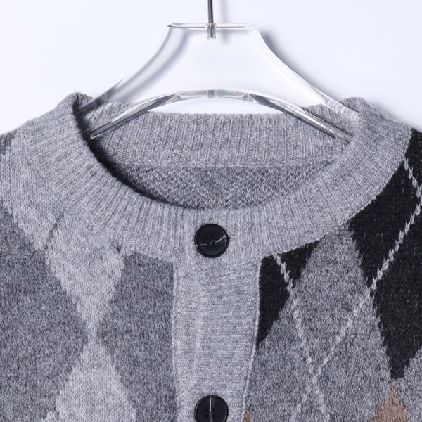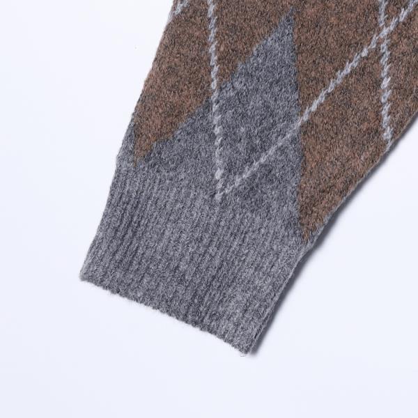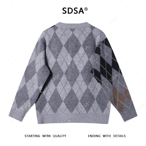 91302SDSA秋冬新款痞帅男装韩版撞色菱形格纽扣圆领毛衣百搭开衫针织衫