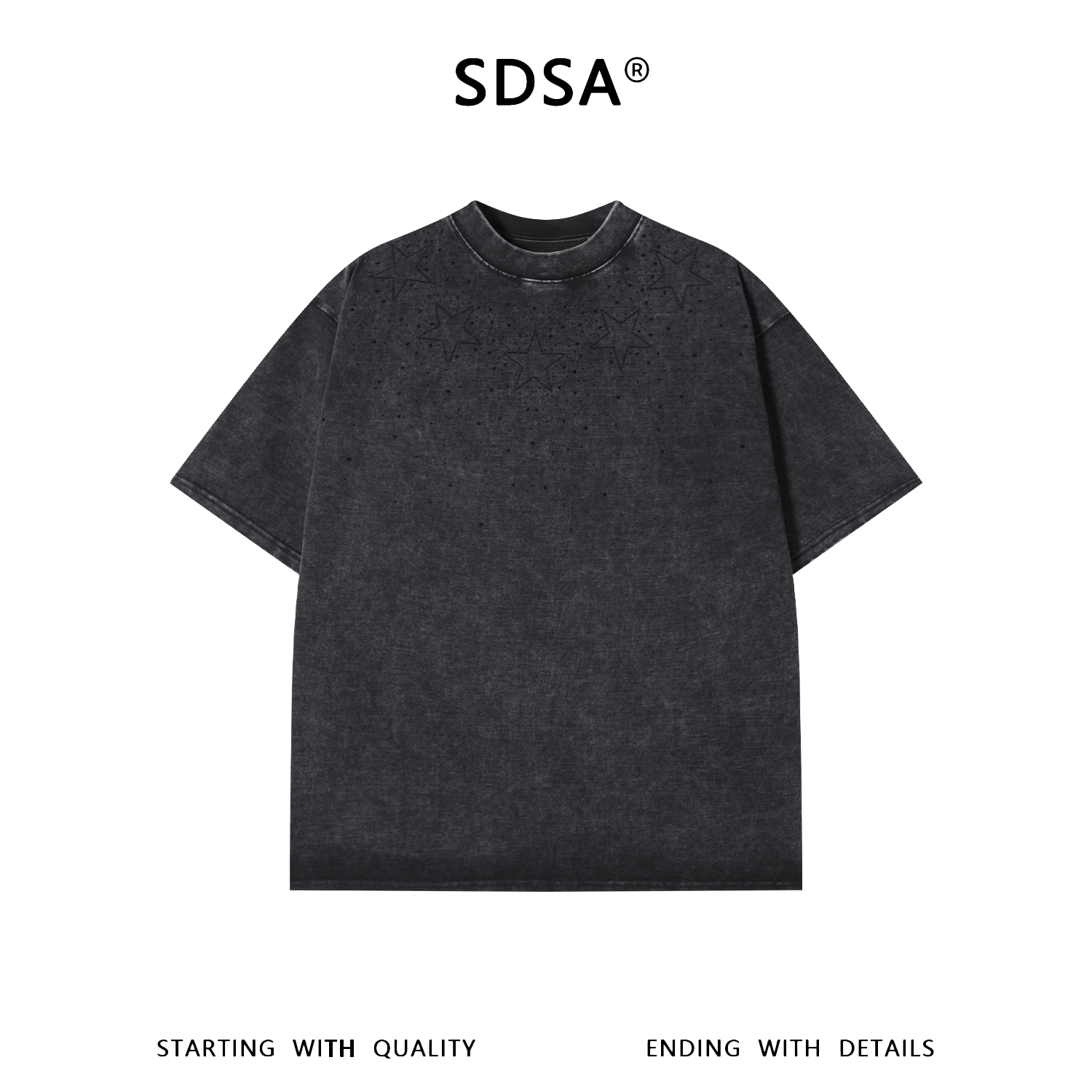SDSA男装2026新款高贵轻奢美式复古星星烫钻短袖宽松圆领 T 恤