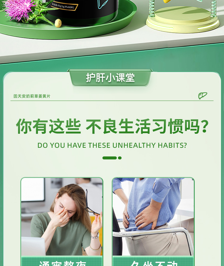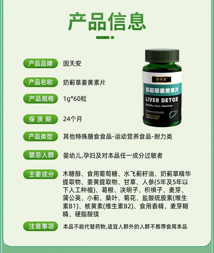 固天安奶蓟草姜黄素干肝片喝酒熬夜疲劳血压口苦臭眼涩干官方正品