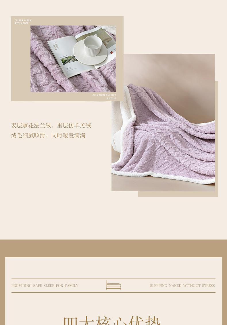 水星家纺 抚霞云舒 保暖加厚复合毯双面柔绒羊羔绒毛毯