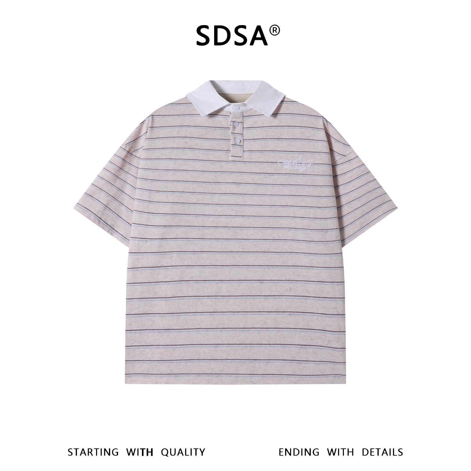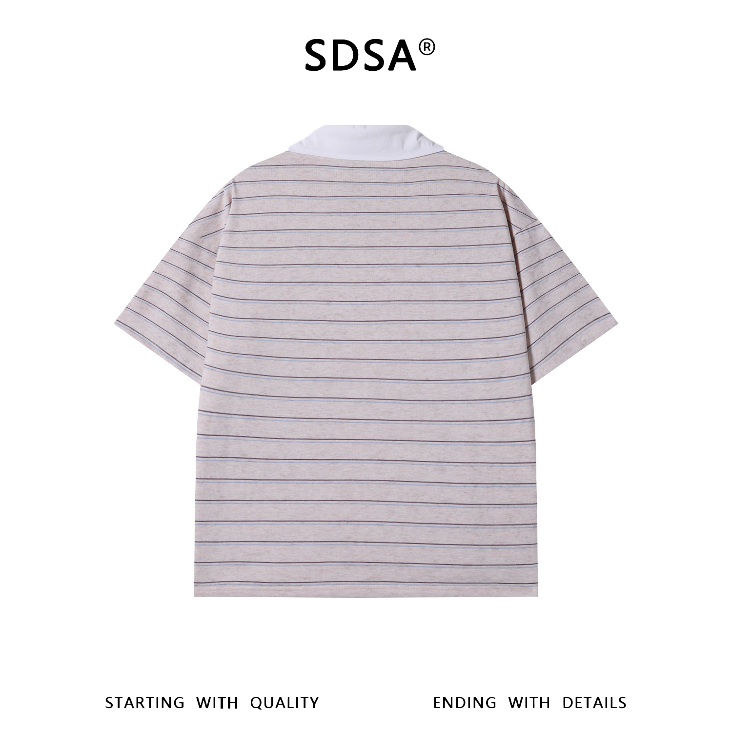 SDSA男装2026新款高贵轻奢韩系撞色条纹刺绣字母翻领短袖T恤百搭