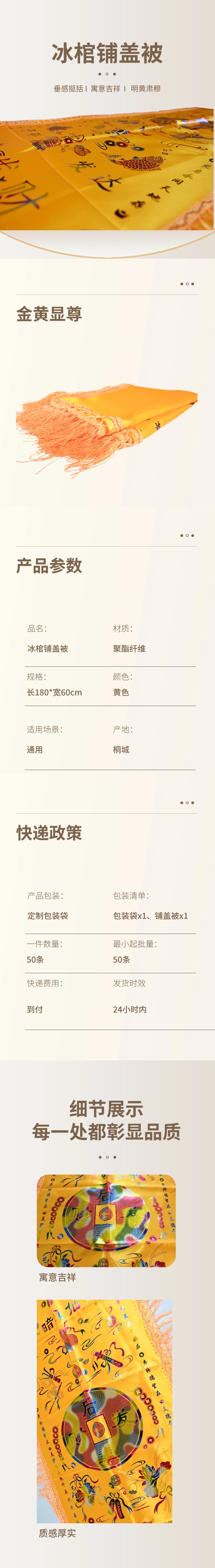 冰棺铺盖被黄色垂感挺括寓意吉祥明黄肃穆