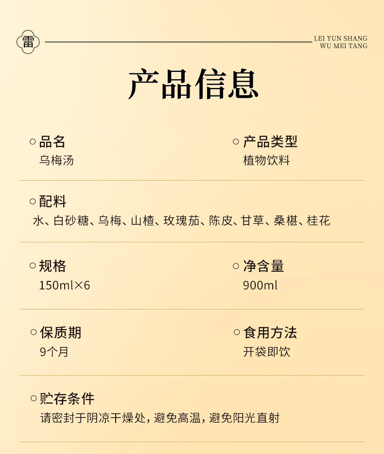 雷允上养悦心乌梅汤900g(150g*6包)/袋
