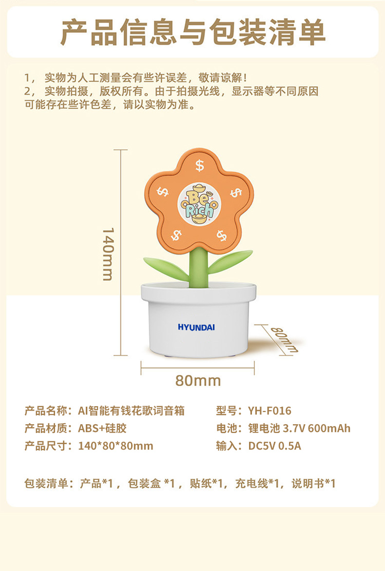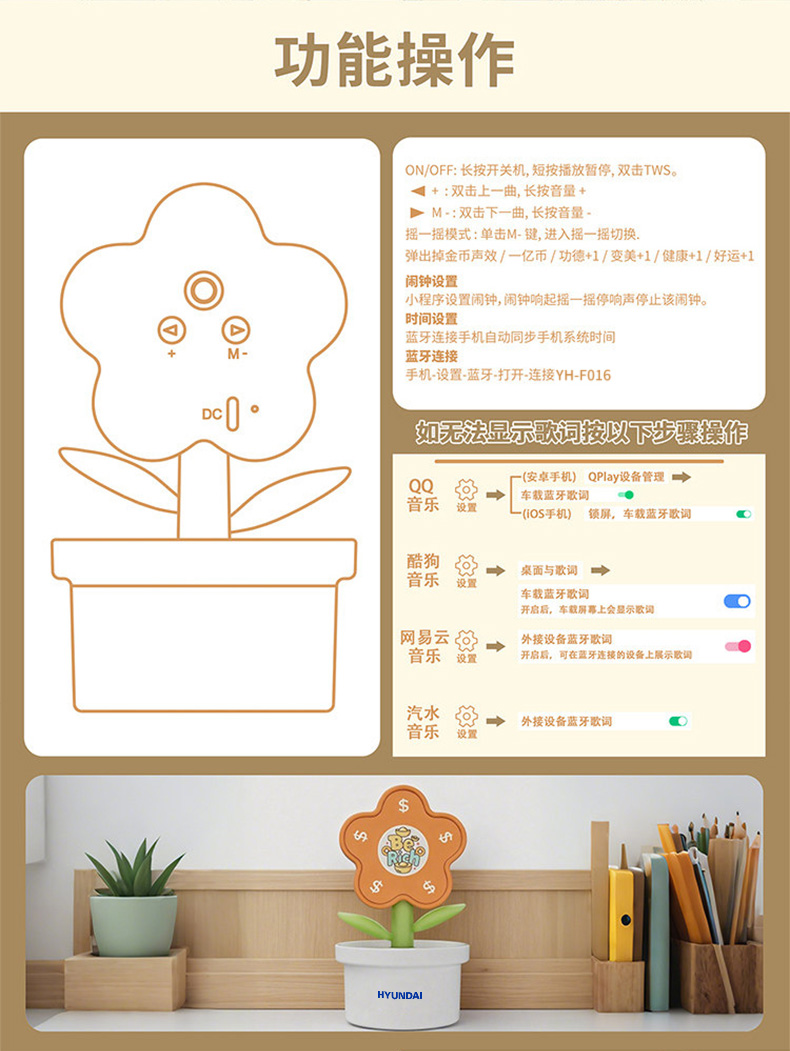 HYUNDAI Ai智能有钱花歌词音箱 YH-F016