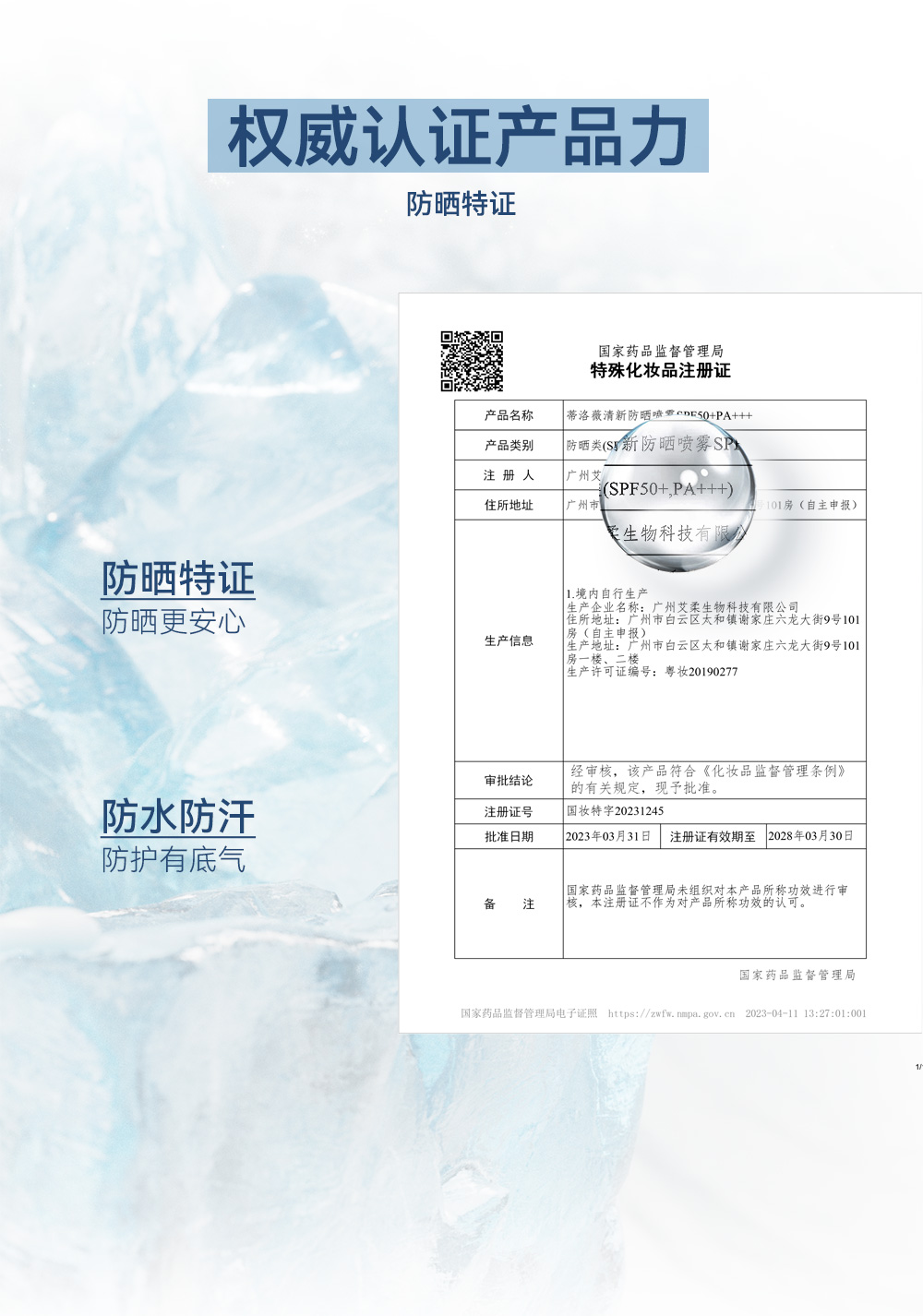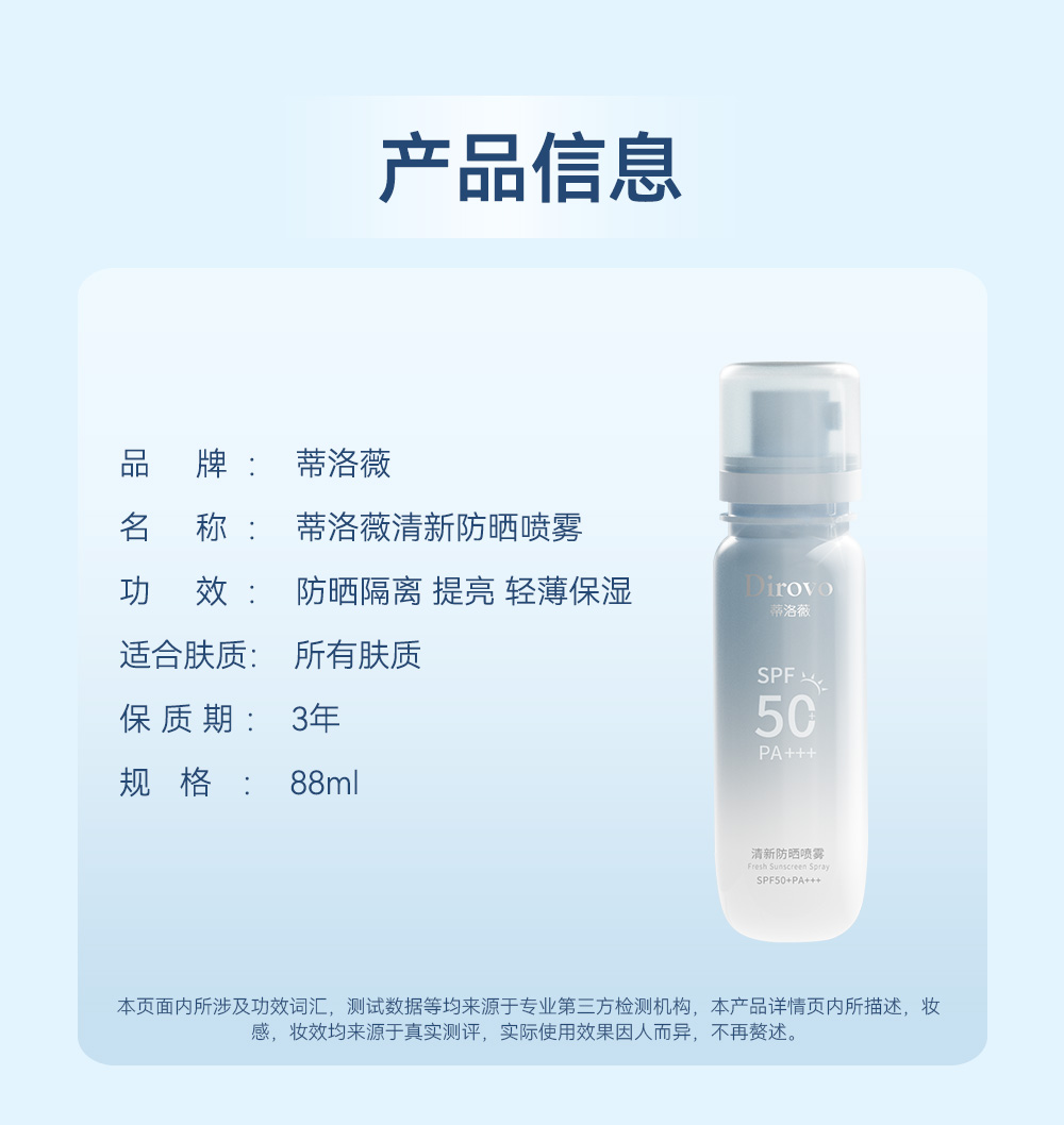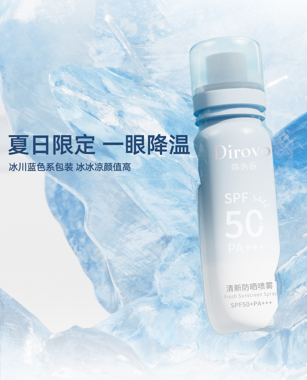 【冰川限定】蒂洛薇清新防晒喷雾SPF50+,PA+++