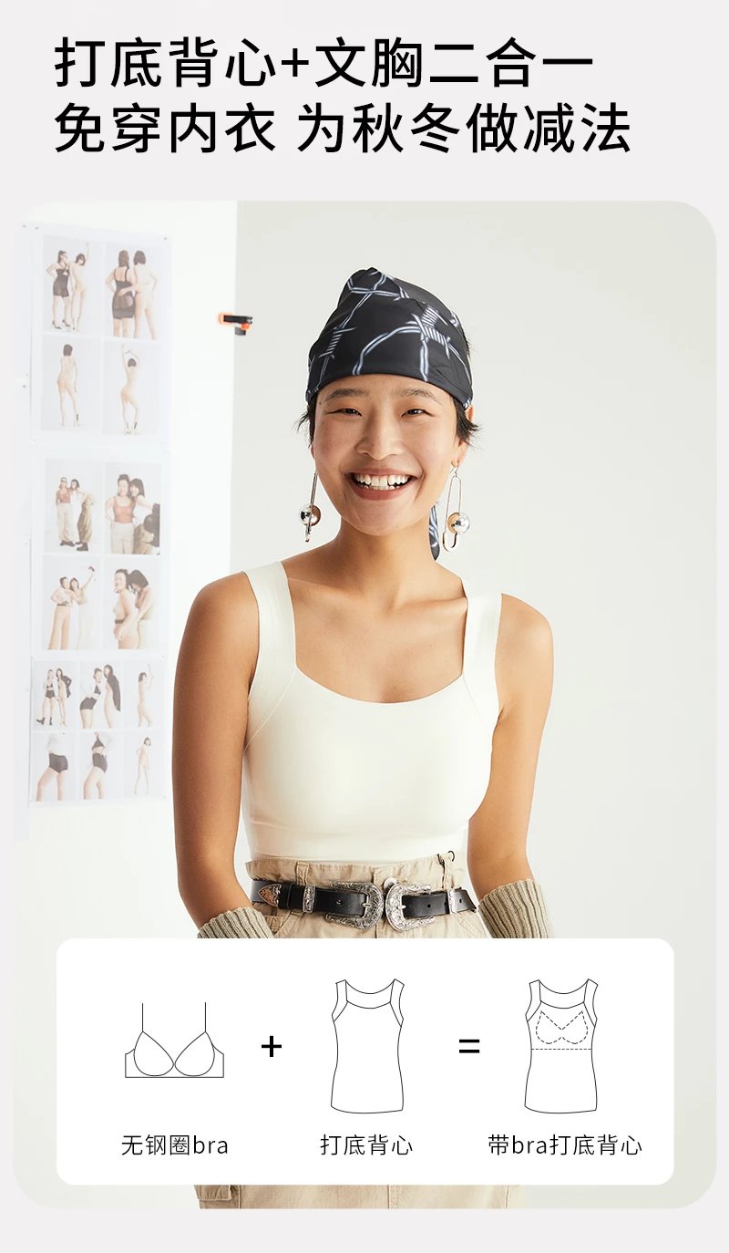 半醒经典打底背心女一体带胸垫显瘦保暖内衣外穿贴身无痕文胸