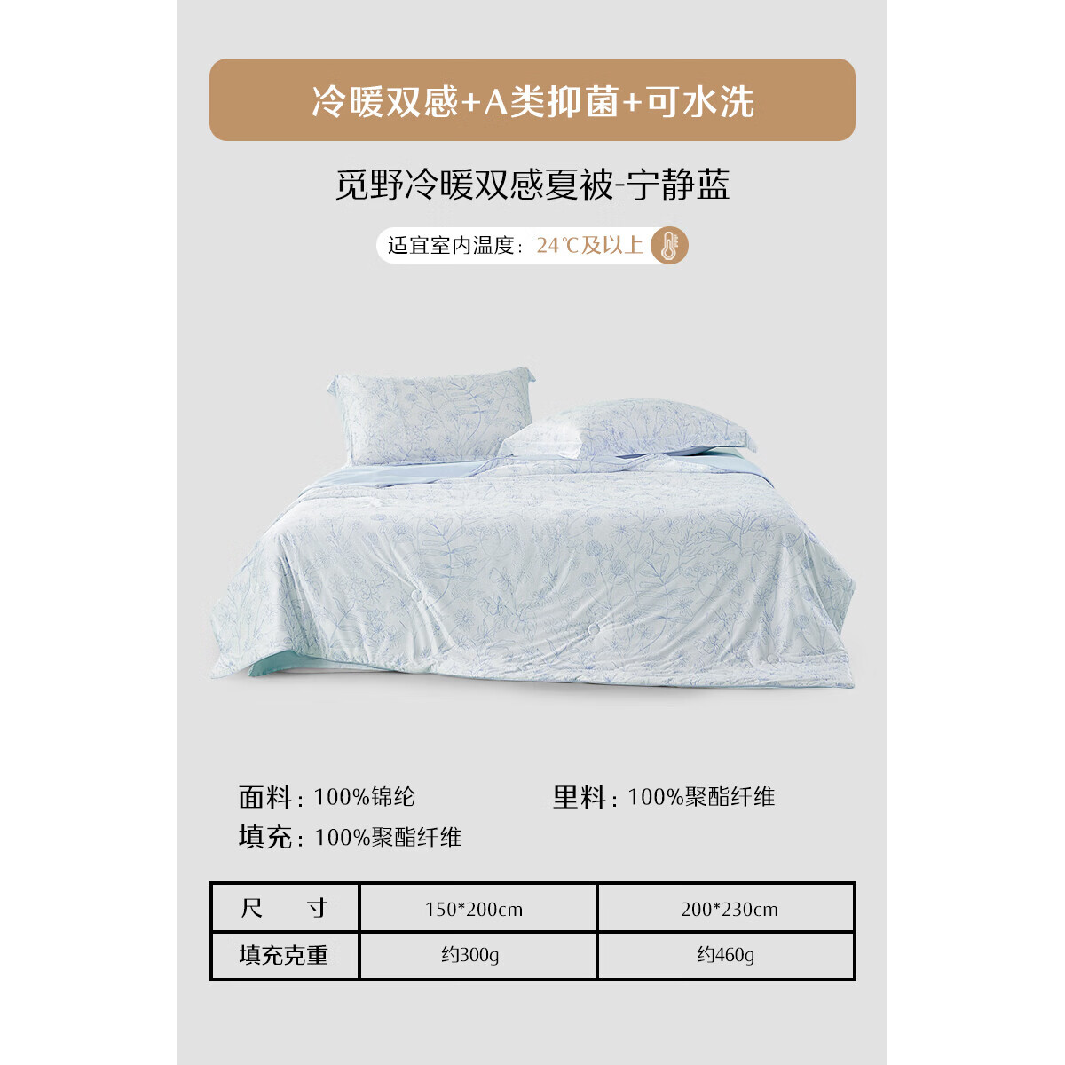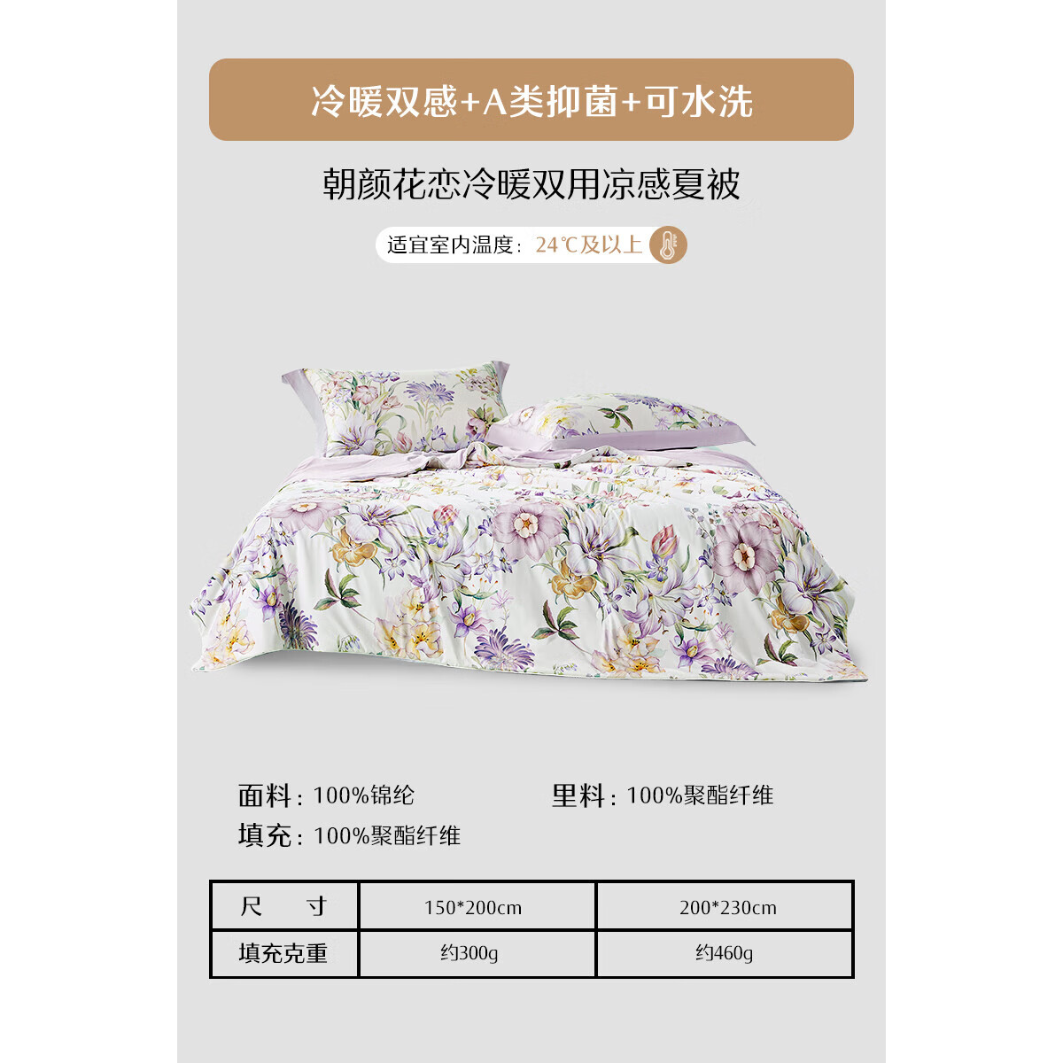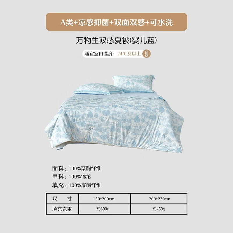 水星家纺空调被夏季夏凉被子雪糕被薄被子可机洗夏被 朝颜花恋【凉暖双感】 200cm230cm
