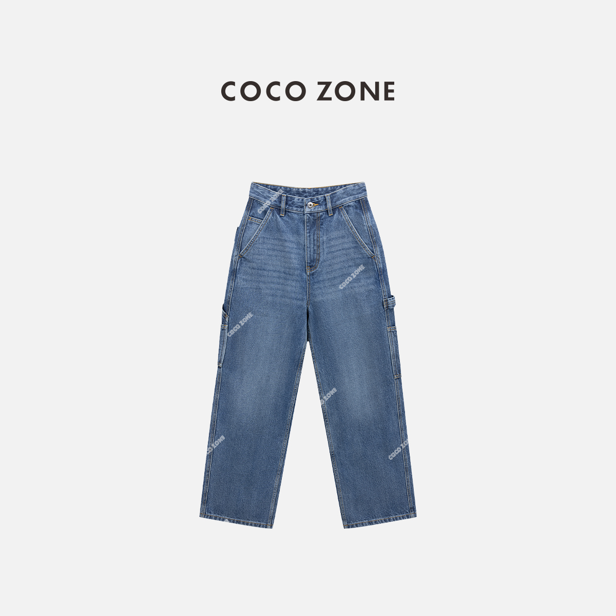 COCO ZONE 100棉复古做旧牛仔裤显瘦直筒裤CC1C1637