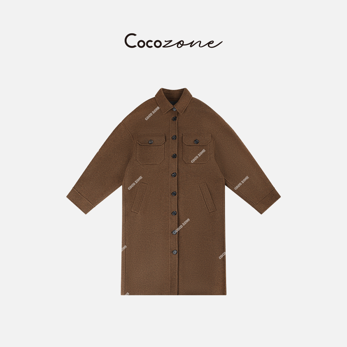 刘一一&COCO ZONE美拉德卡其色中长款落肩翻领毛呢外套 23C30316
