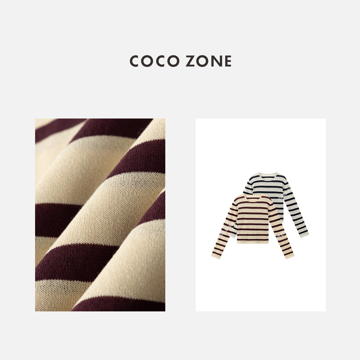 COCO ZONE“经典重现”夏季复古条纹圆领针织衫百搭套头上衣CC1B1196