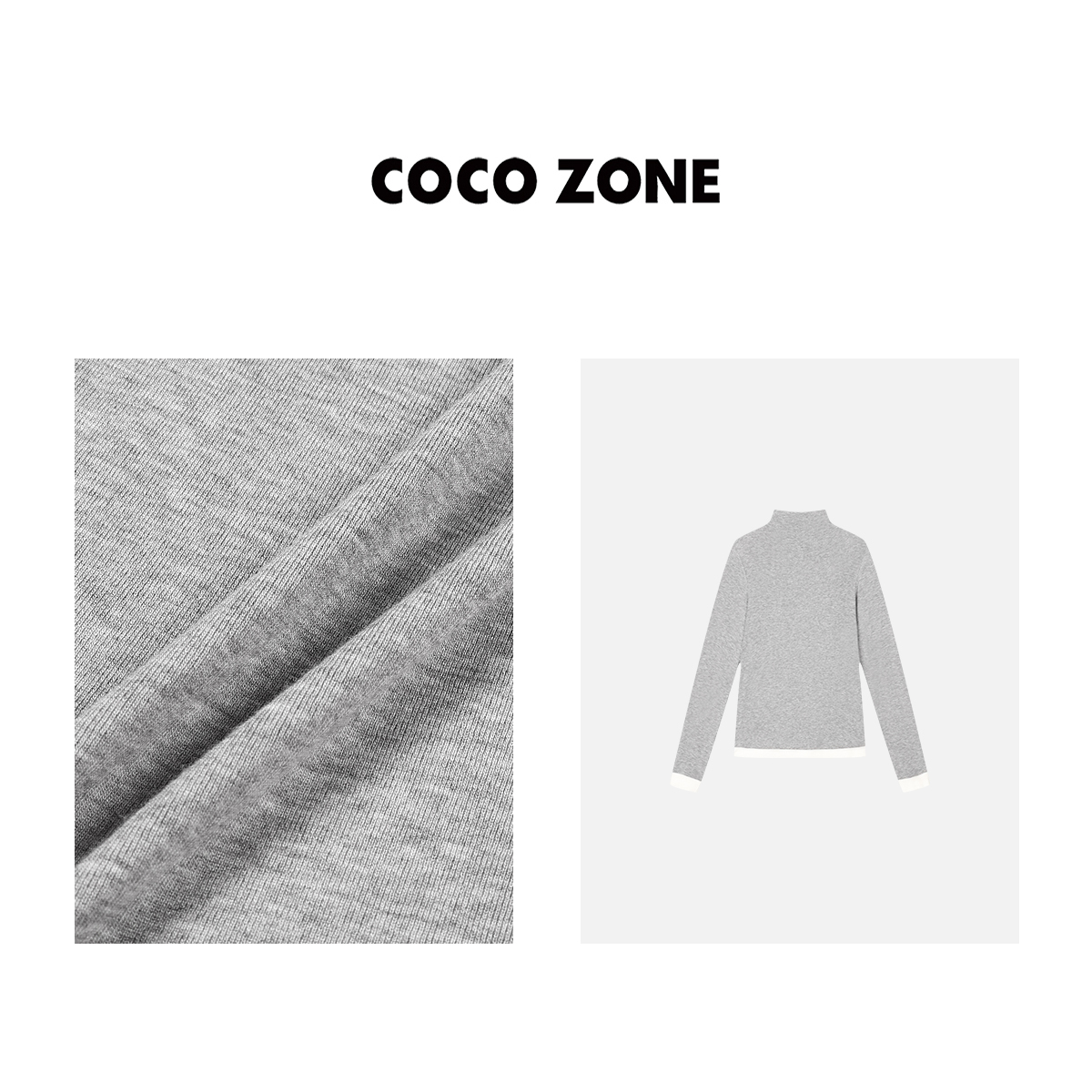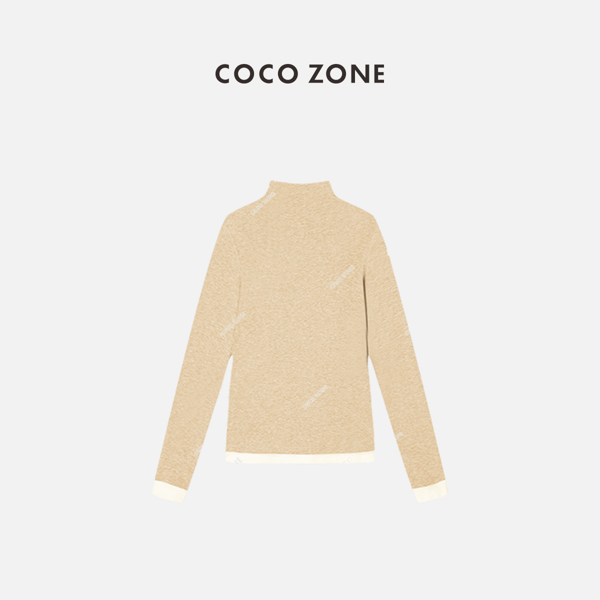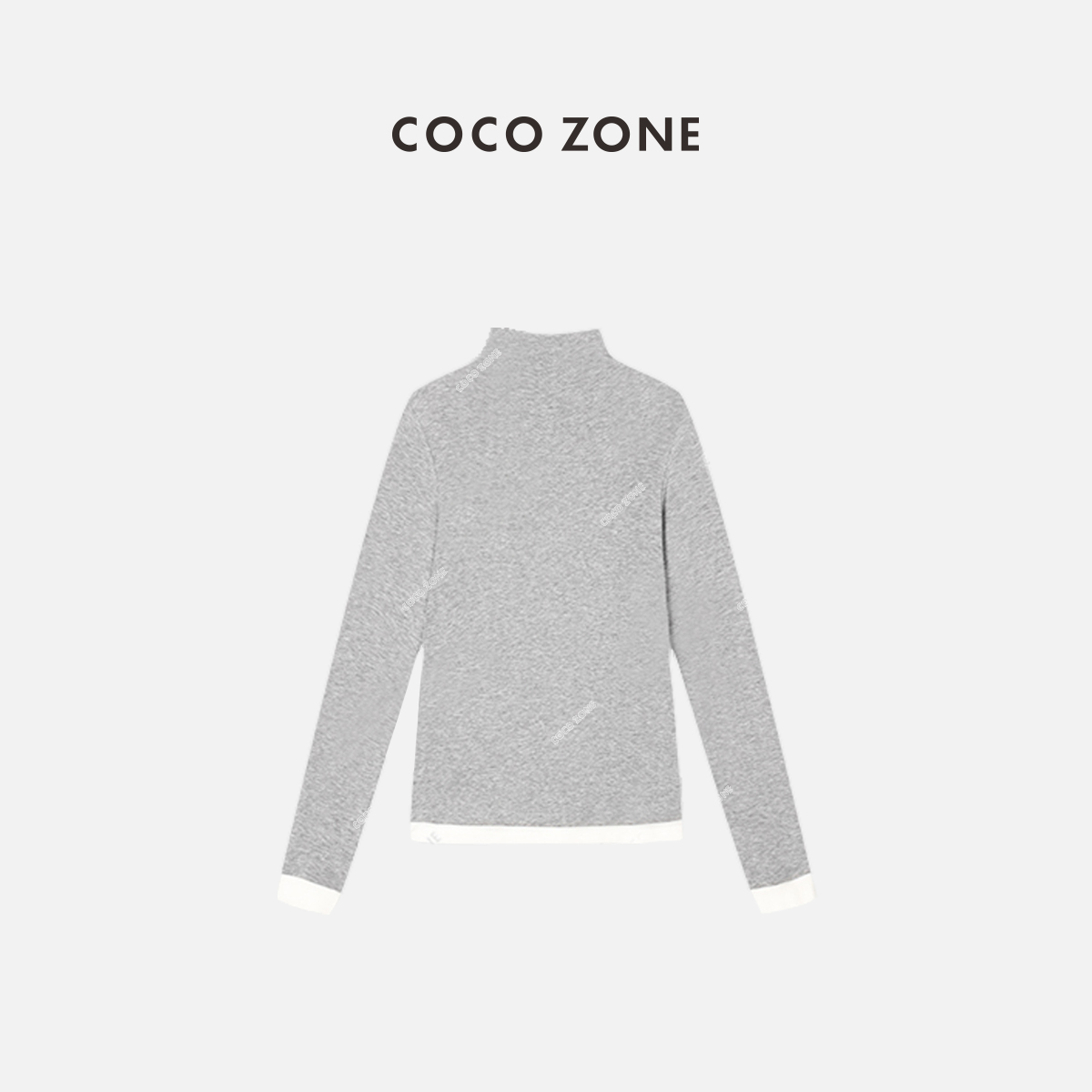 COCO ZONE 春秋款小立领长袖上衣袖口拼接圆领打底衫T恤 23C19559