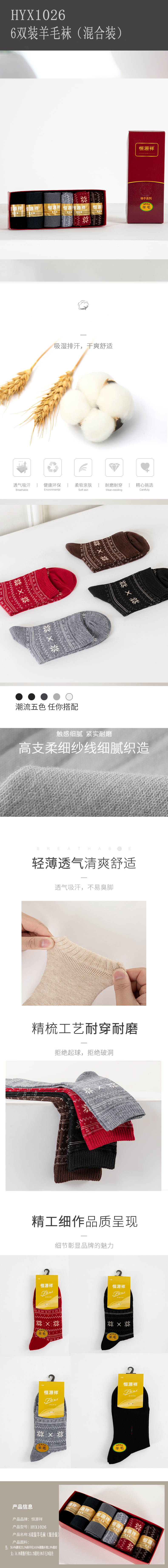 恒源祥 HYX1026 6双装羊毛袜(混合装)单位:盒