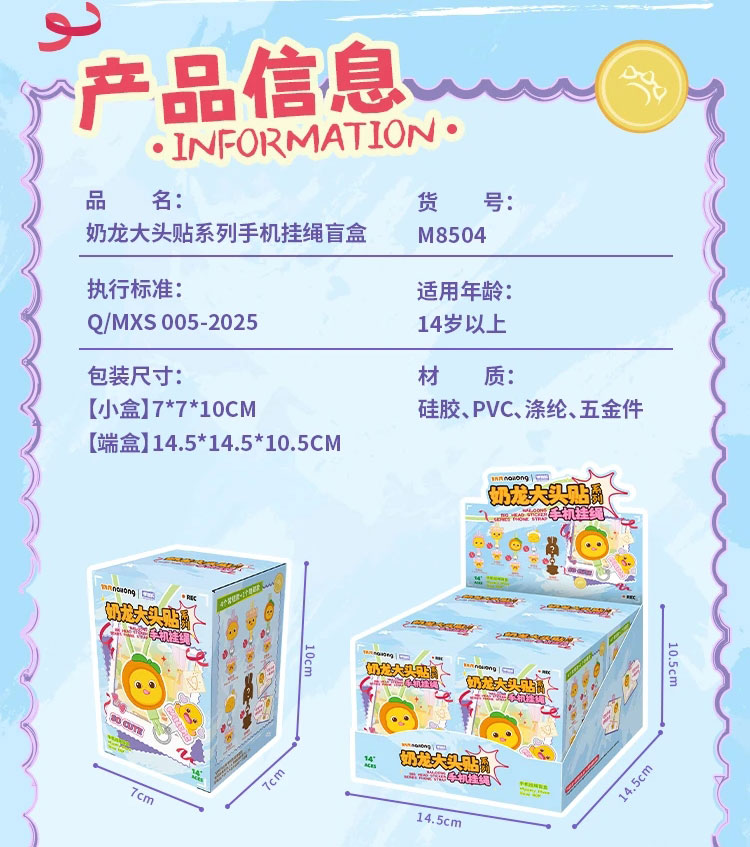 奶龙官方正品手机挂绳一绳多用奶龙大头贴系列盲盒(单盒1条)